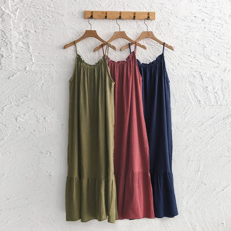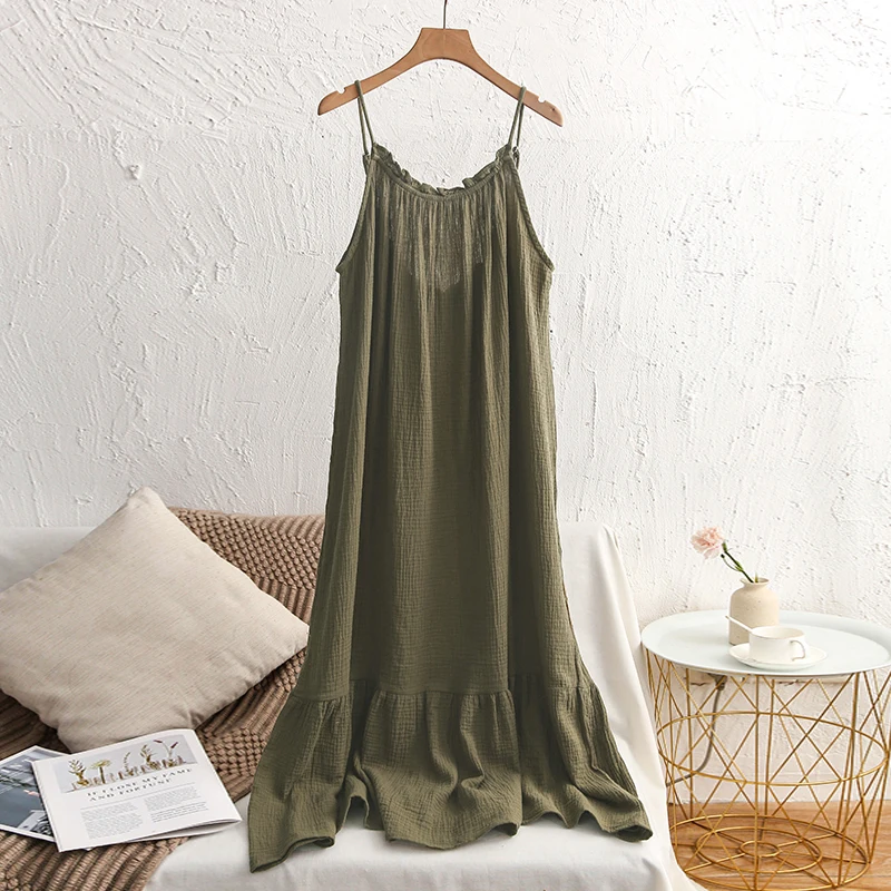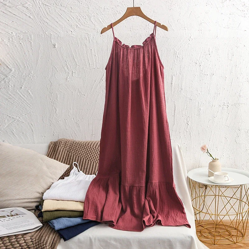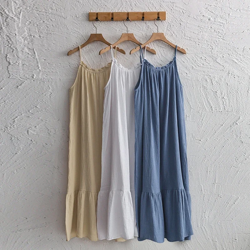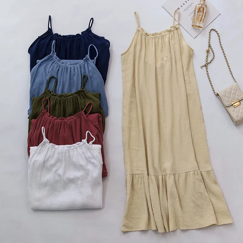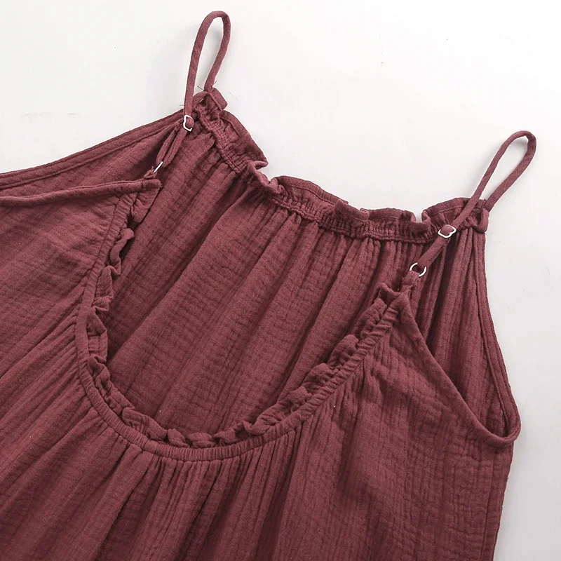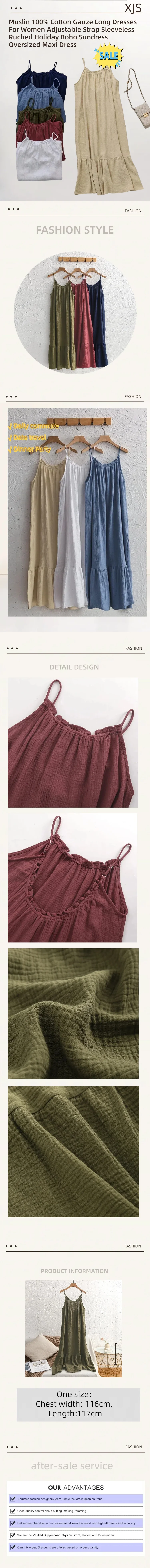 Muslin 100% Cotton Gauze Long Dresses For Women Adjustable Strap Sleeveless...