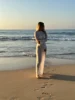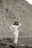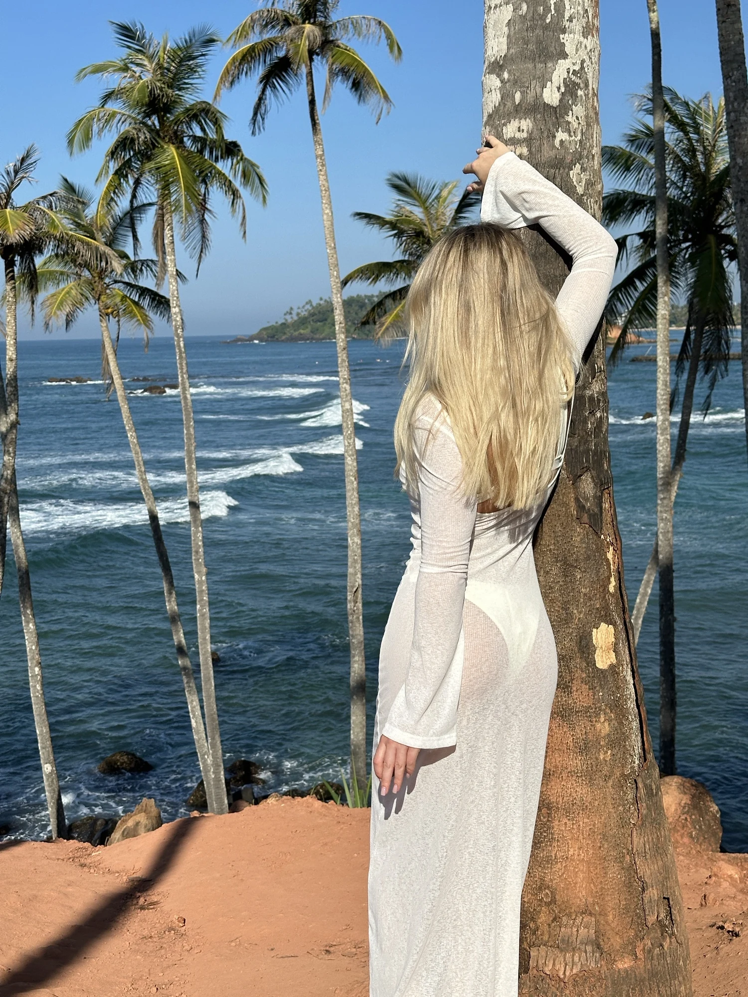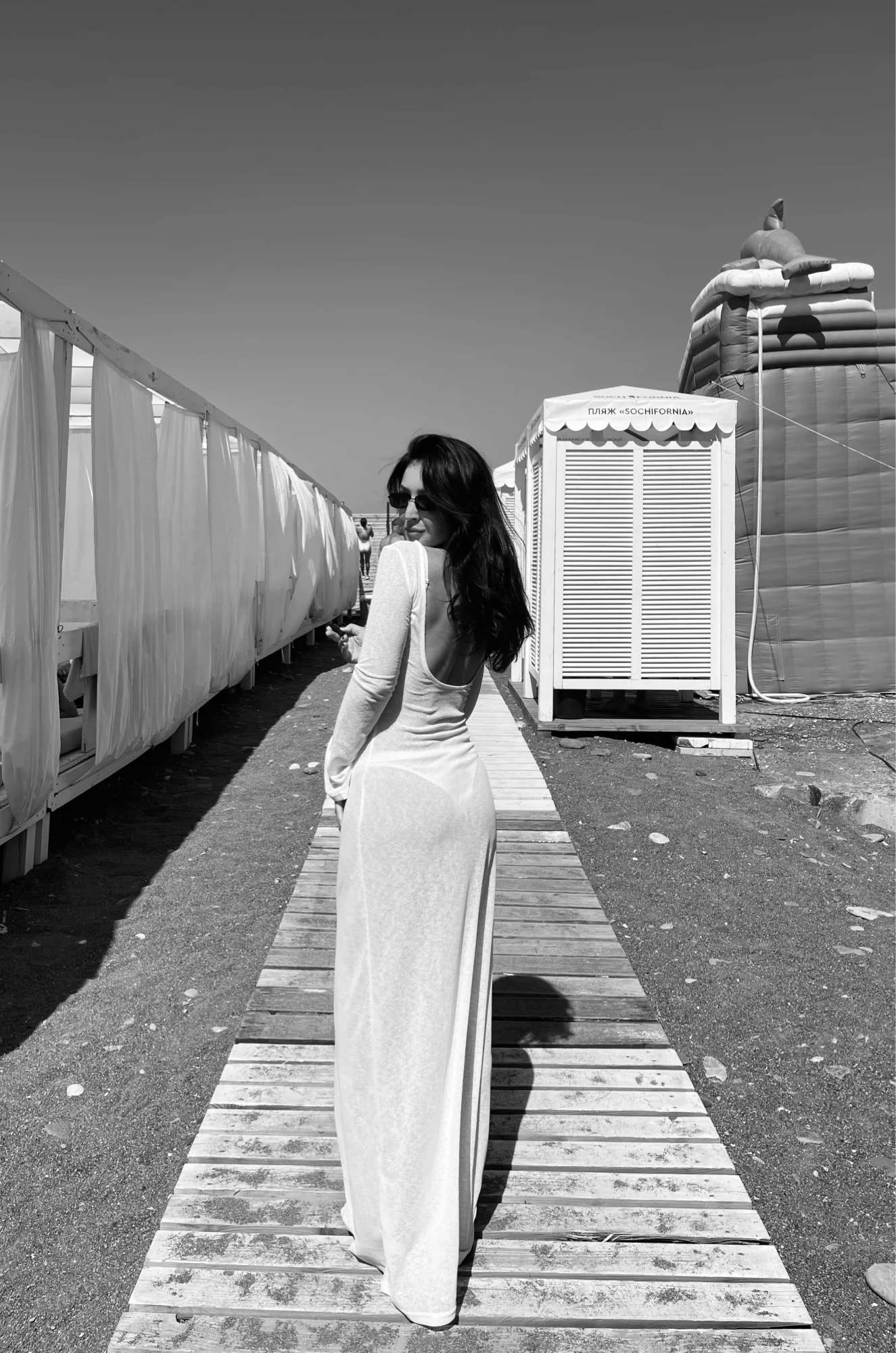 Модное женское платье с запахом и длинным рукавом, круглым вырезом, прозрачное солнцезащитное кремовое однотонное пляжное длинное платье с открытой спиной, летнее прикрытие