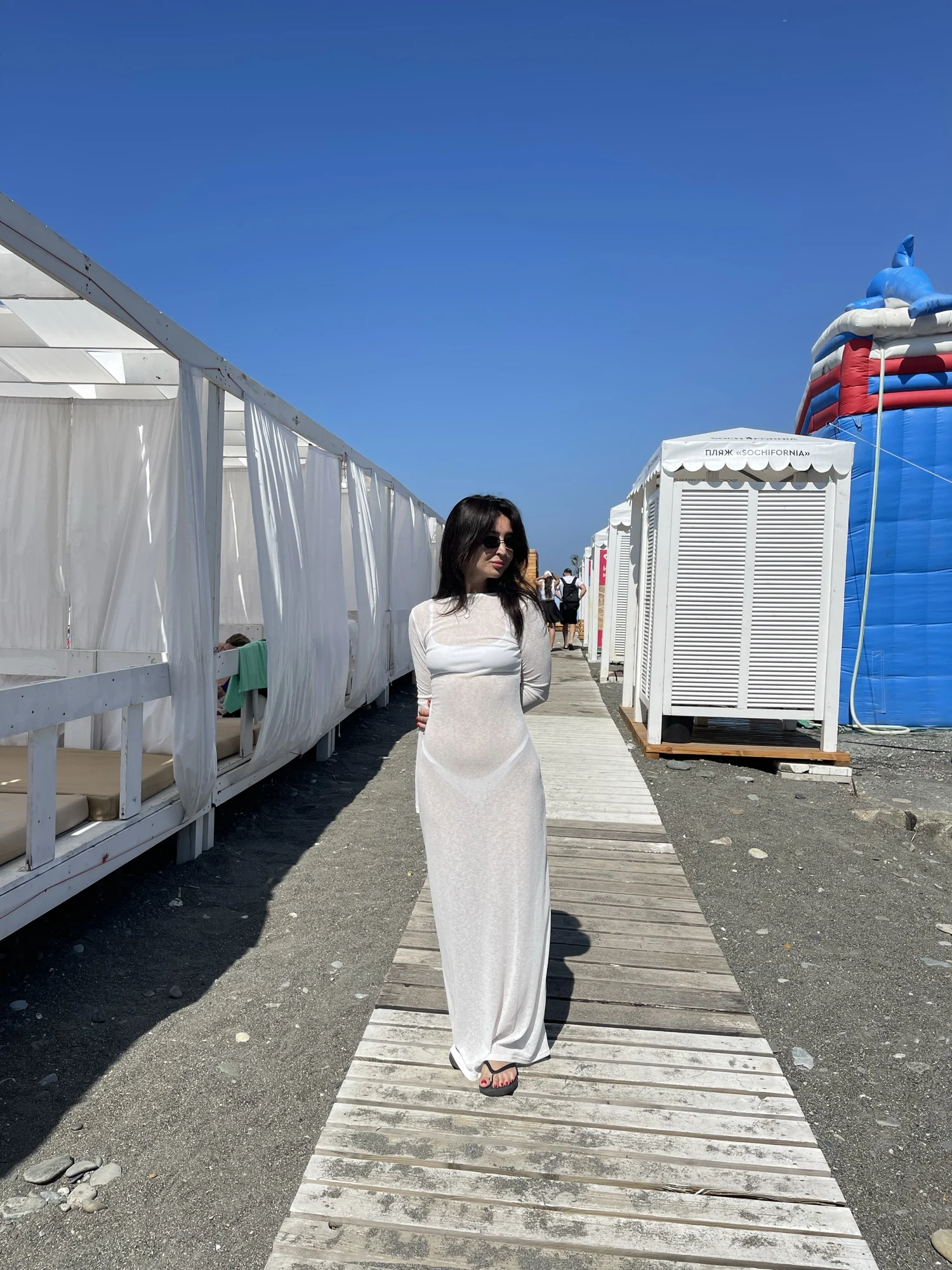 отличное платье, надевала в МО в +27 градусов и было очень жарко, но снизу у меня еще была комбинация, чтобы не просвечивало мои параметры-грудь 86,талия 60 бедра 90, рост примерно 164 немного неудобно в плечах, часто поправляла просвечивает все, надевать либо на купальник либо на белье, ну или кто как хочет на мне размер sKseniya K. 18 июня 2024
