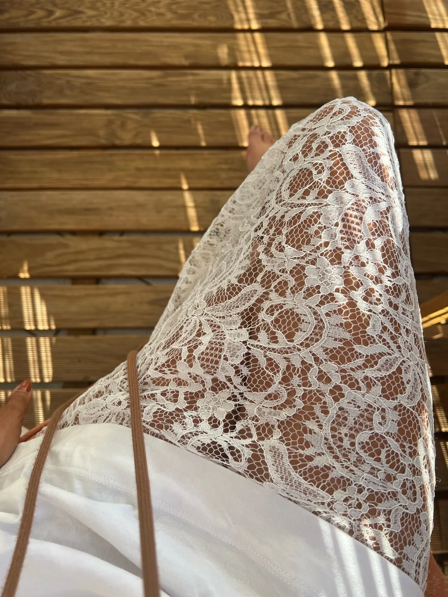 Прекрасная юбка, слегка тянется, белоснежная, красивое кружево! на резинке, сбоку разрез. мой рост 160см, объёмы 98 - 74 - 98см. бедра больше - обтянет.. надела подклад, с длинной футболкой можно и без подклада!