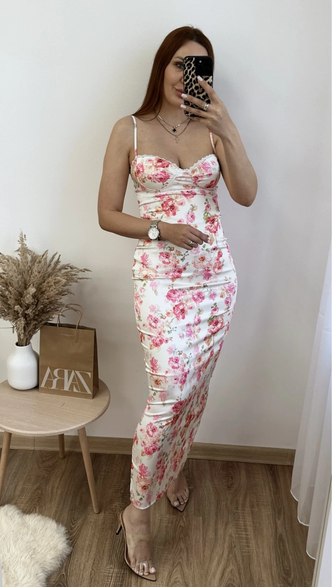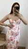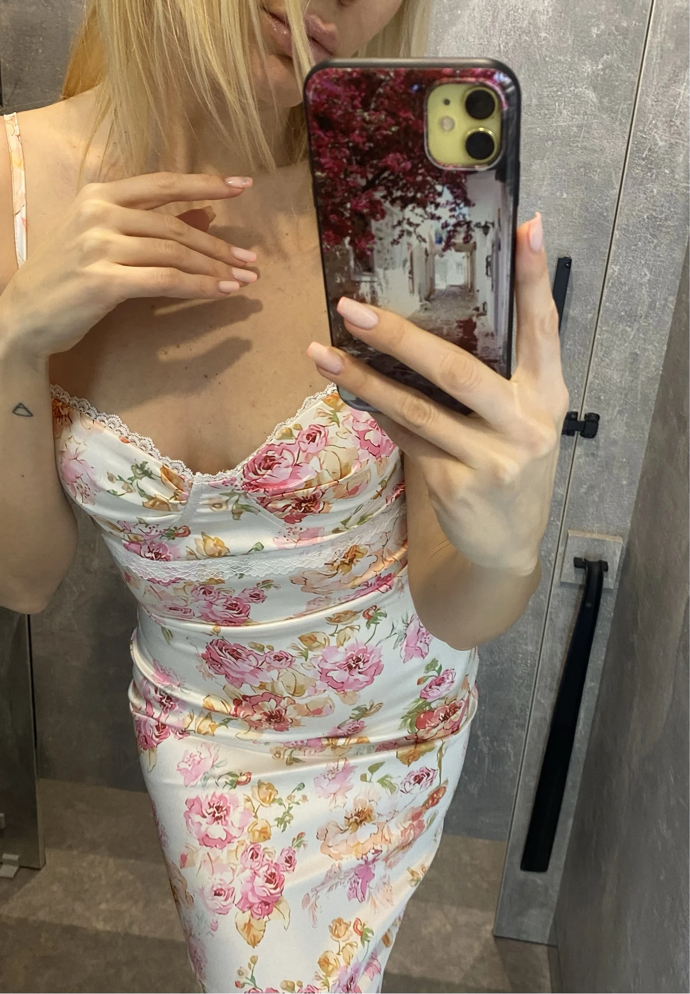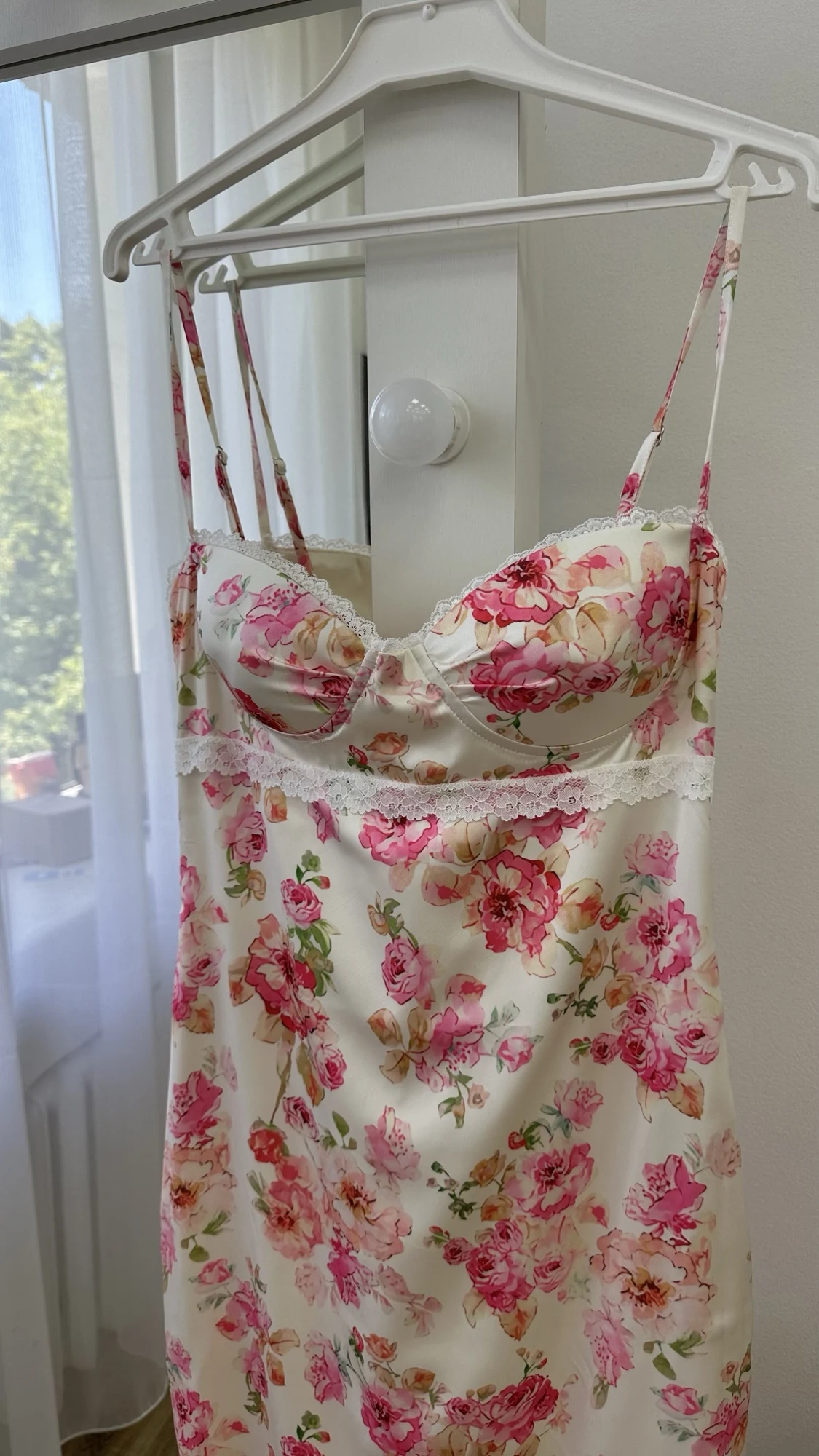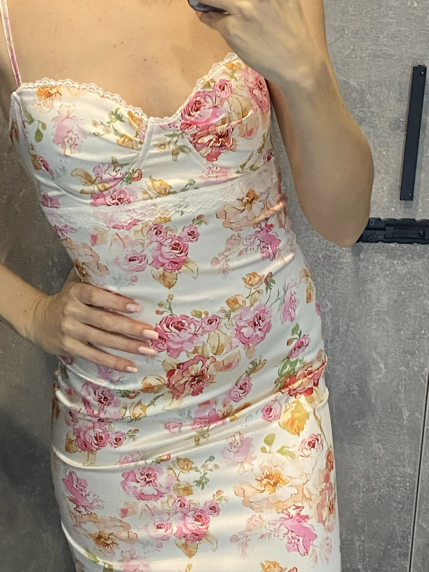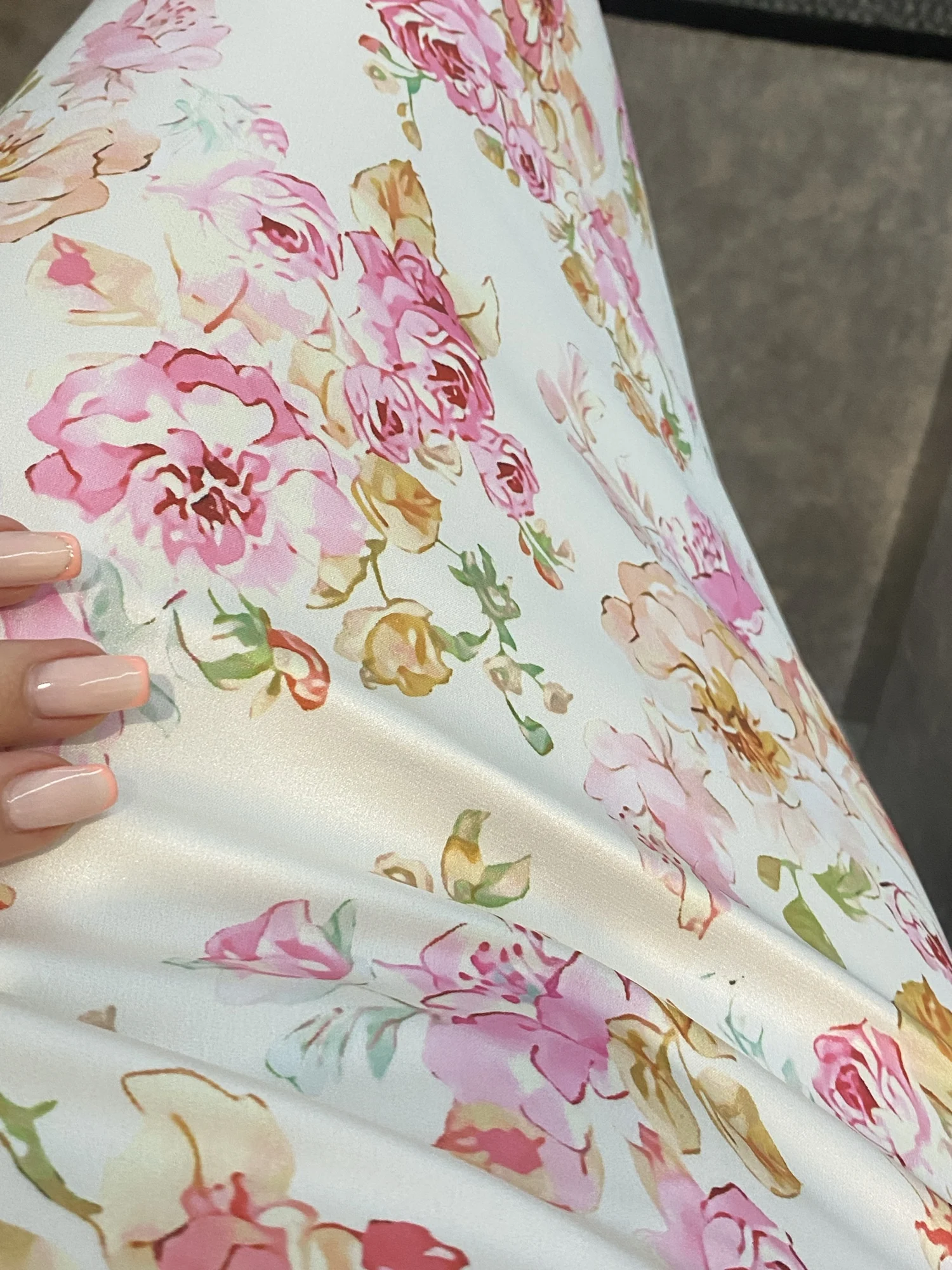 High quality floral printing satin dress, it comes with stretchy lining, chest pads! Not Transparent !!