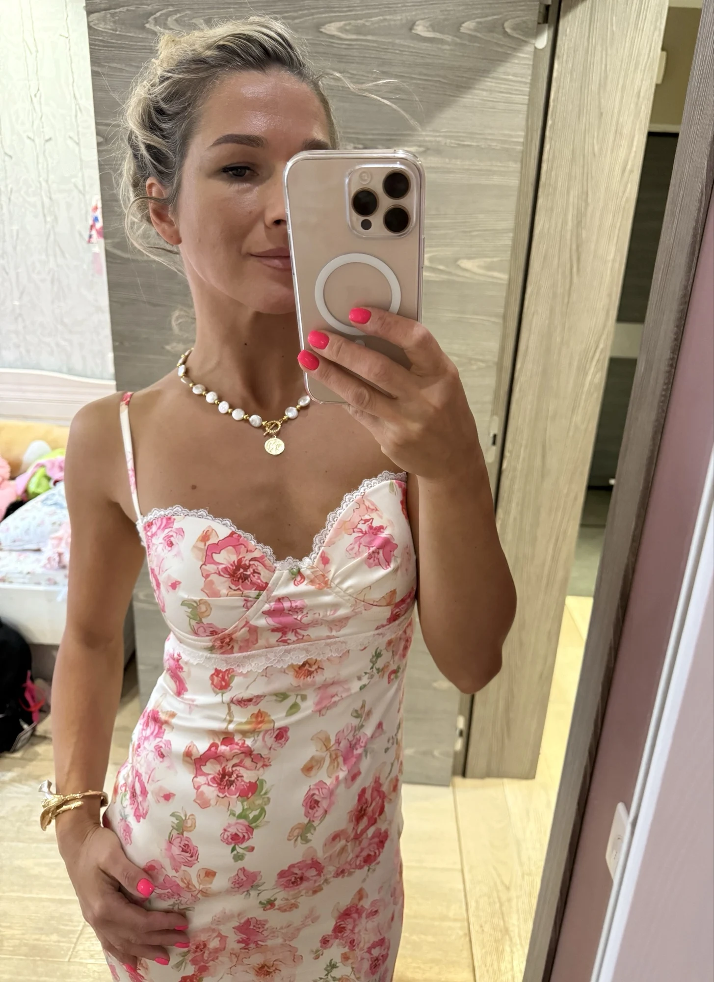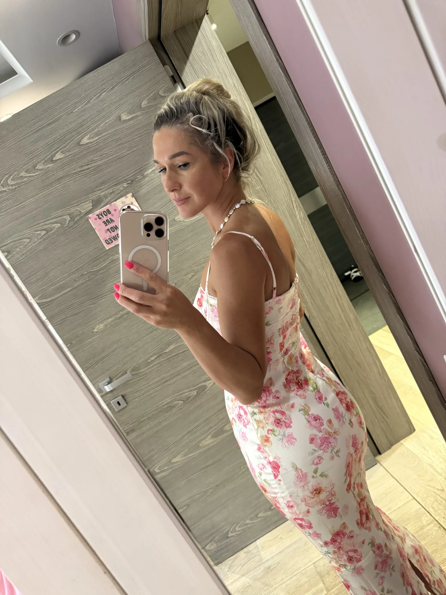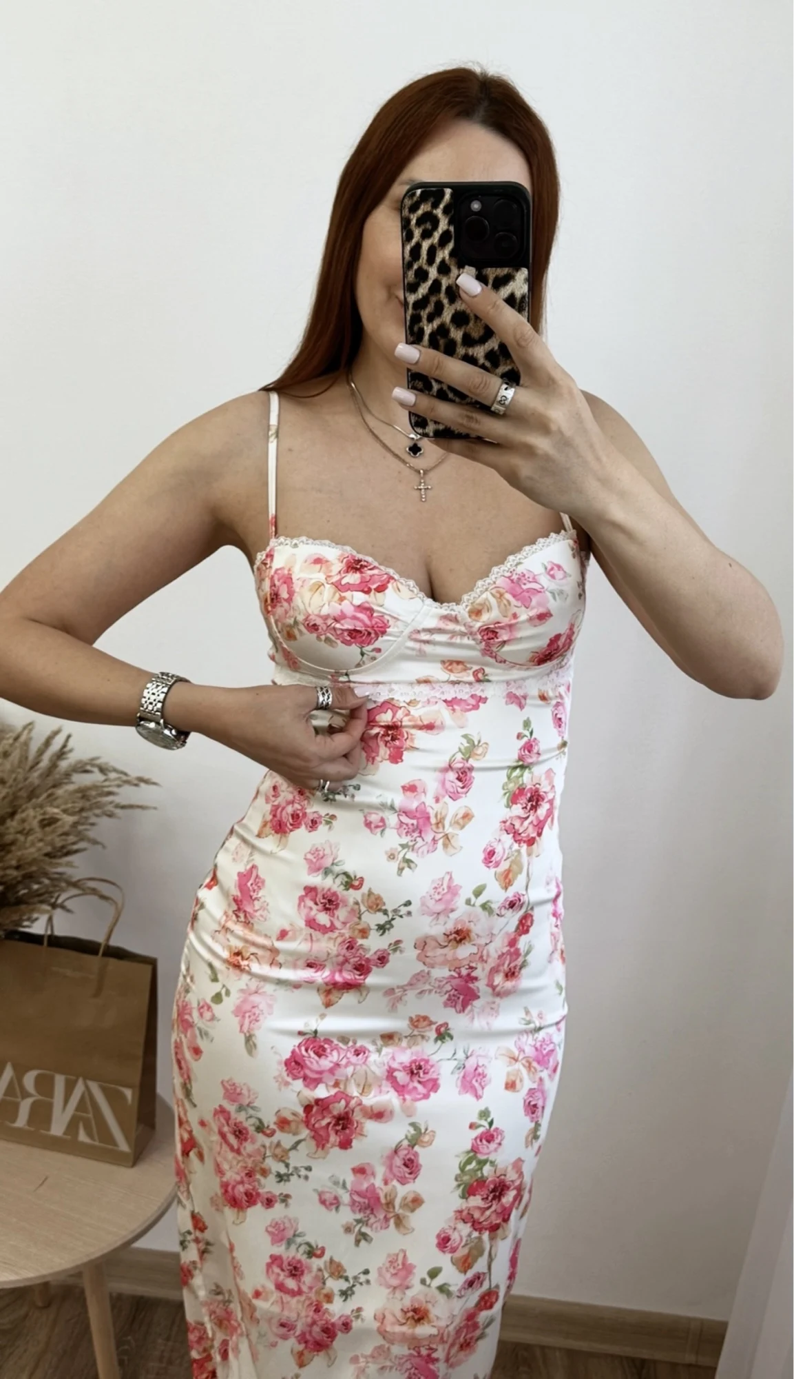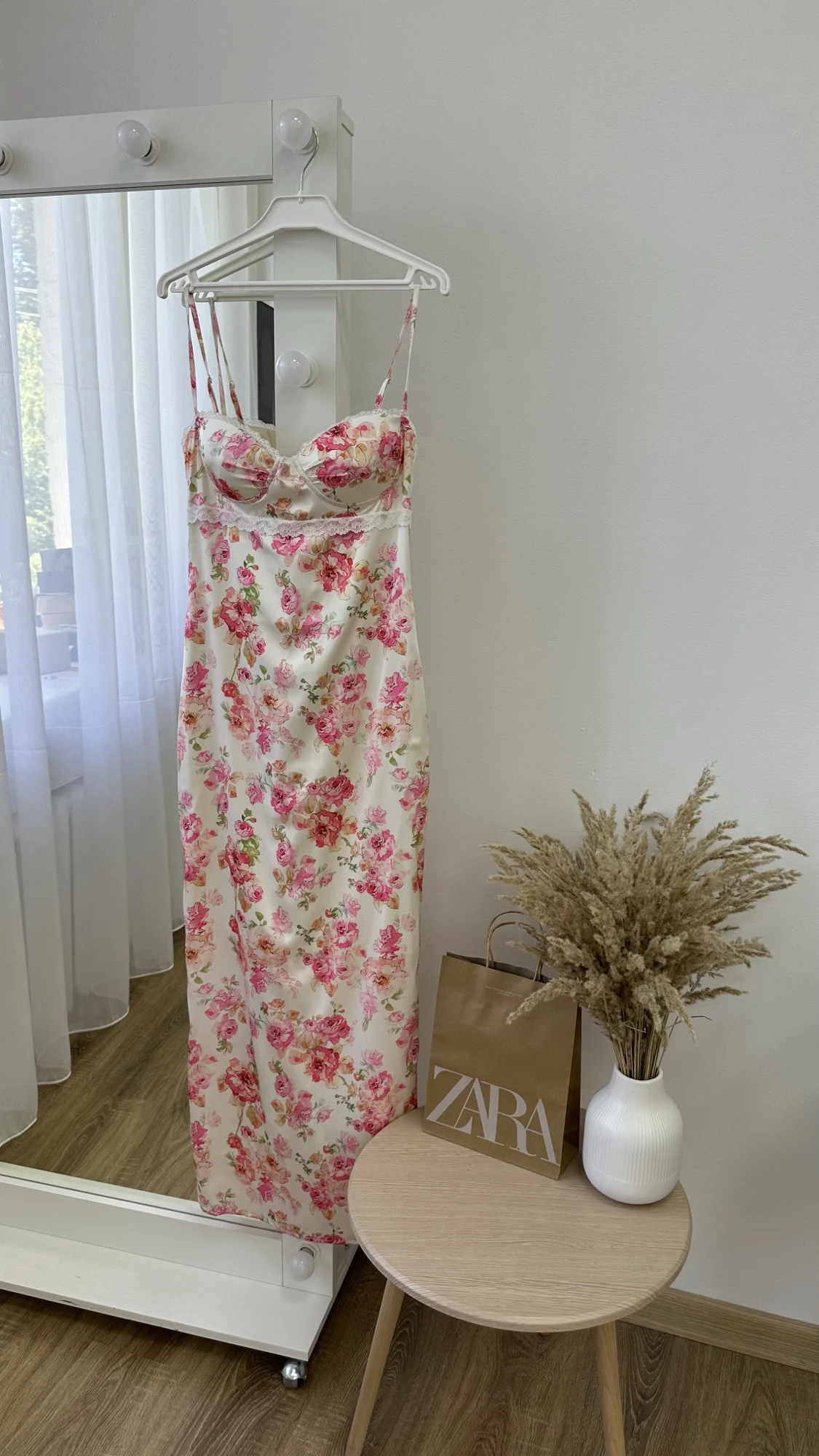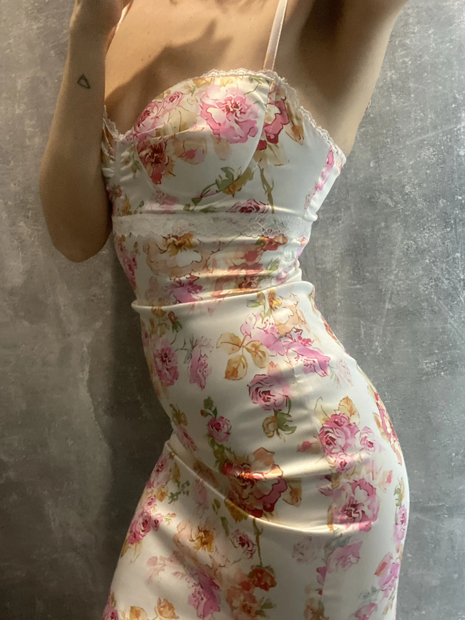 High quality floral printing satin dress, it comes with stretchy lining, chest pads! Not Transparent !!