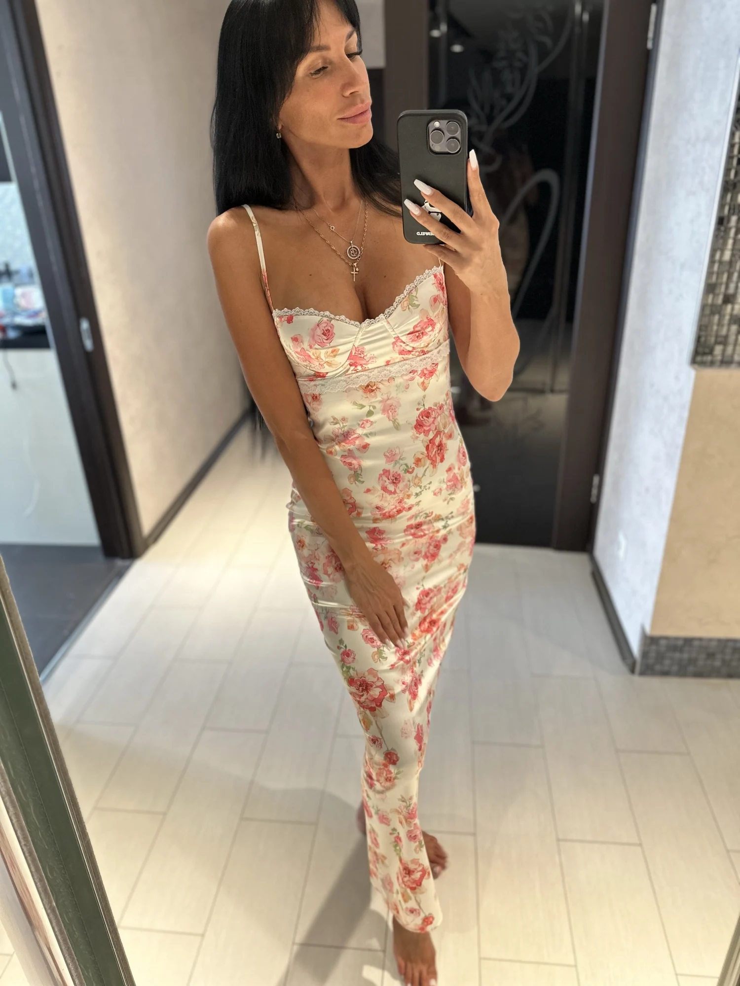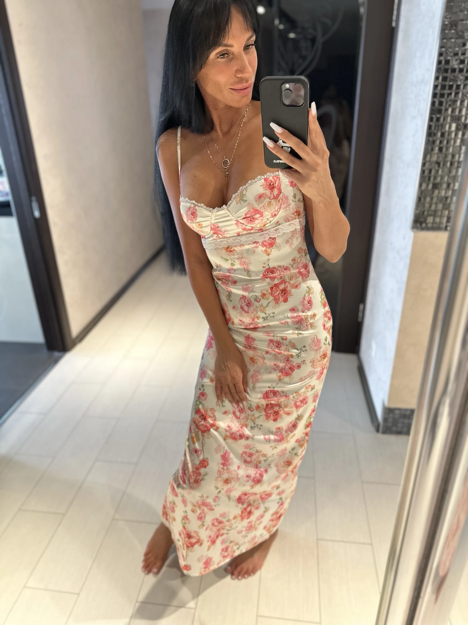 Suninheart Summer Spaghetti Strap Floral Print Party Dresses Elegant Maxi...