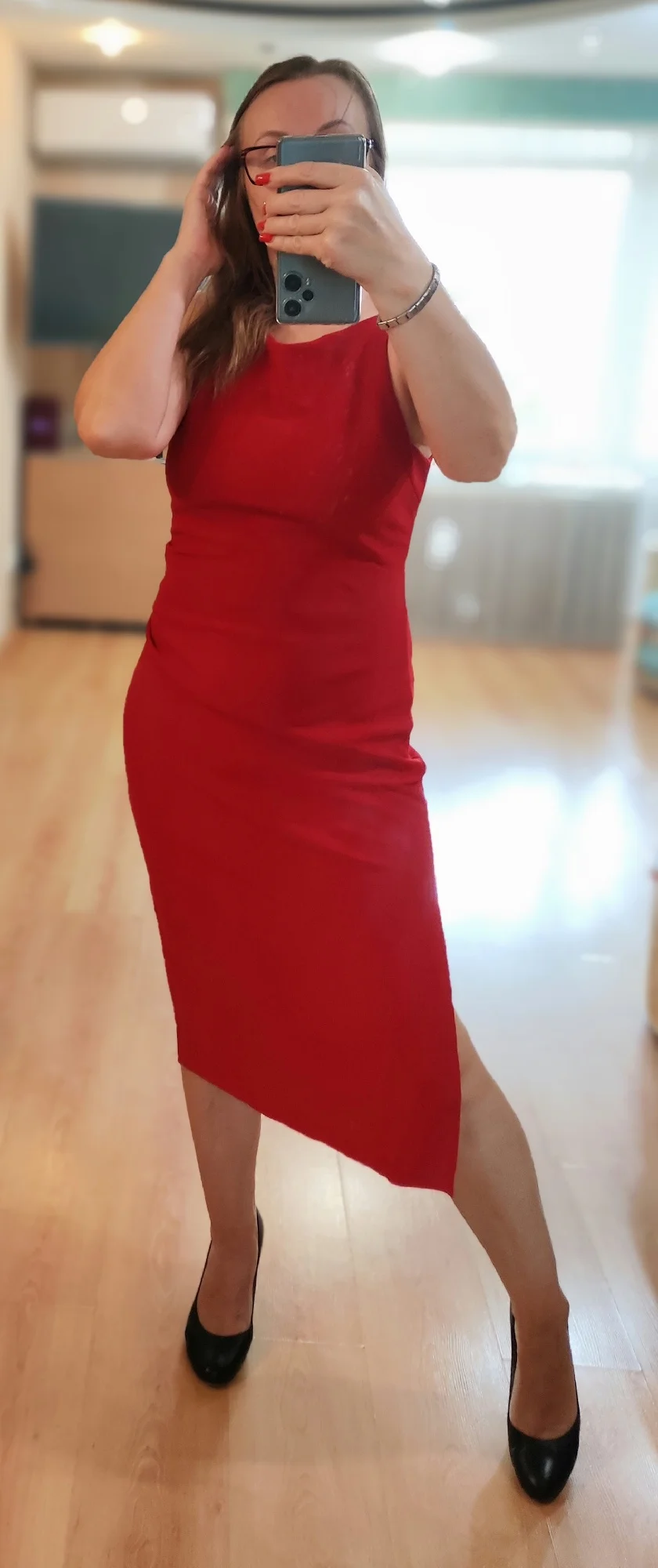 Очень хорошее платье, мое в красном цвете, мой рост 165, ОГ 98, ОТ 80-82, ОБ 100. вес 65 кг. Размер L подошёл идеально, оно хорошо садится по фигуре, тянется, плотненькое, можно и зимой на торжество одеть и прохладным летнем вечером. Небольшая сборка сбоку очень кстати, платье скрывает дефекты фигуры. Подол просто обрезан, необработан, это не критично. Я рада, что заказала, можно ещё в каком нибудь цвете. Пришло за 2 недели в Казахстан. Очень быстрая доставка, спасибо продавцу
