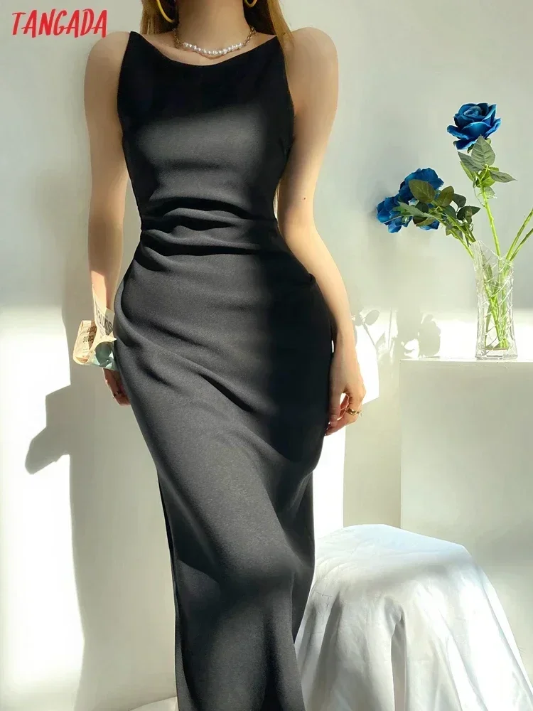 Tangada 2022 Fashion Women Slash Neck Elegant Dress Sleeveless Office Ladies...