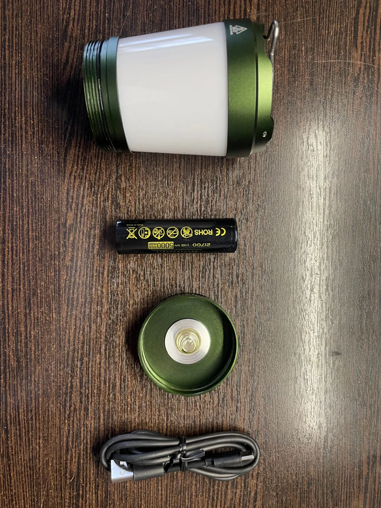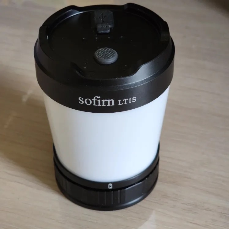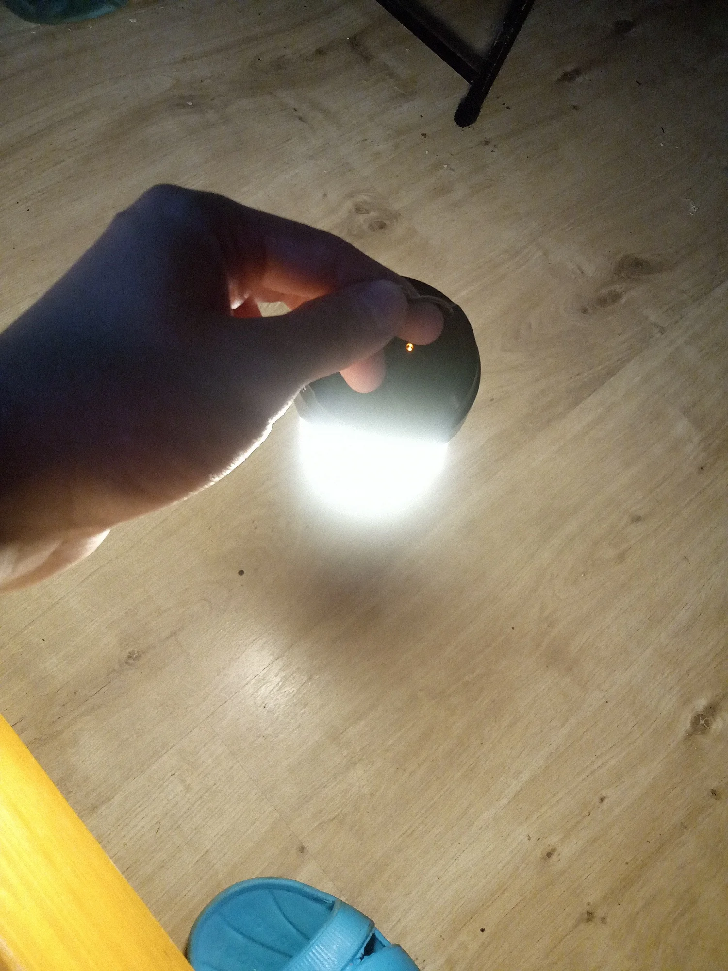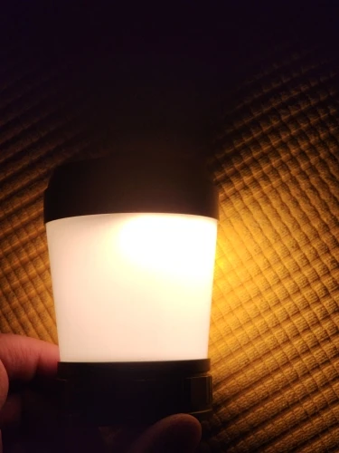 кемпинговый фонарик пришёл вовремя, верх и низ железные, имеет три свечения, жёлтым, красным и белым, и множеством режимов, от мунлайта до сильно яркого, как по мне, сильно яркий не очень то и яркий, а вот вблизи слепит будь здоров, потом после него отходить минут 5 потому что перед глазами всё тёмное после него. есть аккумулятор 1шт фирменный софирновский и зарядка прямо с фонарика это плюс. на вес 332 гамма, с батарейкой. Единственное что на коробке не написано какие диоды стоят и сколько кельвинов свечение, по ощущениям свет тёплый 4000-4500 К и не очень яркий. но для туризма и палатки самое то , для комнаты очень тускло.