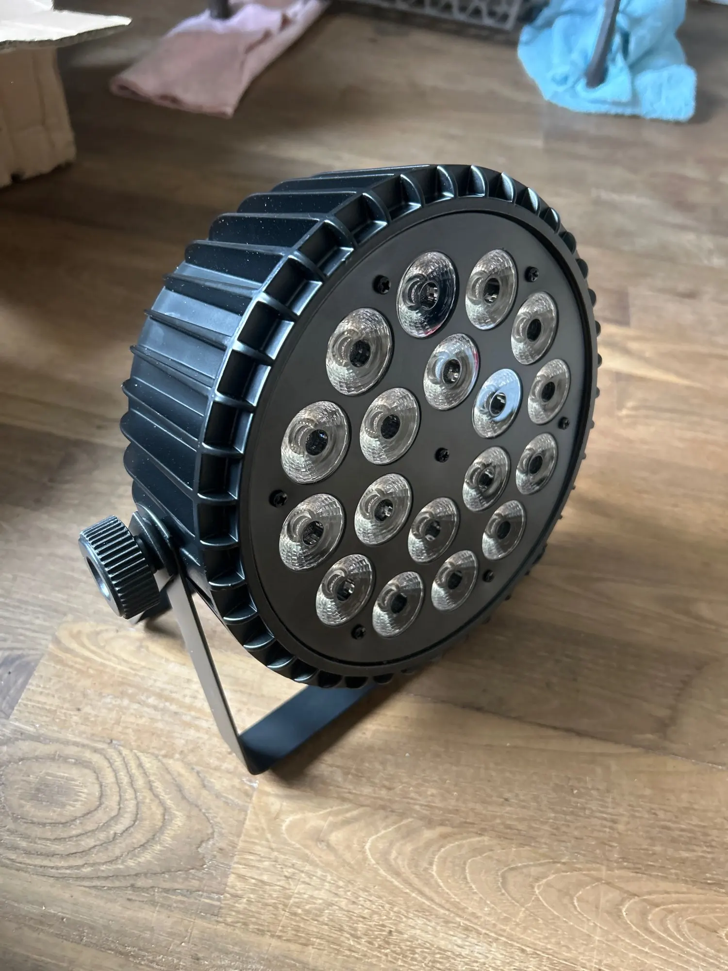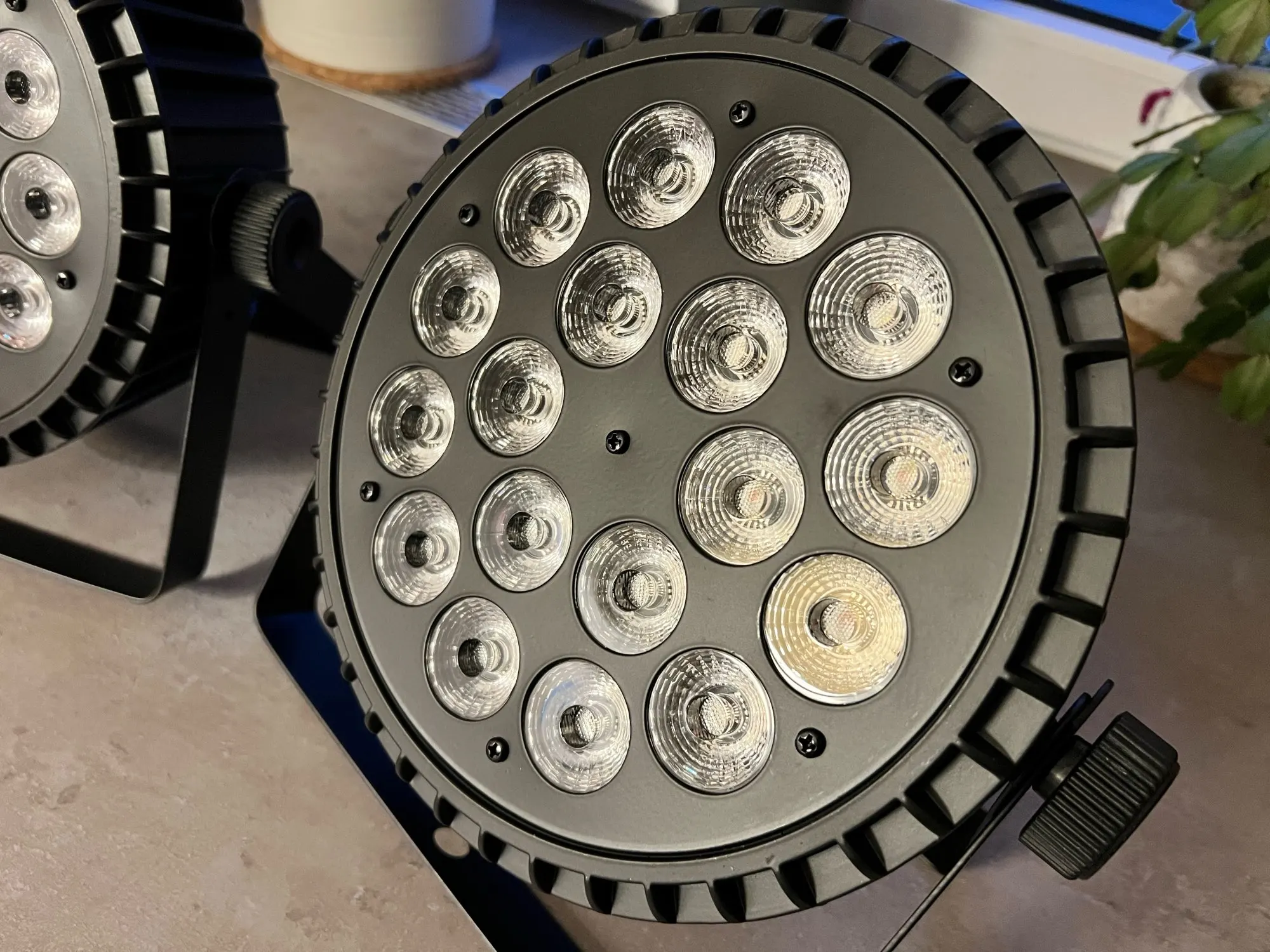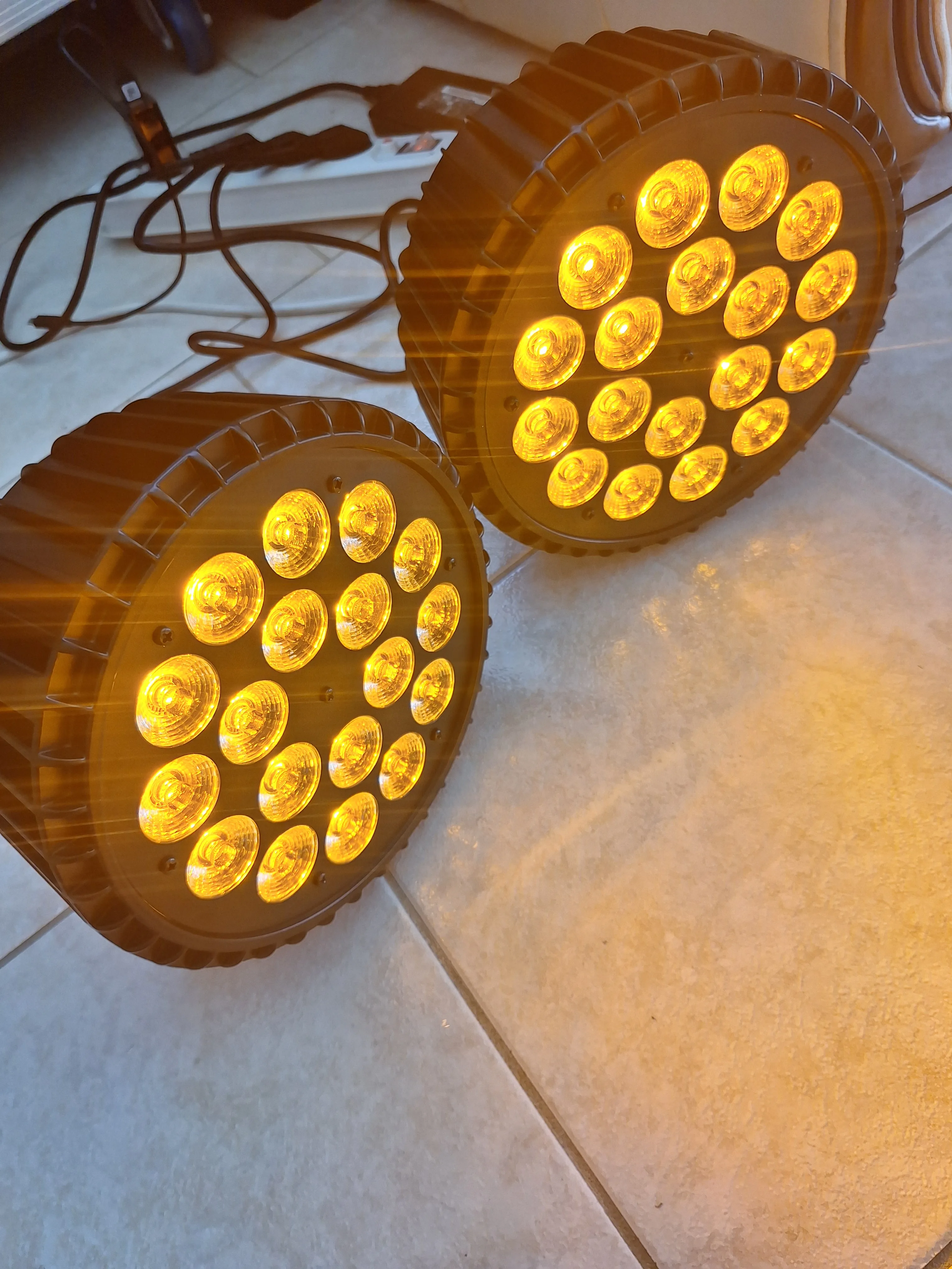 Действительно прожекторы 18x4 Вт. Каждый светодиод RGBW, 1 Вт красный 1 Вт зеленый 1 Вт синий 1 Вт белый. Всего около 70 Вт. И они не дают свет, который они продают вообще. Я чувствую себя обманутым брендом.Alberto I. 20 октября 2023