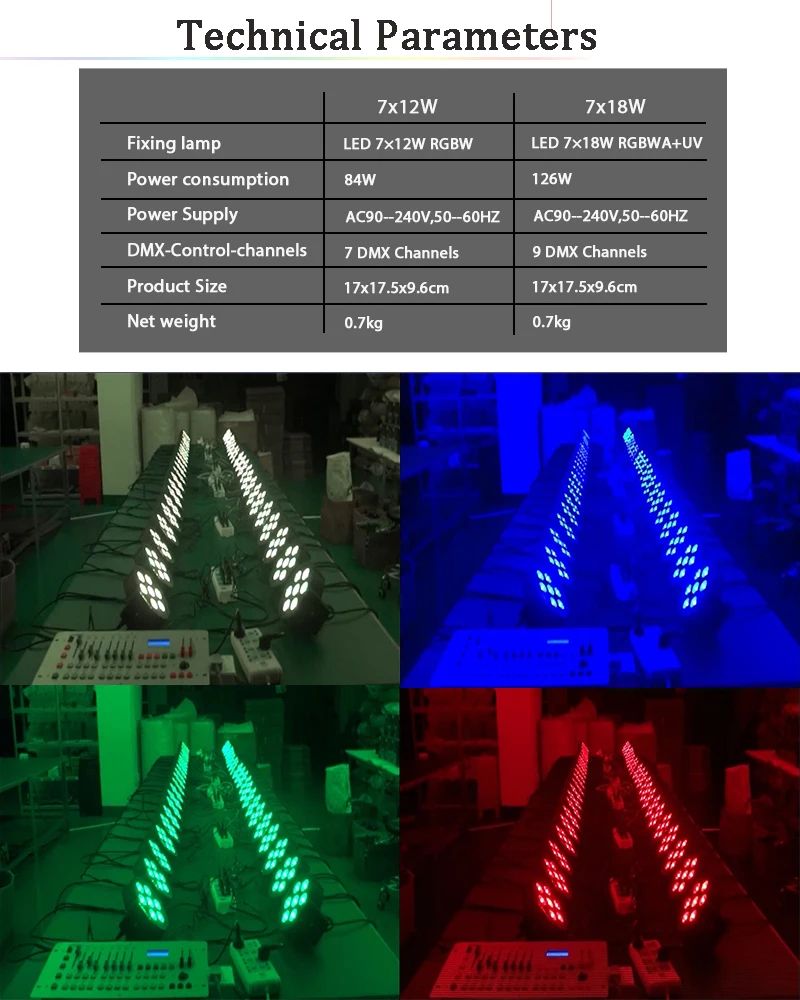 *Крепежная лампа: светодиодная 7×18 Вт RGBWA UV