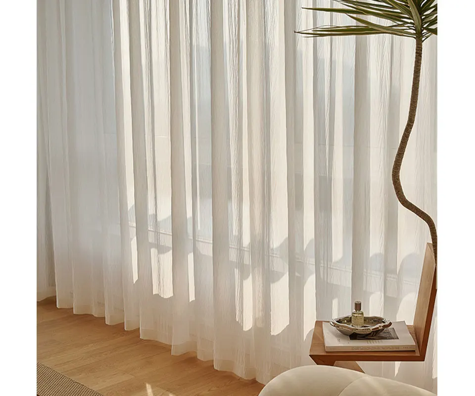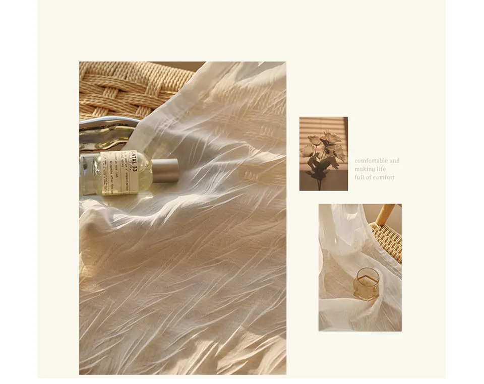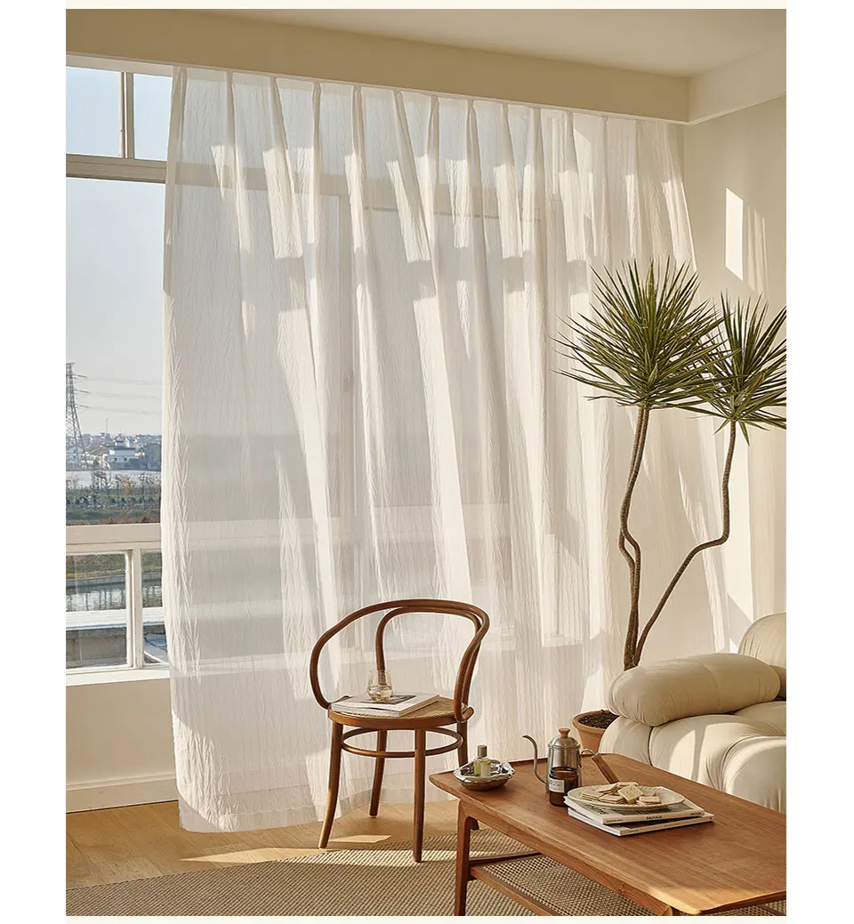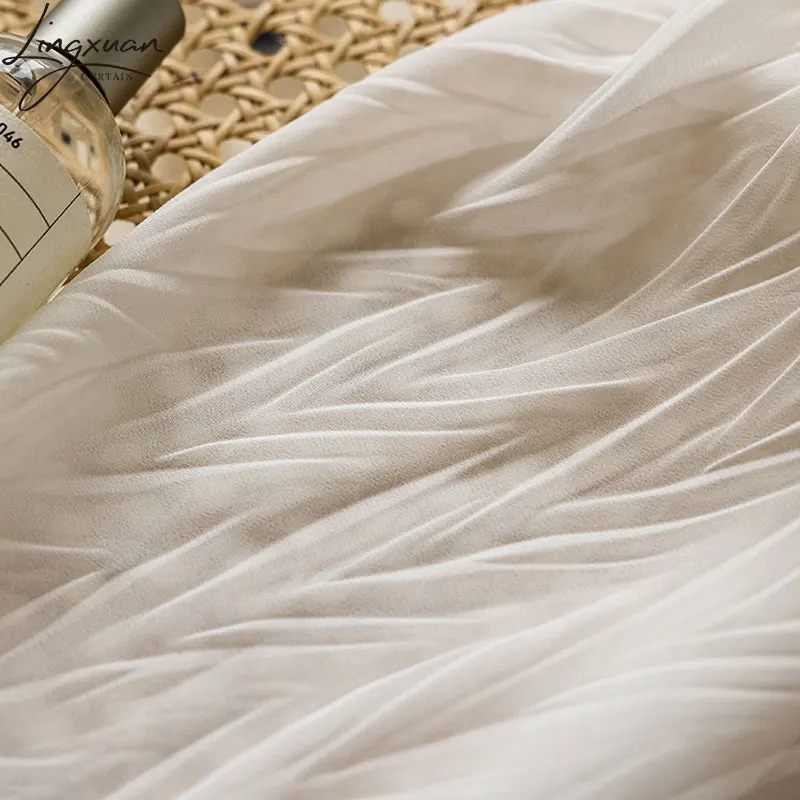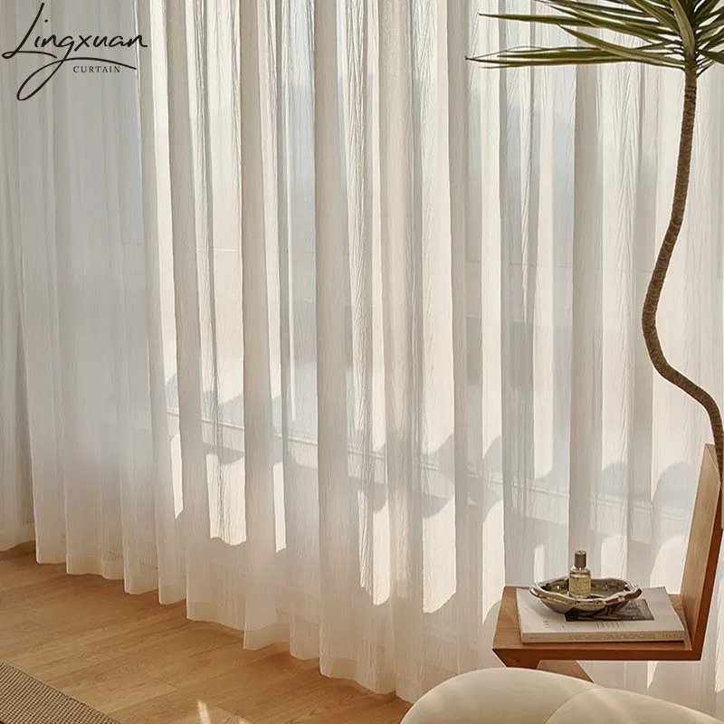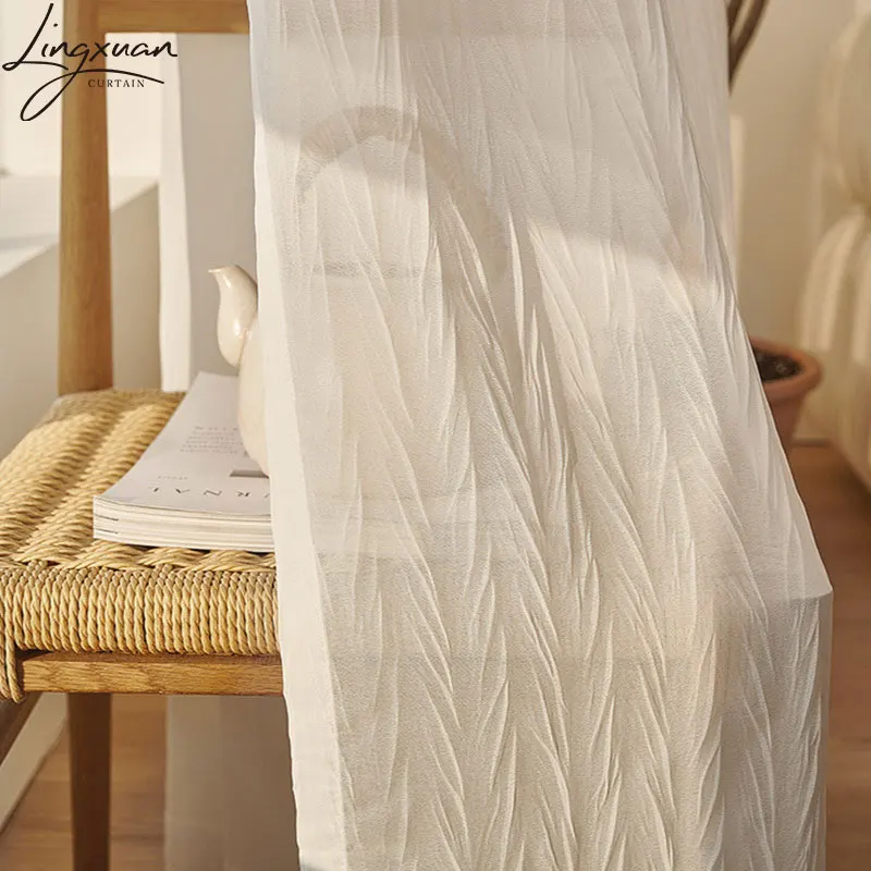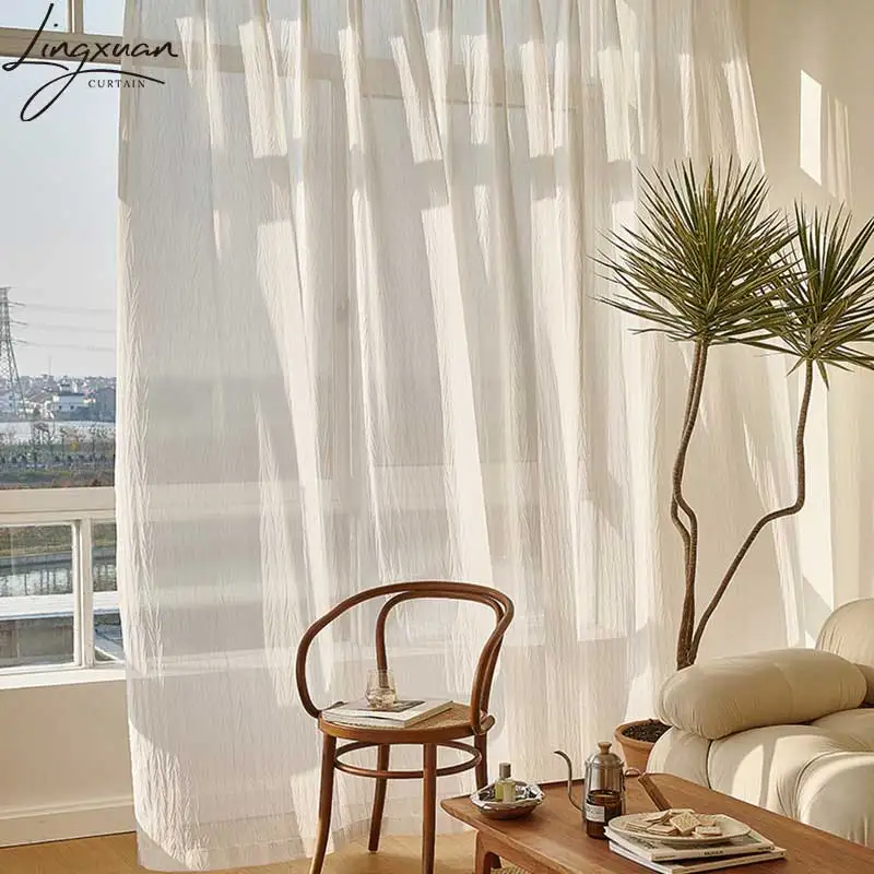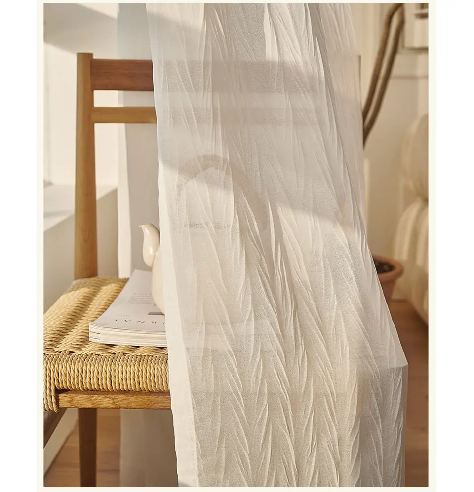 Korean White Tulle Curtains For Living Room Crumpled Sheer Curtain For Bedroom...