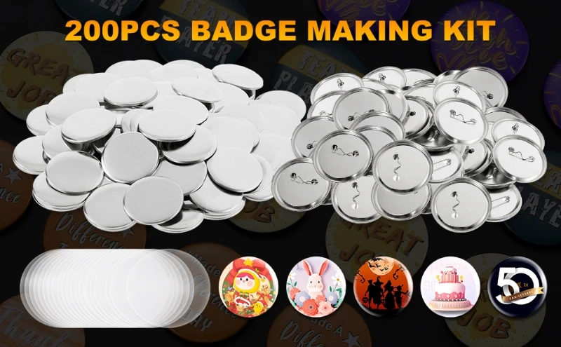 200Sets Metal Badge Pin Button Maker Parts 25mm 32mm 37mm DIY Blank Badge...