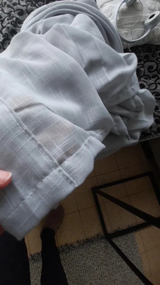 Отличная ткань.Очень окуратно подшито.По высоте как и заказывала,ни чего перешивать не придётся.Сейчас погляжу и повешу.