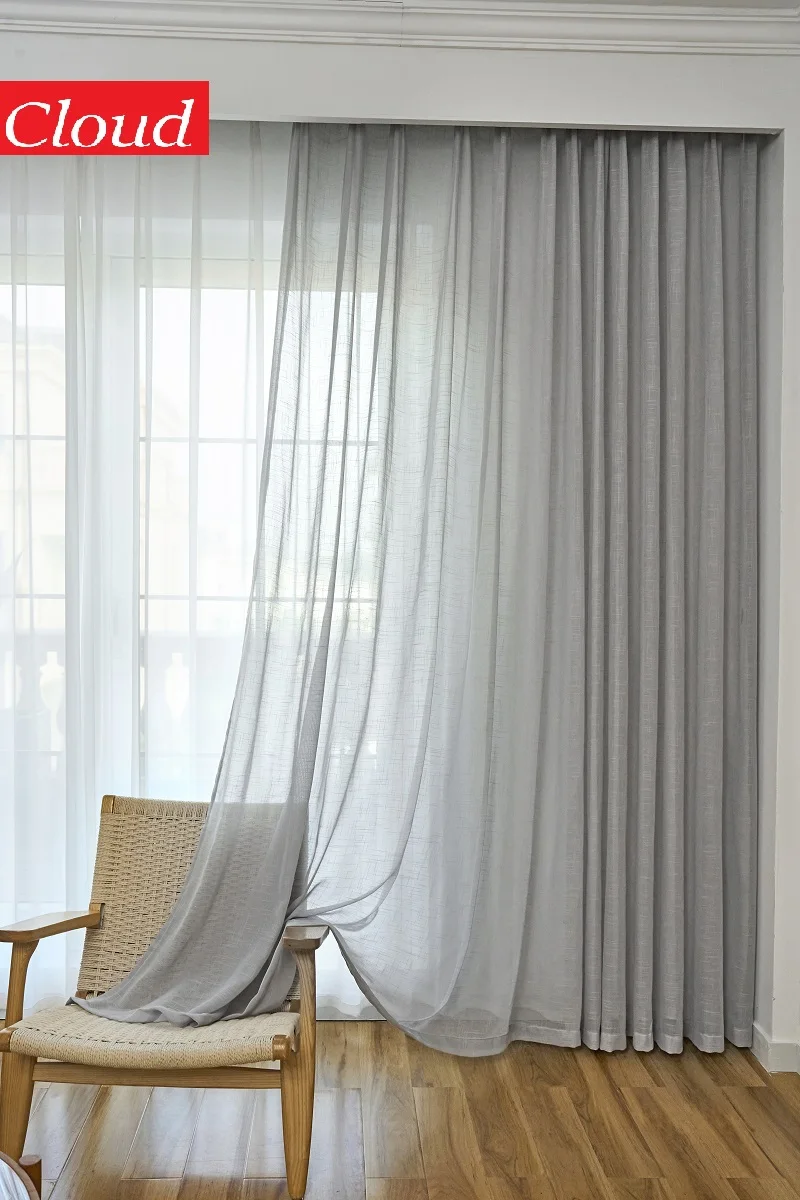 HANLU Светло-серые льняные шторы