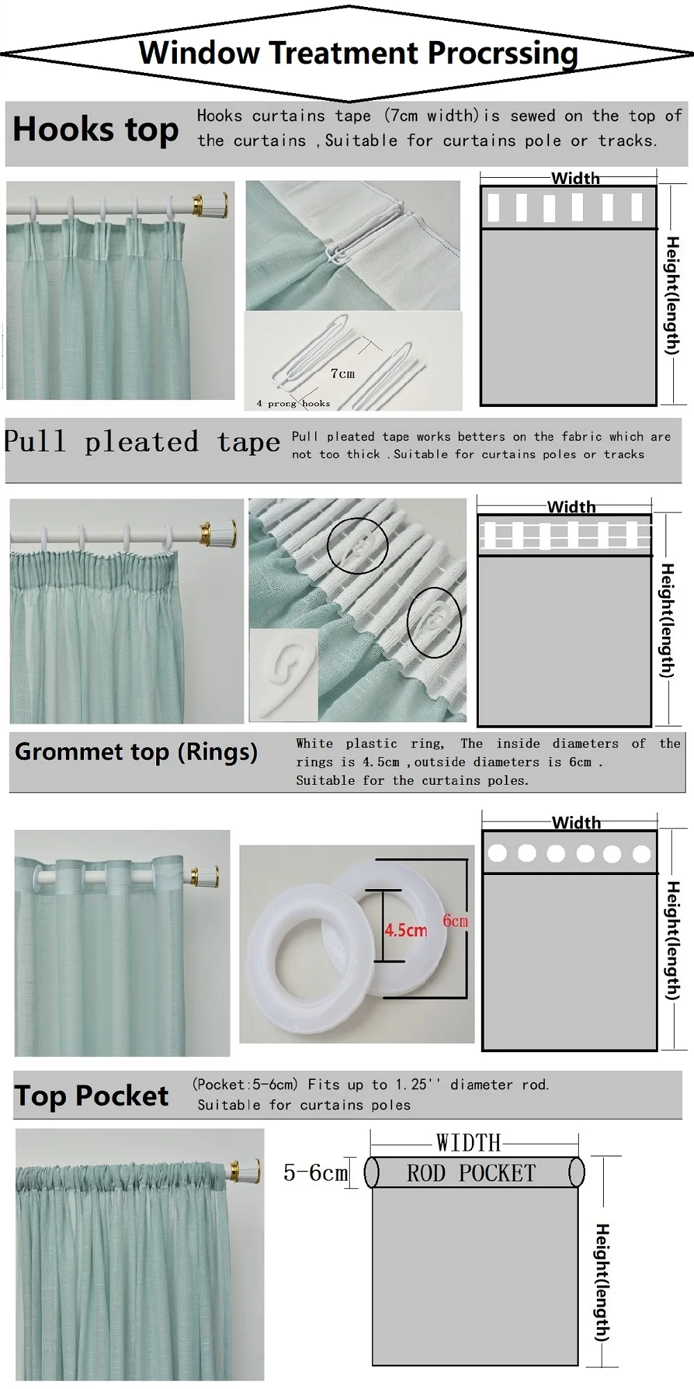 Его можно использовать крючок, складку и карман для стержня three-purpose.Suitable для кармана для штор или дорожек.