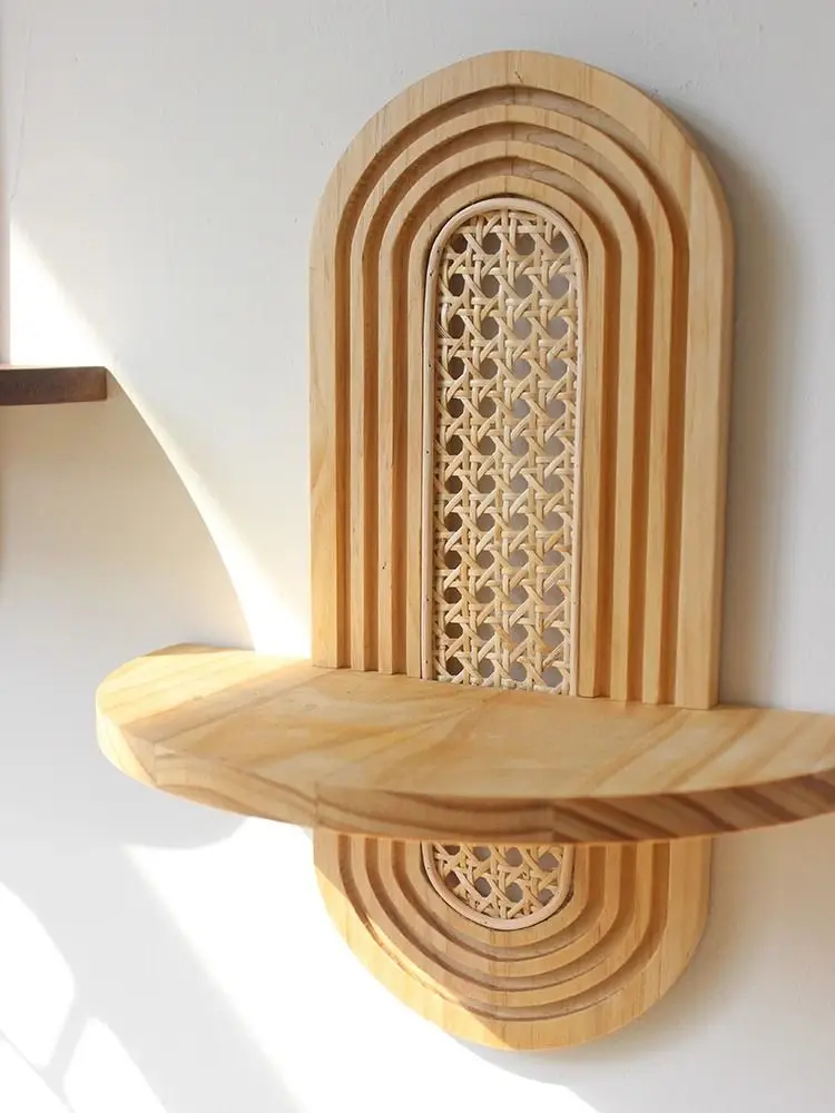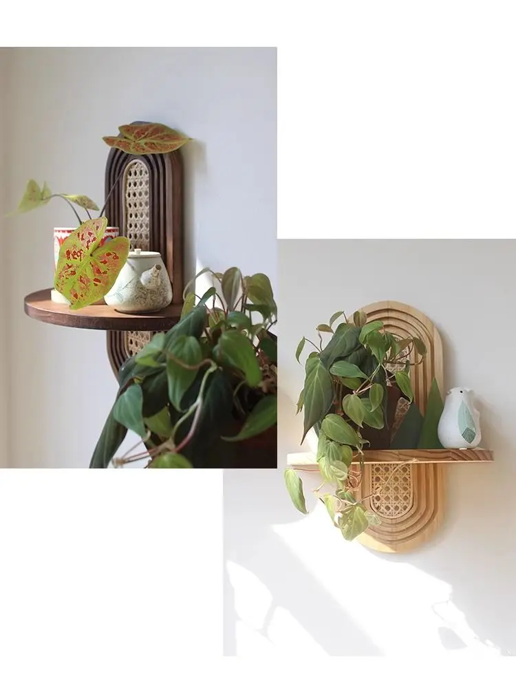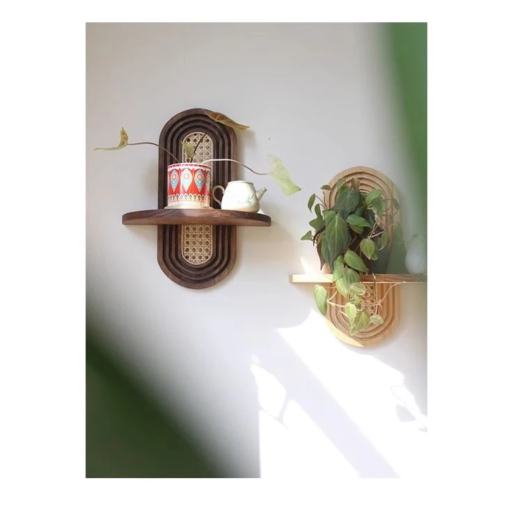 Bamboo Wooden Style Chinese Wall Decoration Shelf Bedroom Living Room...