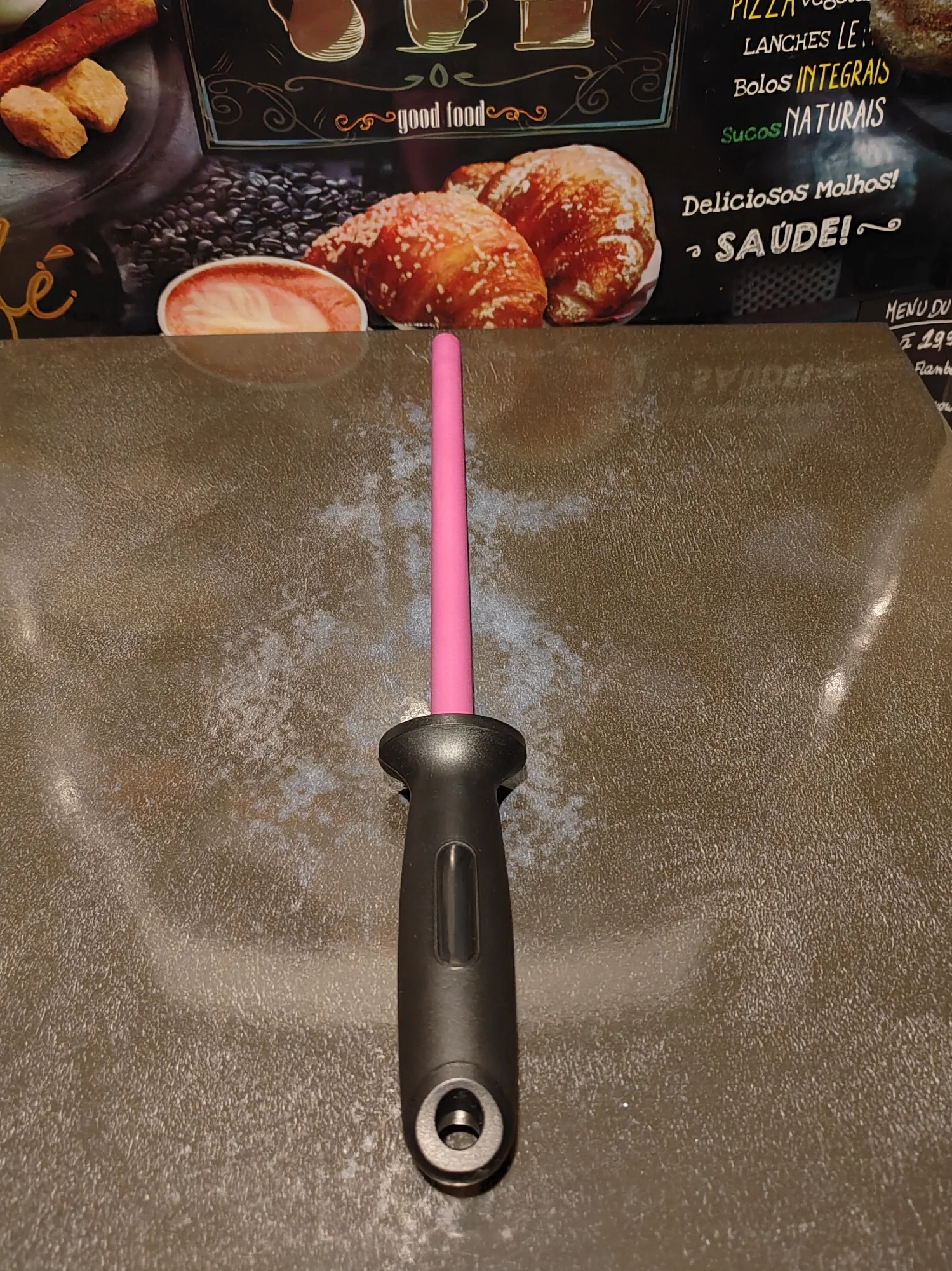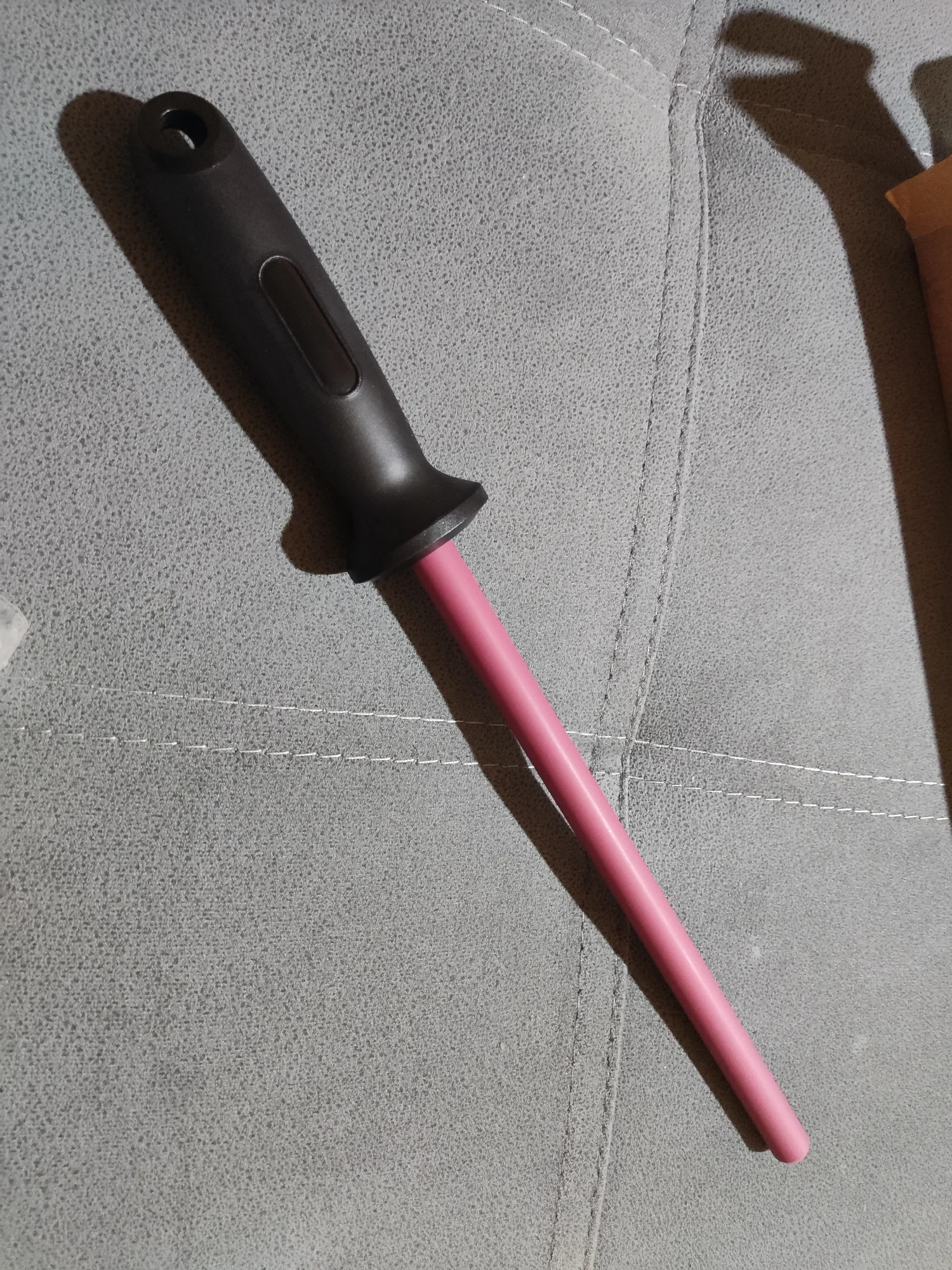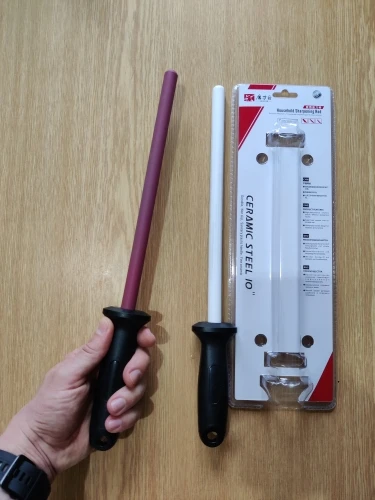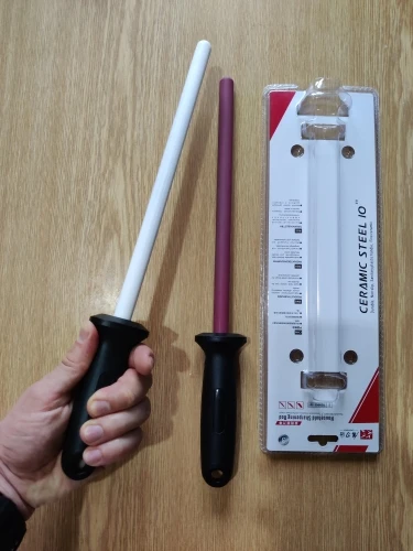 Ждал 3 года, когда выпустят длинные рубиновые стержни. Хорошее качество, удобная, нескользящая ручка. Ну а рубиновая керамика - одно лучших бюджетных средств для доводки ножей. Цельный стержень. Ну если придраться, то верхняя часть не идеально отшлифована).
