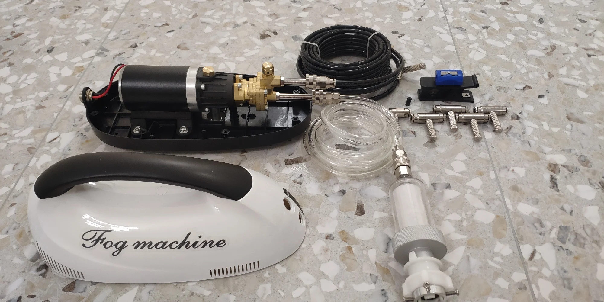 Насос работает, порадовал комплект. Предусмотрено все для монтажа: специальный резак для трубки, точилка для подравнивания края, фильтр тонкой очистки. Только вот из соединений фитингов с трубкой сочится вода. Нет подтверждения, но создается впечатление, что размер генерируемых частиц великоват. В летний жаркий день они не успевают испариться и оседают на пол, оставляя мокрый след вокруг.3790 u. 4 июля 2023