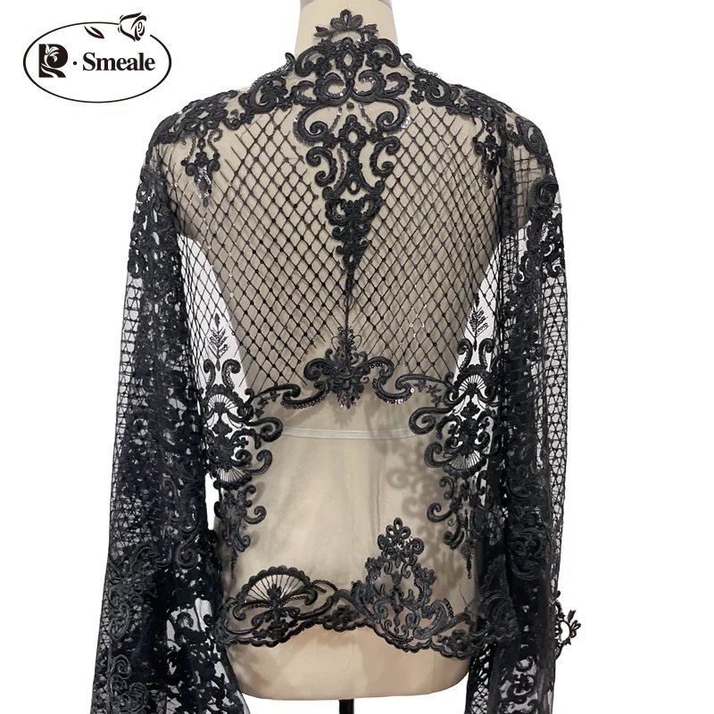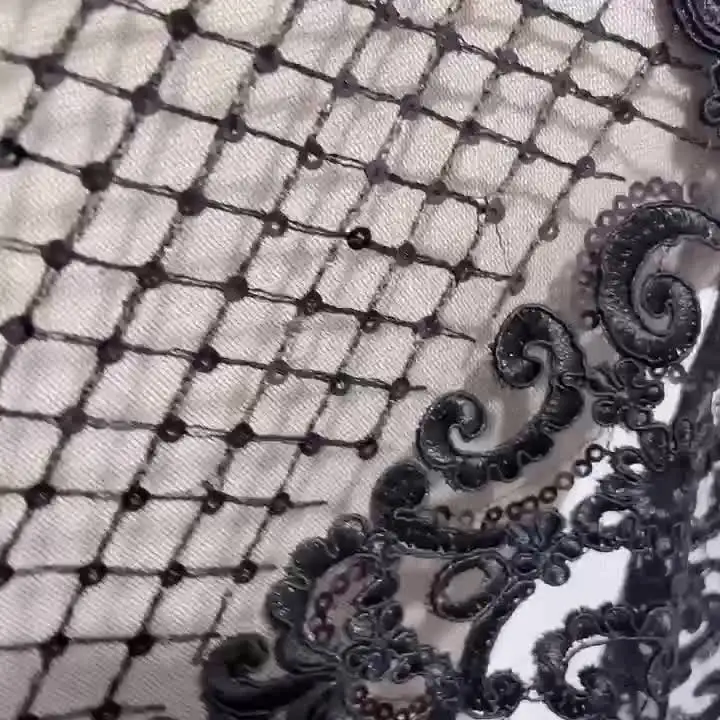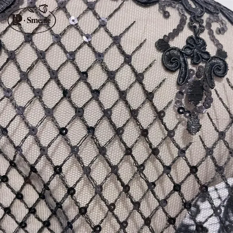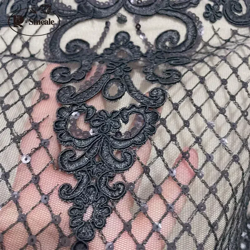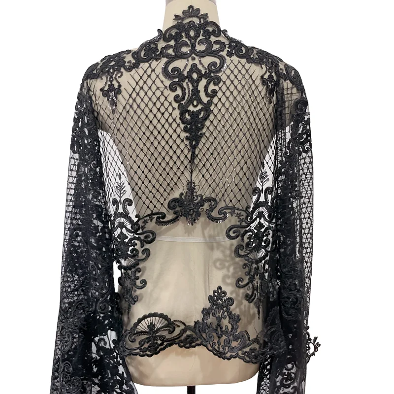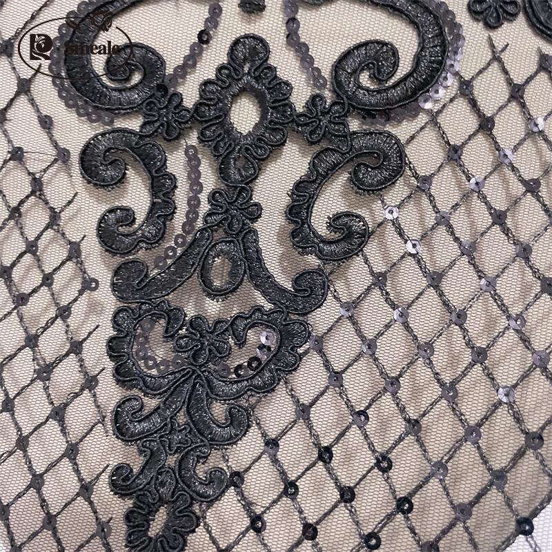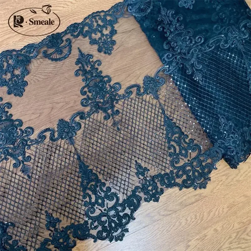 Black Gold Super High Border Lace Sequin Embroidery Handmade Diy Wedding Dress...