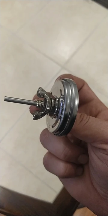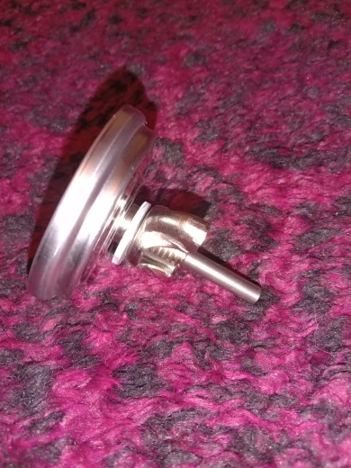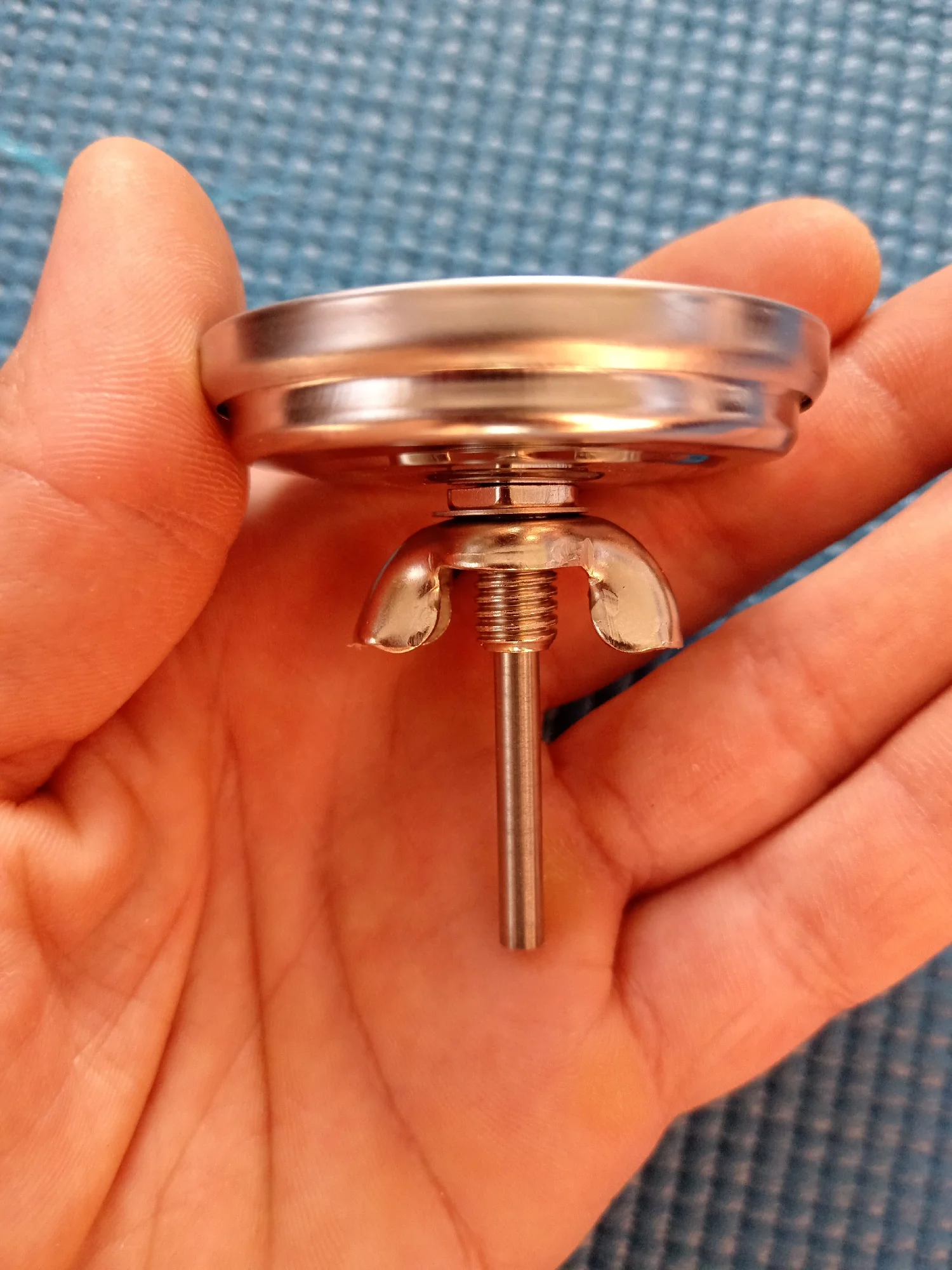 It is stainless steel and very easy to install, as you just insert the stem through the hole on your pit/ smoker/grill and then attach the nut, which is included.