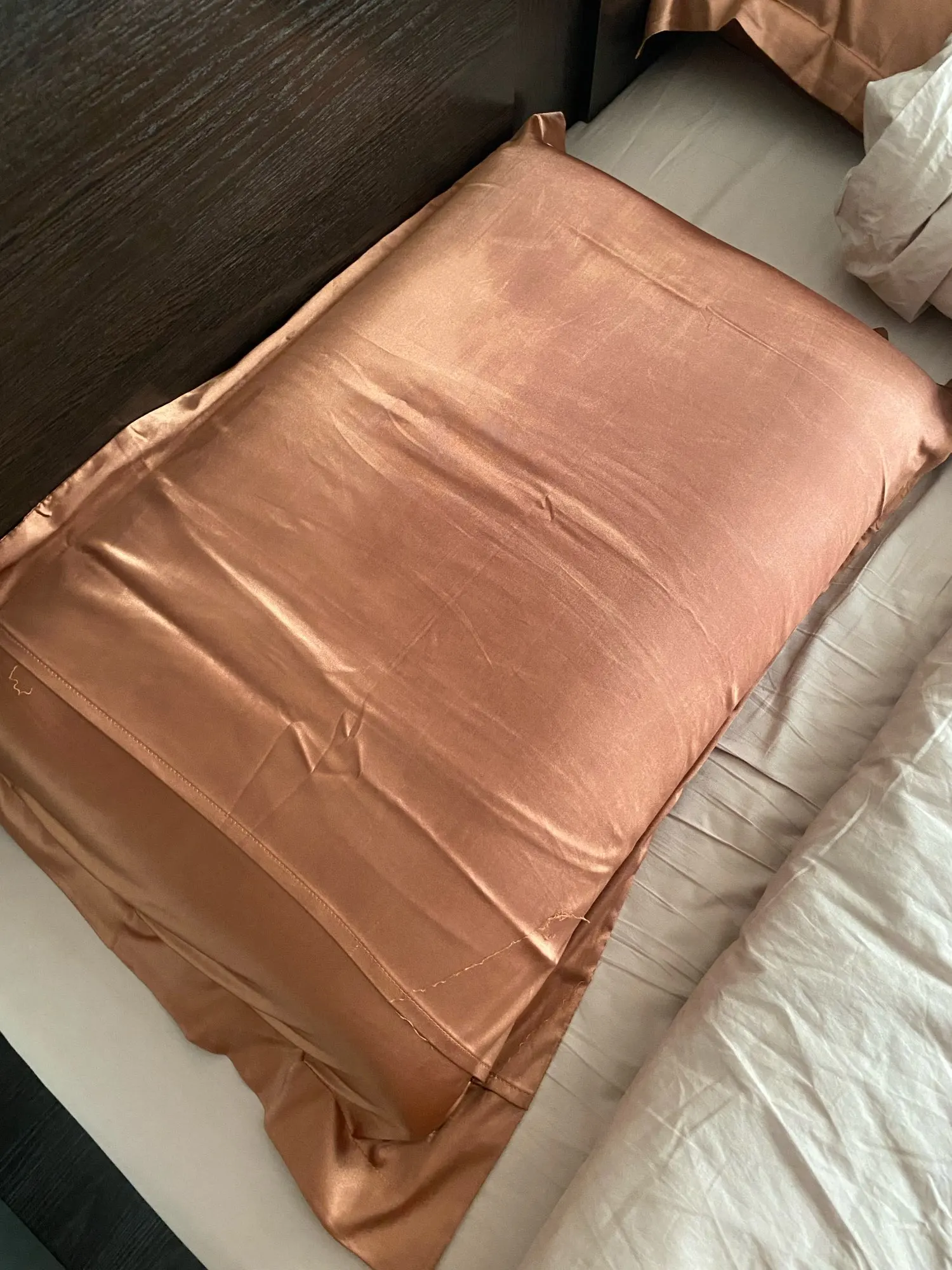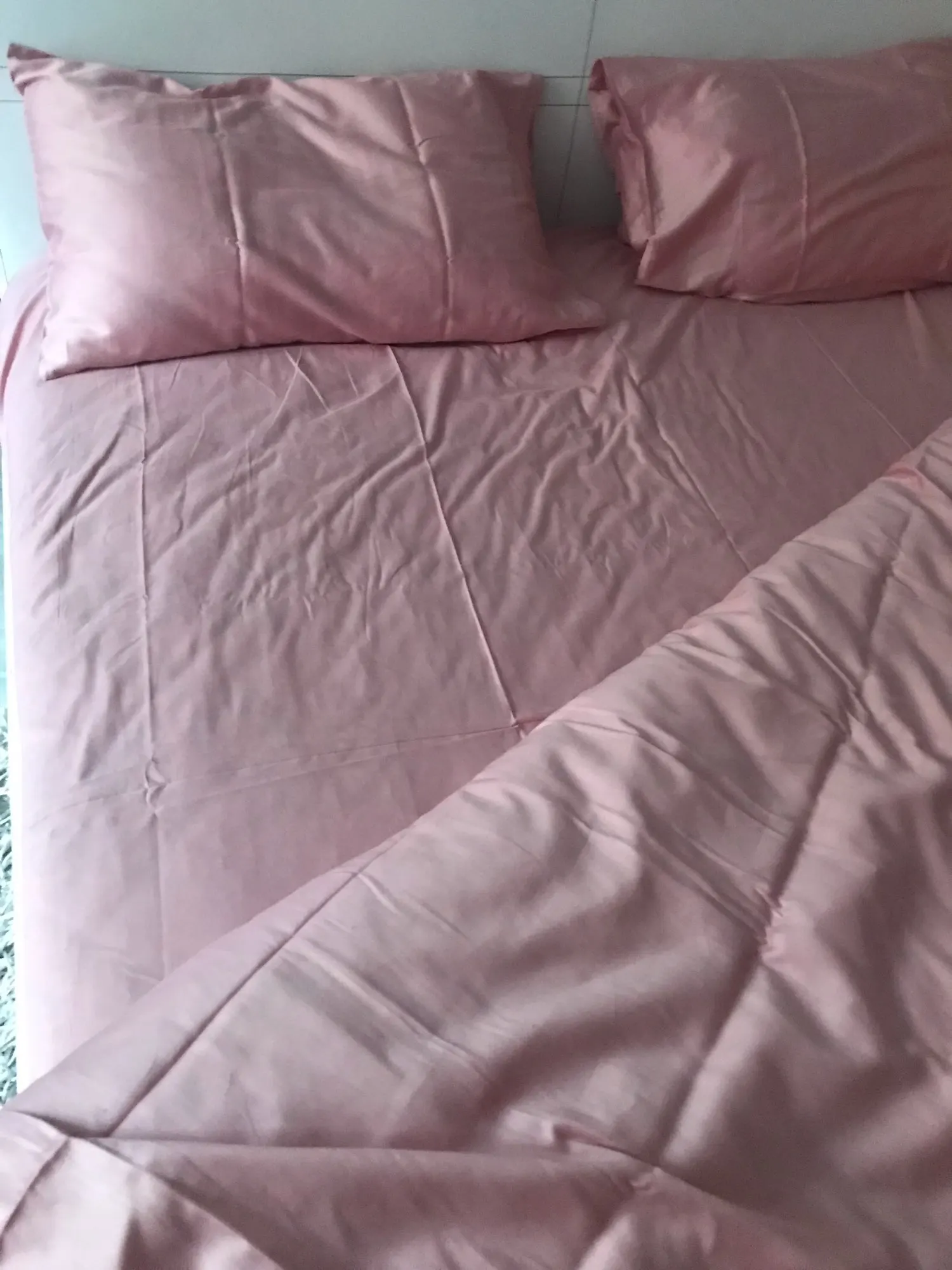 Сатин шикарного качества. Конечно пока что пережил только одну стирку, сегодня будем обкатывать 🤣 но я уверена что эта ткань будет долгоживущей. Цвет очень похож на тот что на фото. Есть карман на наволочках, пододеяльник на молнии(достаточно хорошей), высота простыни на резинке как и в описании, мой матрас просто очень аыслкийЧ Думаю возьму еще один комплект. Карочи 10/10. Но доставку задержали на 10 дней от указанной даты, в целом до калифорнии дошел где то за месяц.