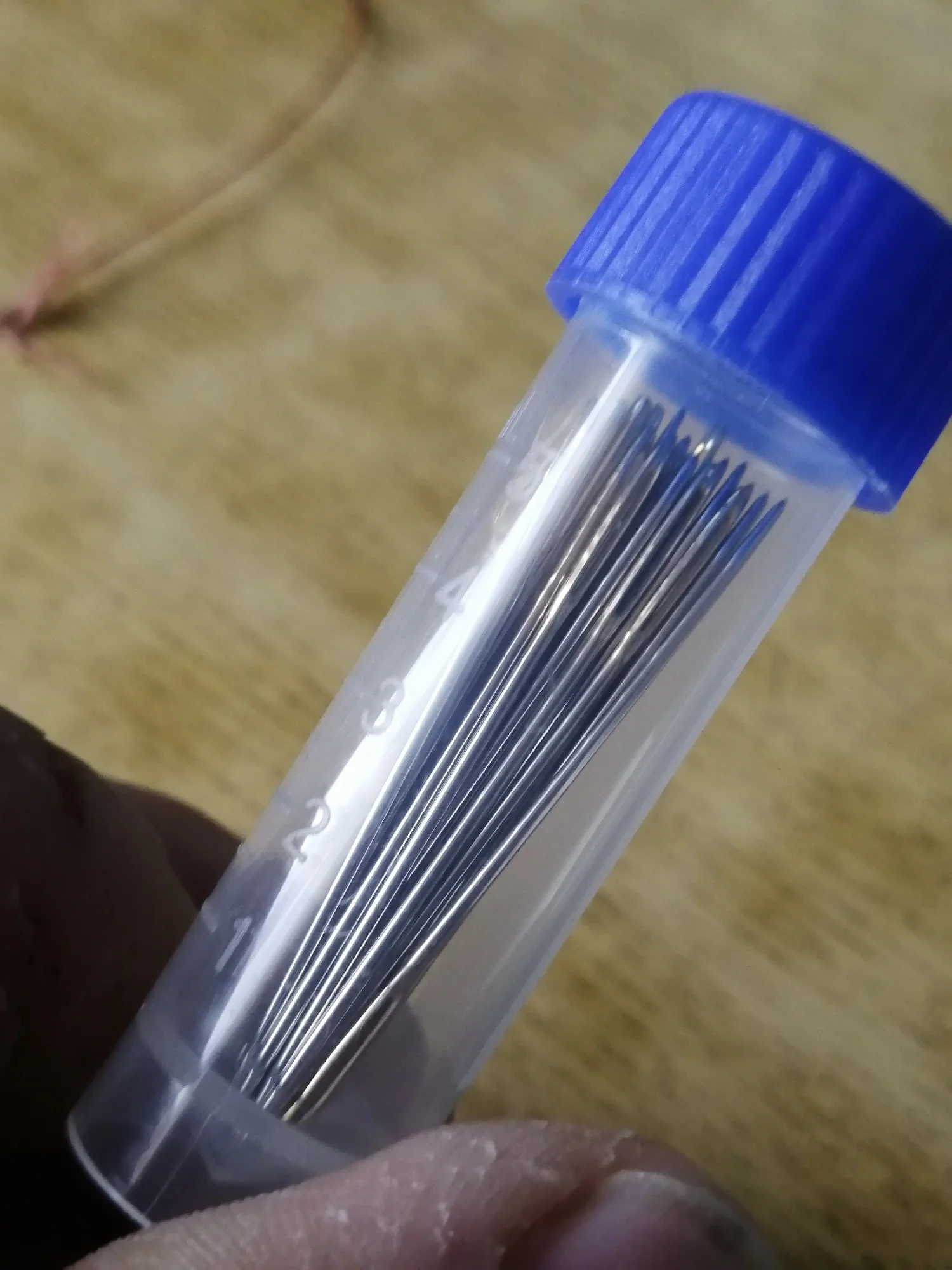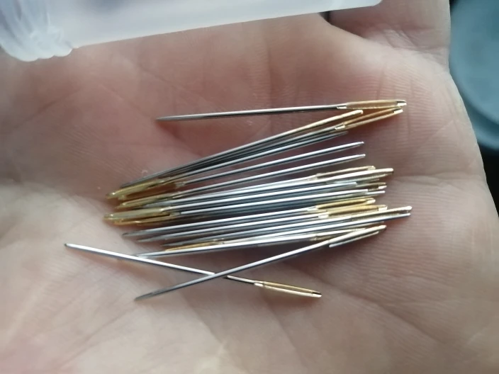 Заказ пришёл быстро. Иглы пришли в футляре. Сами иглы небольшие, но кончик немного островаты может протянуть пришитье встречнюю нить. Придётся немного затупить. Продавцу и доставке спасибо!