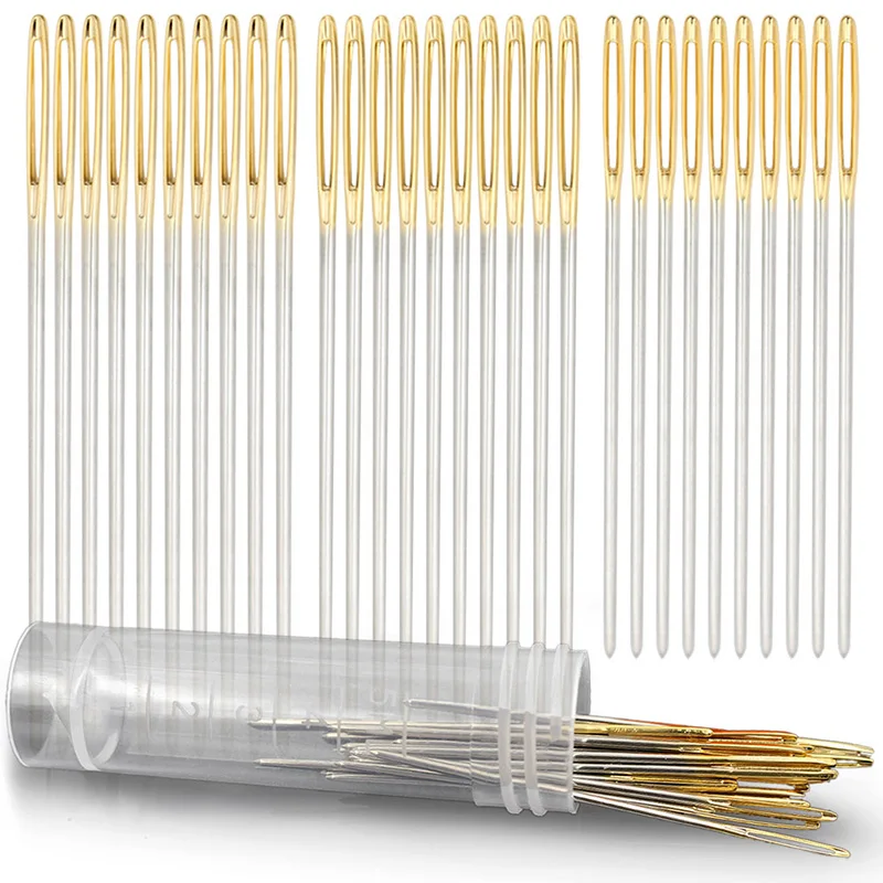 Швейная игла для изготовления изделий из кожи, тупая головка с круглой головкой, острый инструмент с заостренной призмой для вышивки, иглы с золотым хвостом и большим глазом