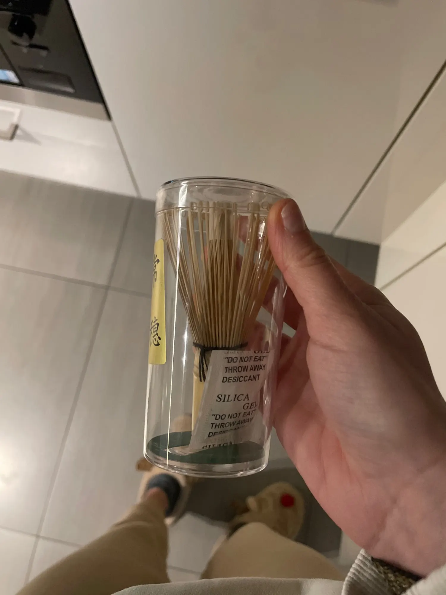 Номер, который я взял, был с очень небольшим количеством бамбука, я полагаю, что если бы я купил 84, это было бы лучше, но Он растворяет порошок маття очень быстро и круто