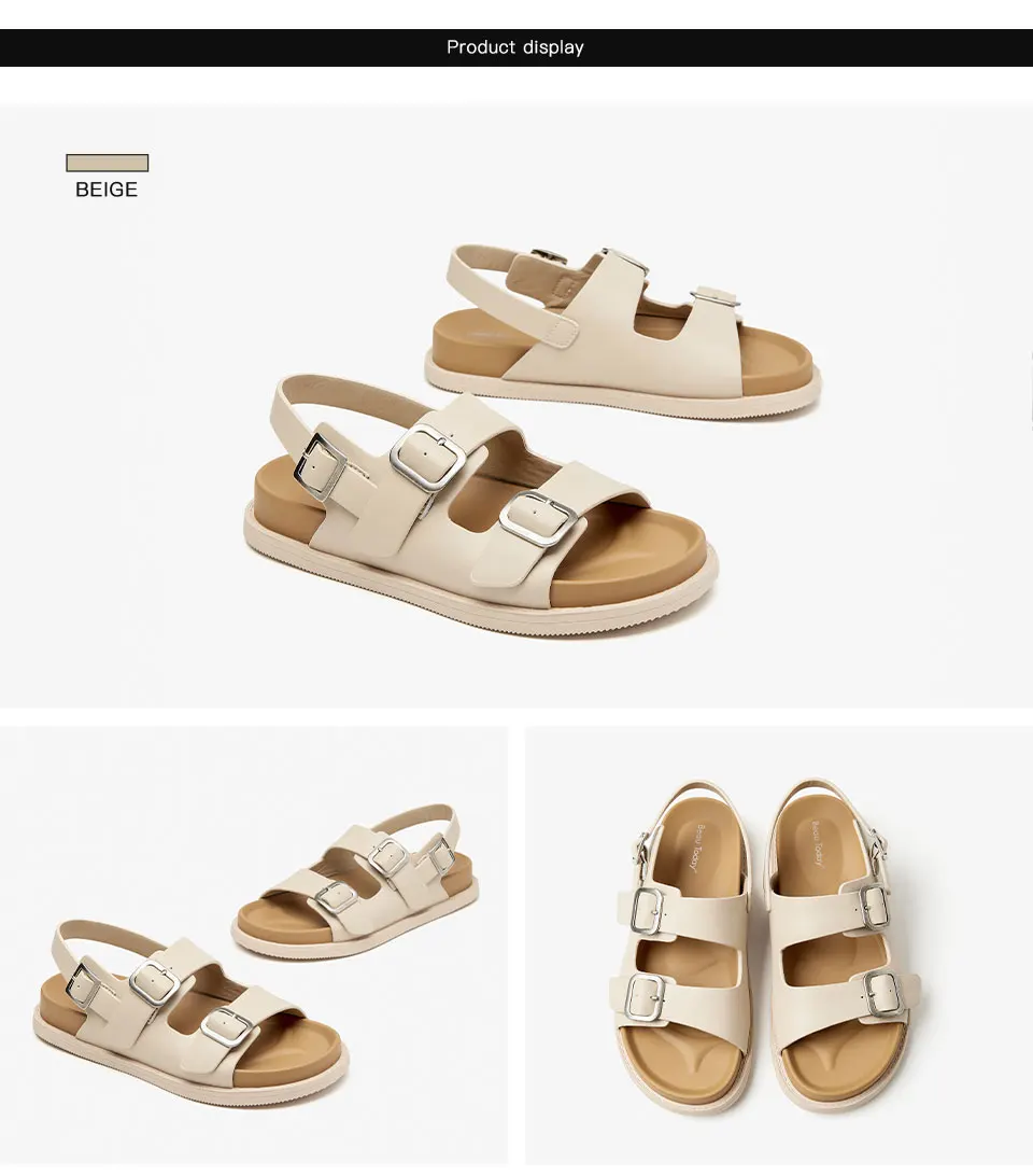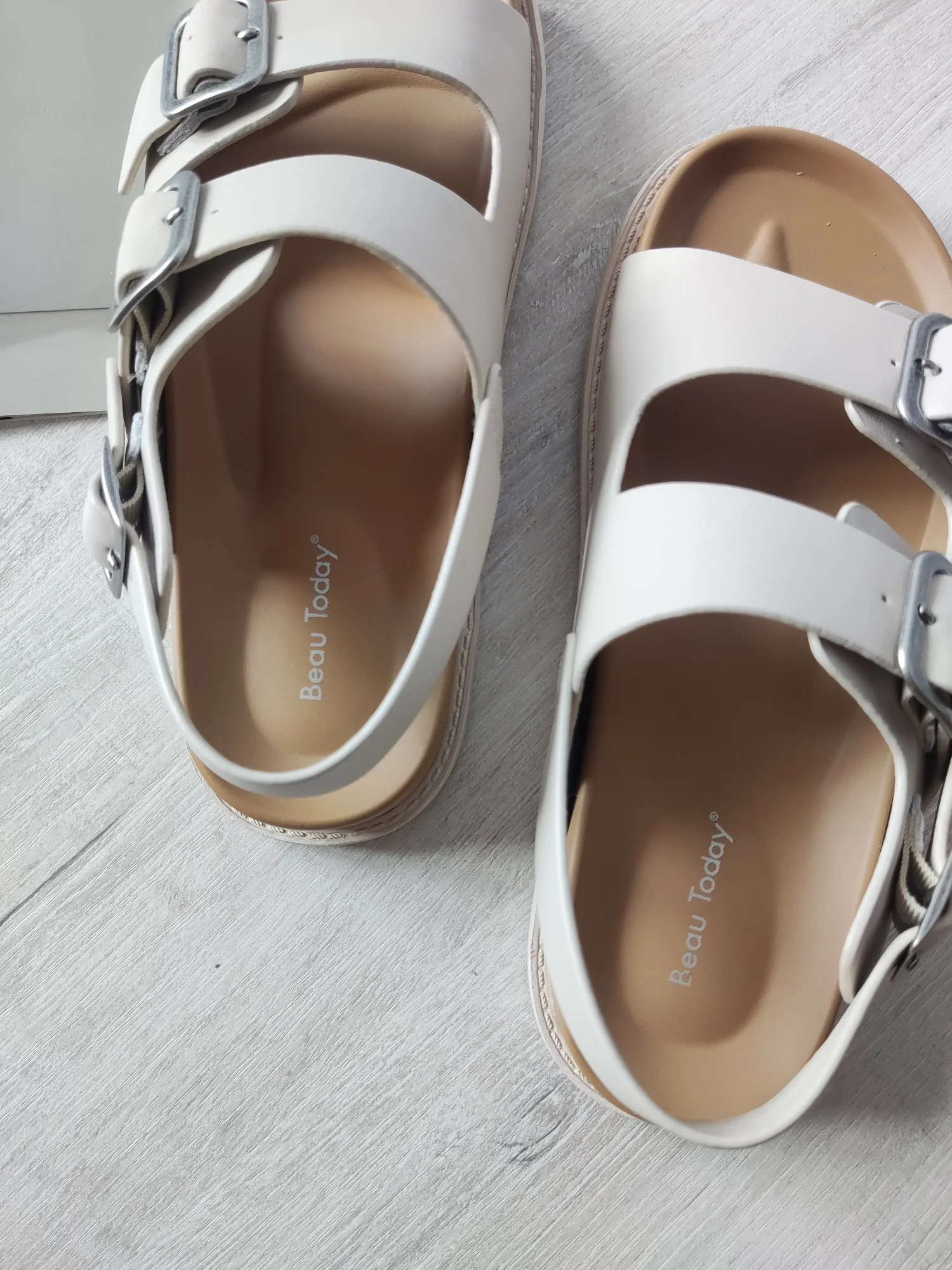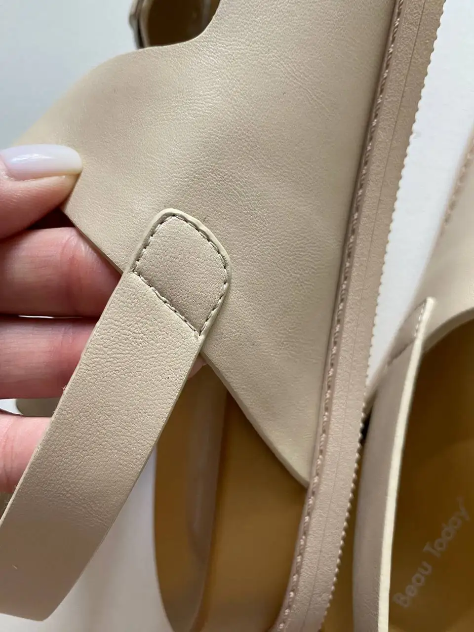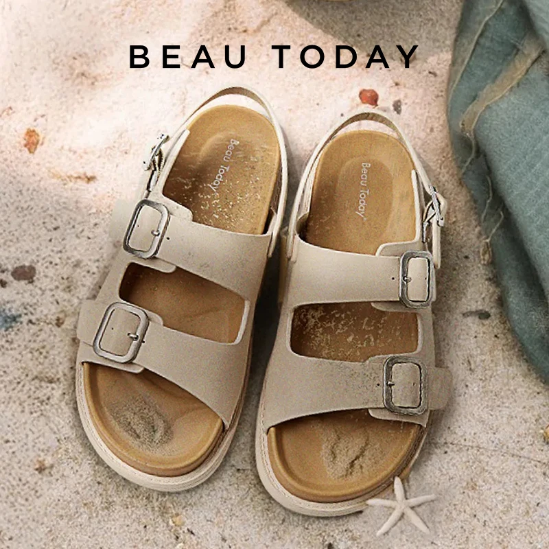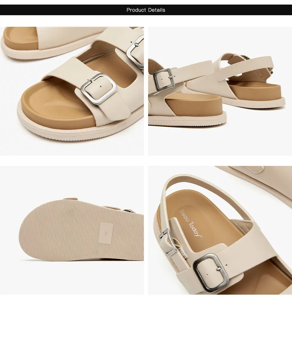 BeauToday Sandals Women Synthetic Leather Front and Real Strap Solid Color...