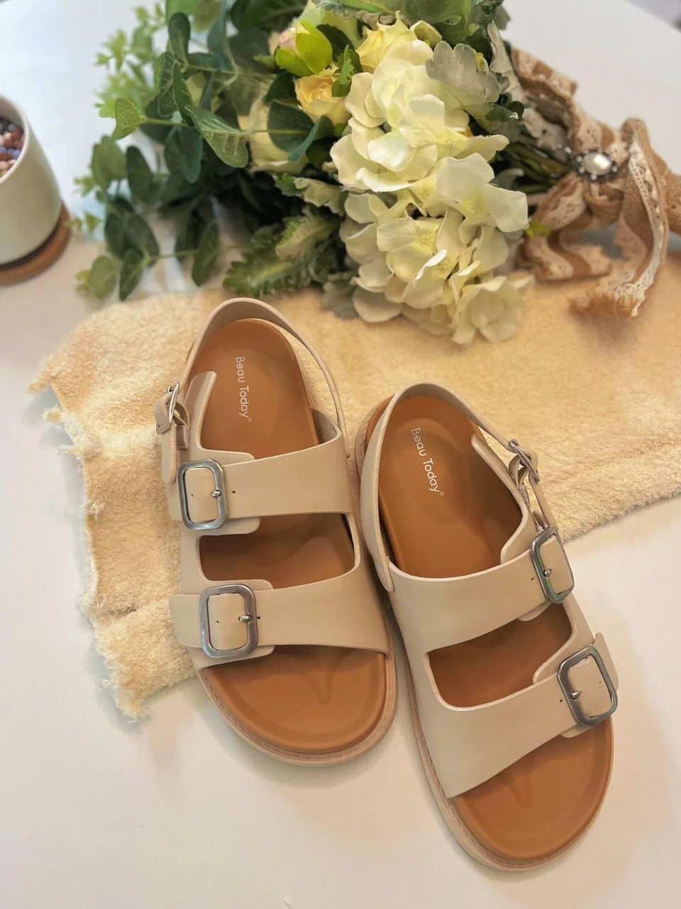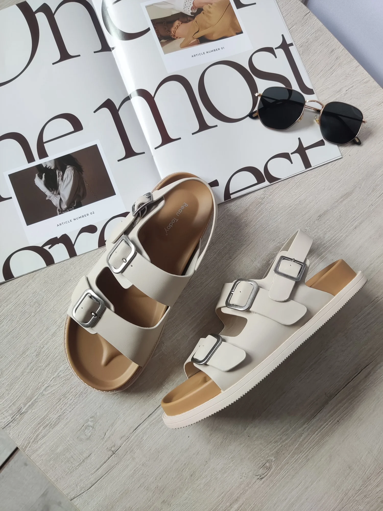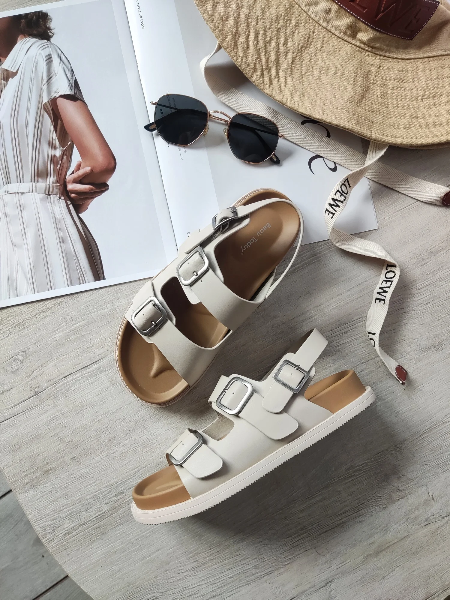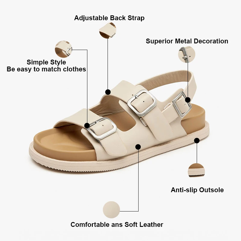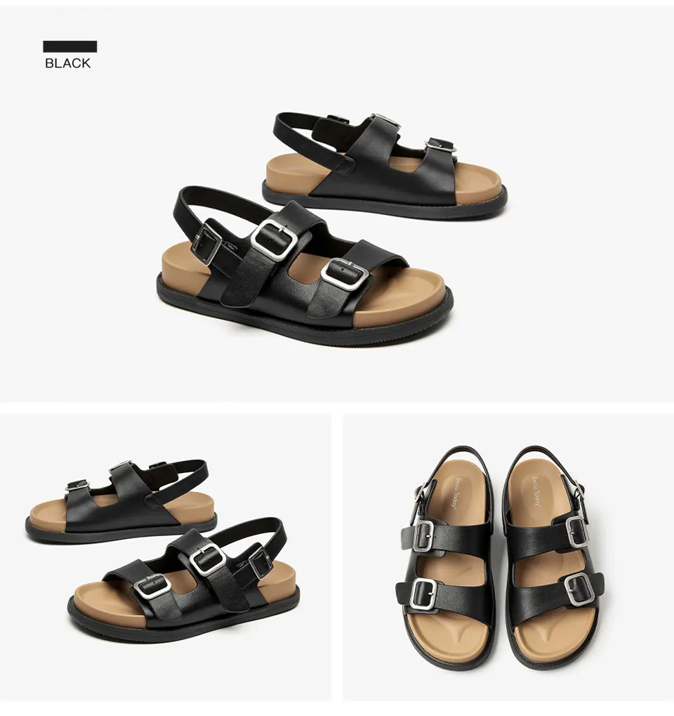 BeauToday Sandals Women Synthetic Leather Front and Real Strap Solid Color...