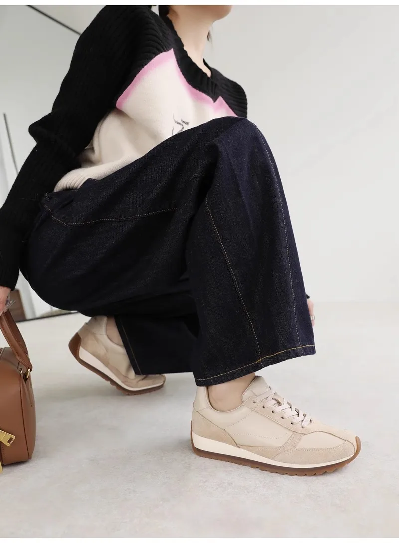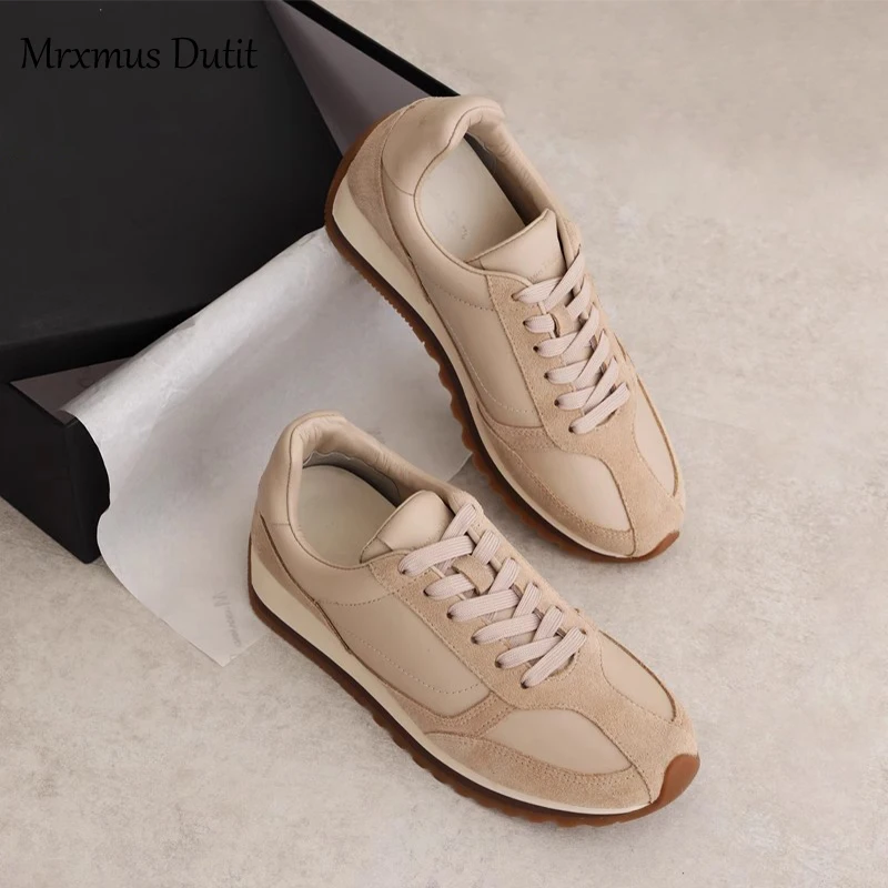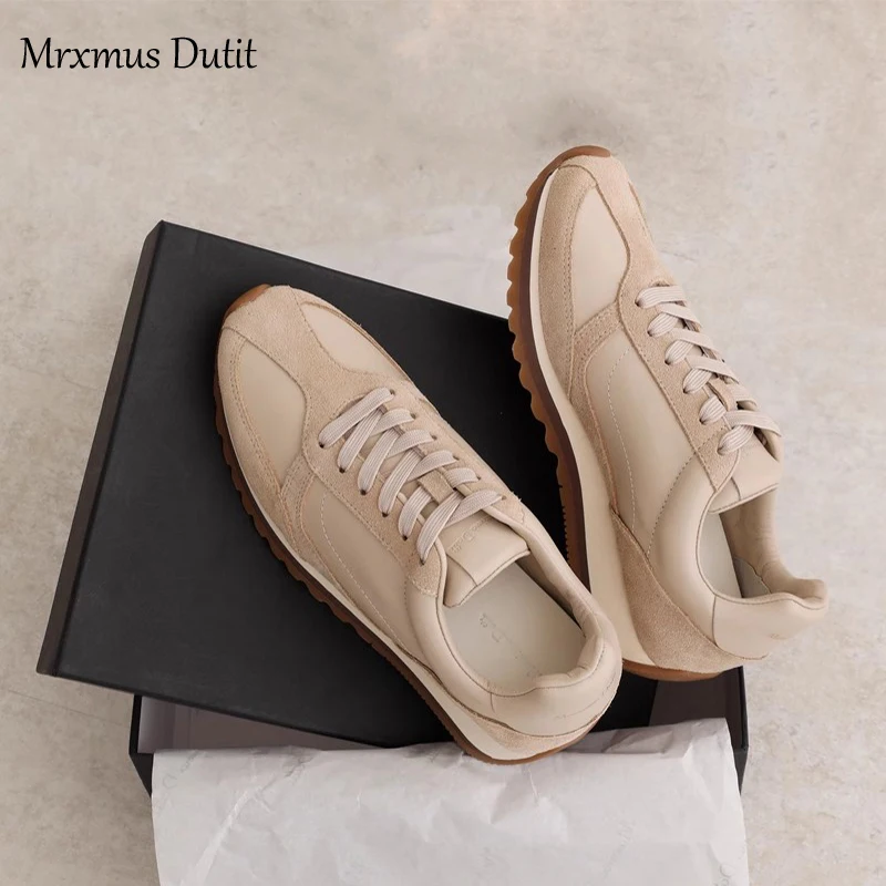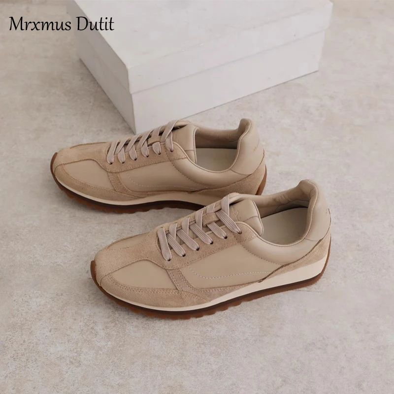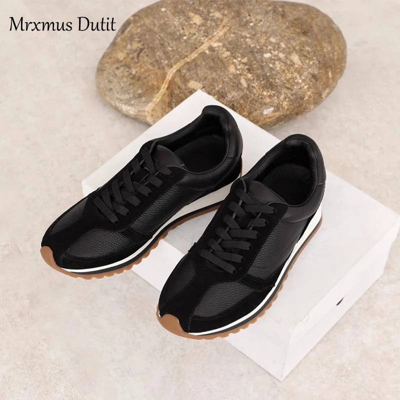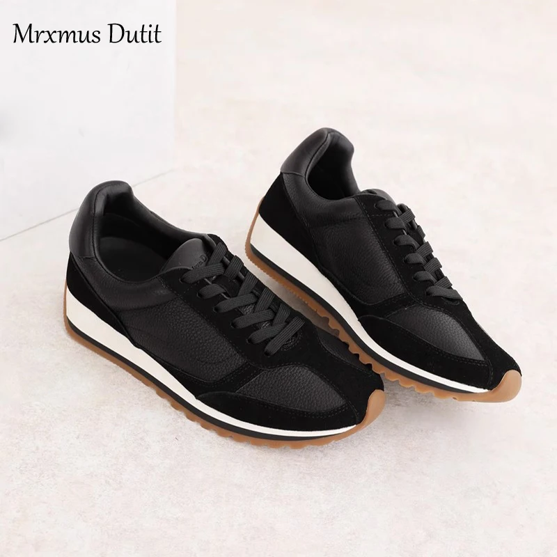Кроссовки Mrxmus Dutit2024 женские, модная повседневная универсальная удобная обувь из натуральной кожи, на толстой подошве, со шнуровкой, на плоской подошве