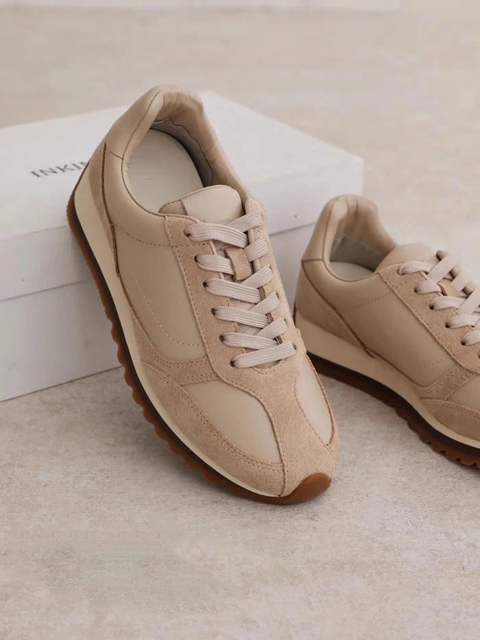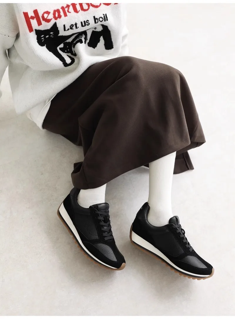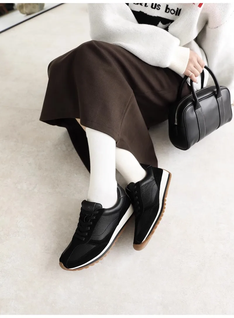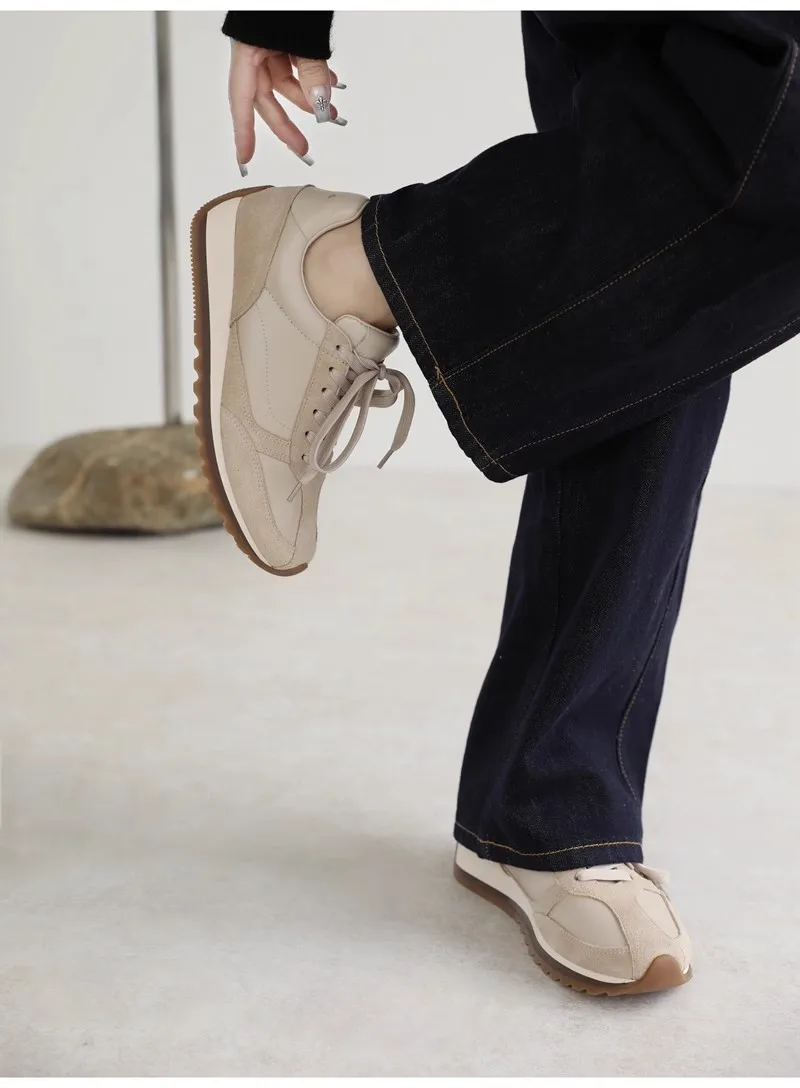 Кроссовки Mrxmus Dutit2024 женские, модная повседневная универсальная удобная обувь из натуральной кожи, на толстой подошве, со шнуровкой, на плоской подошве