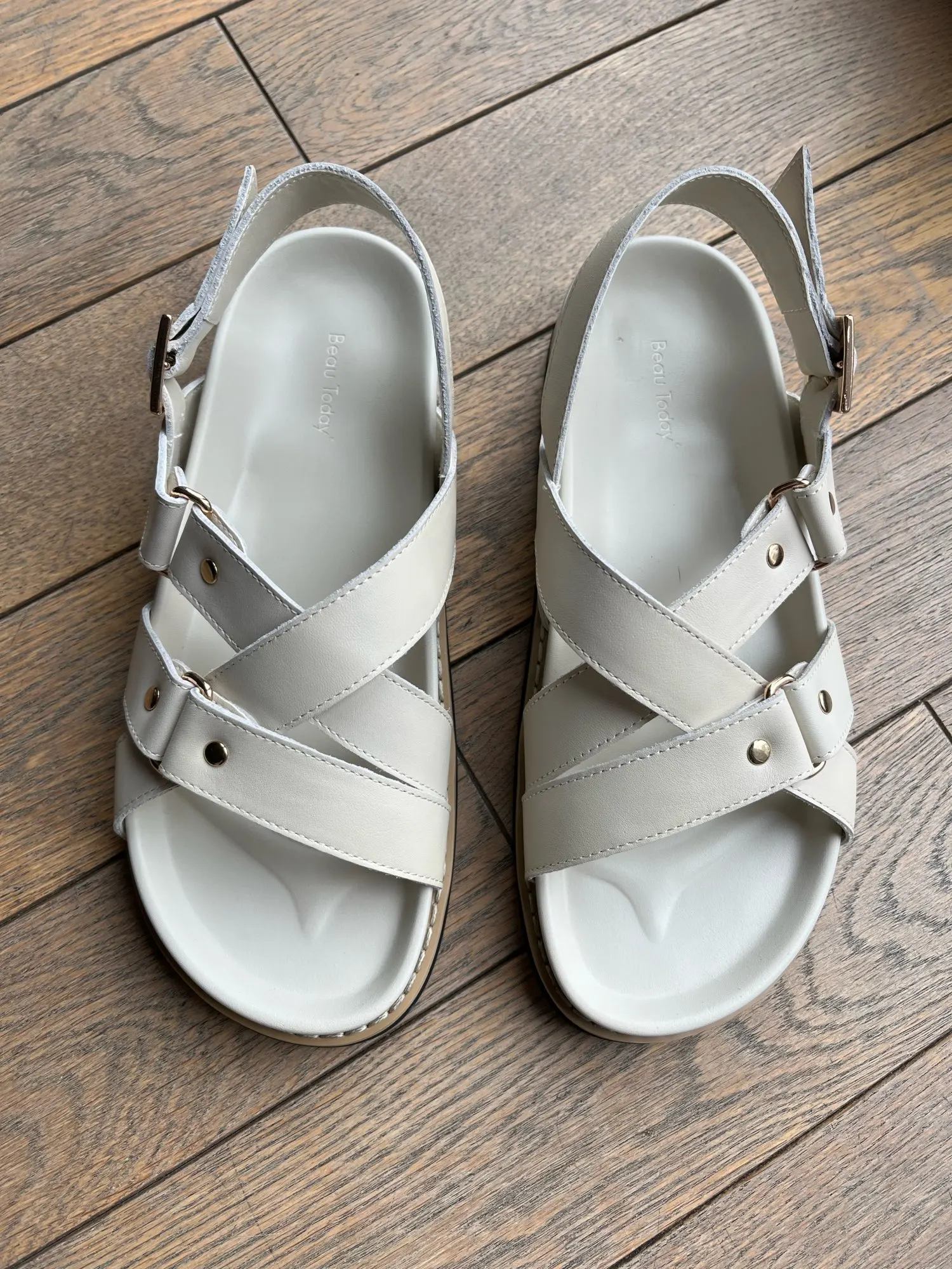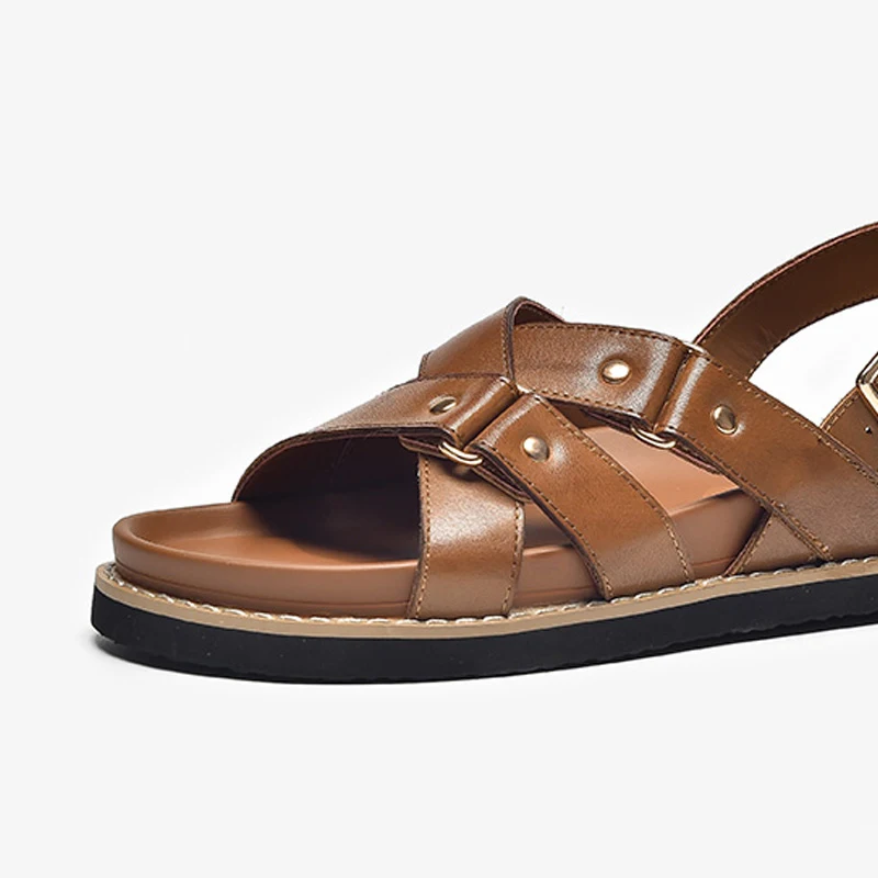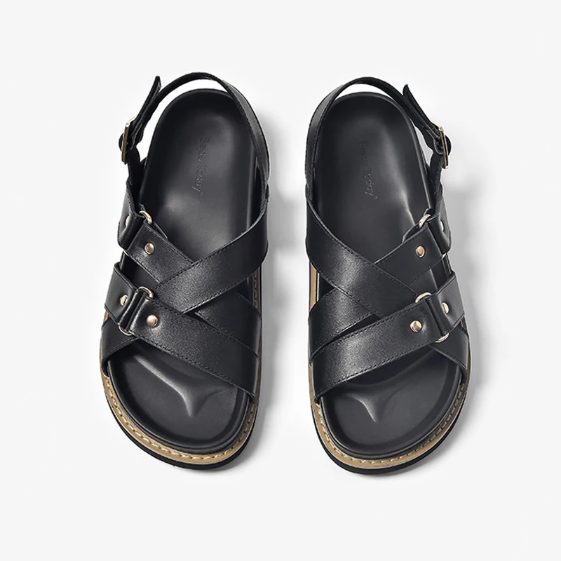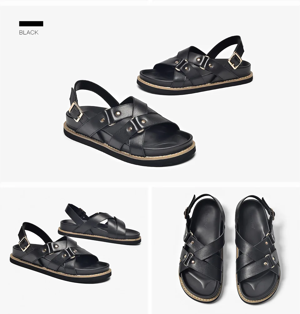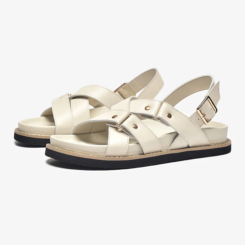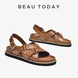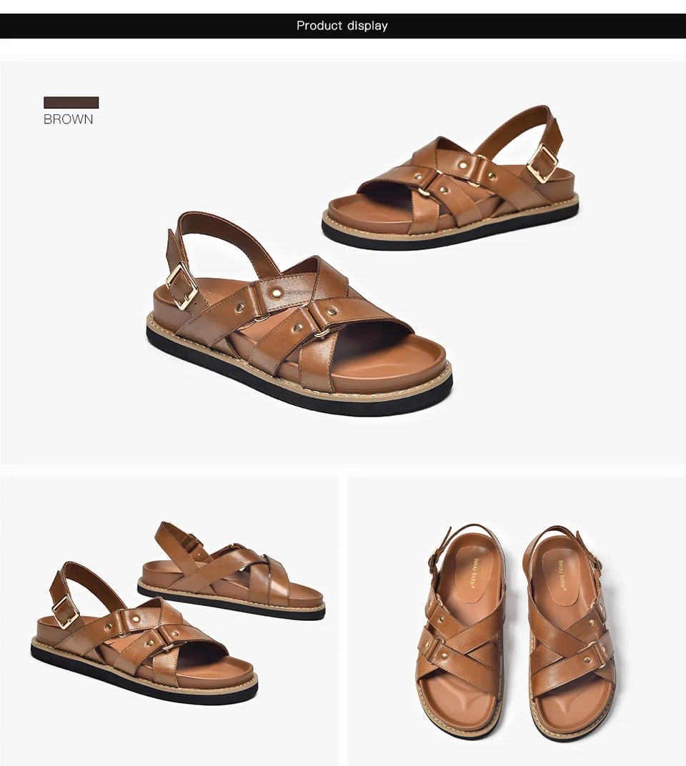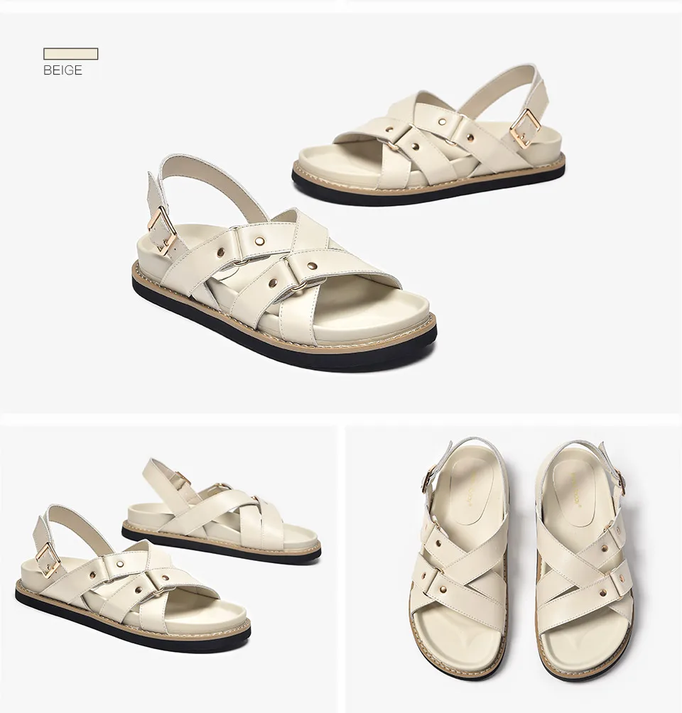 BEAUTODAY Leisure Sandals Women Genuine Cow Leather Cross-tied Solid Metal...