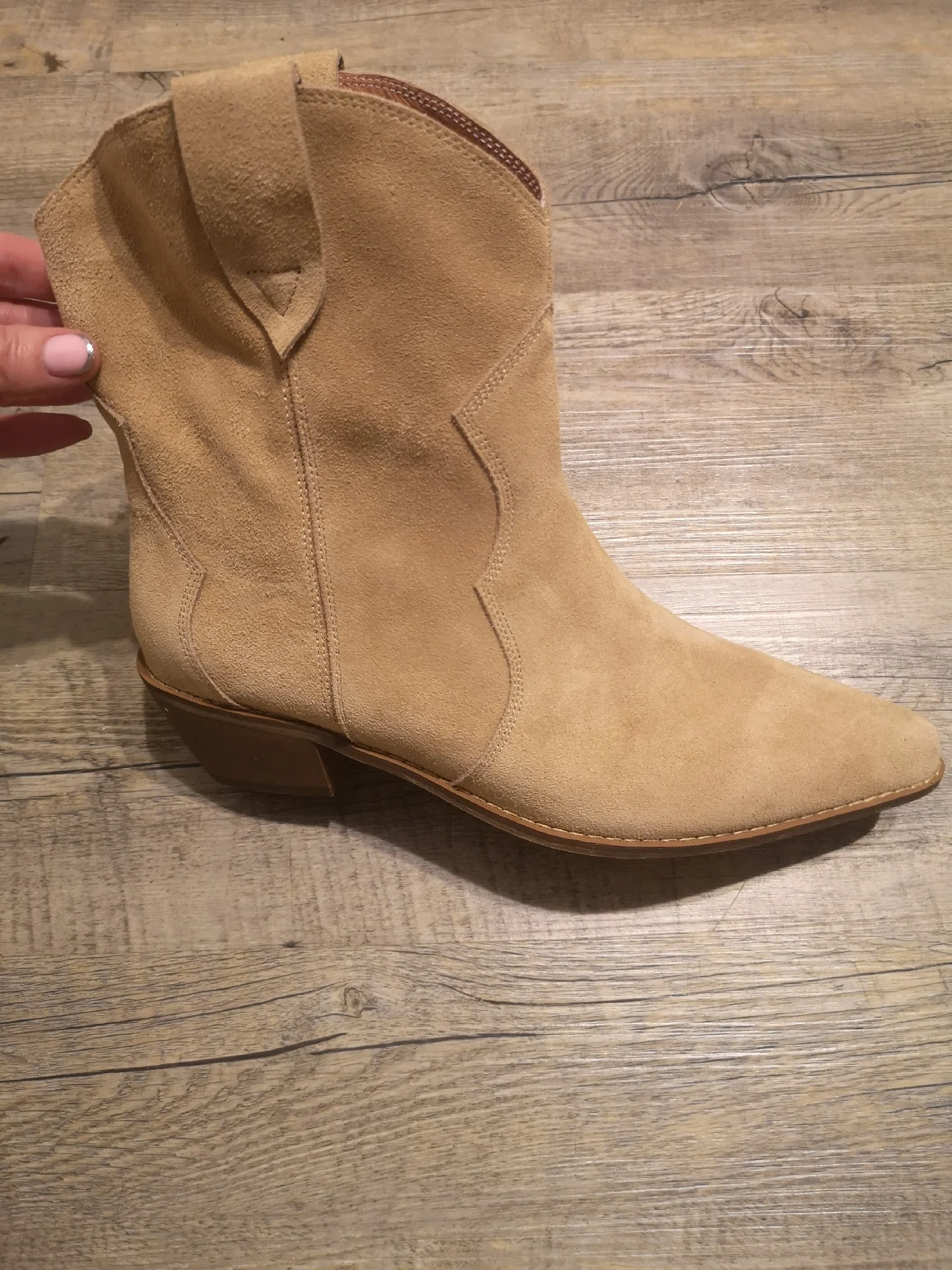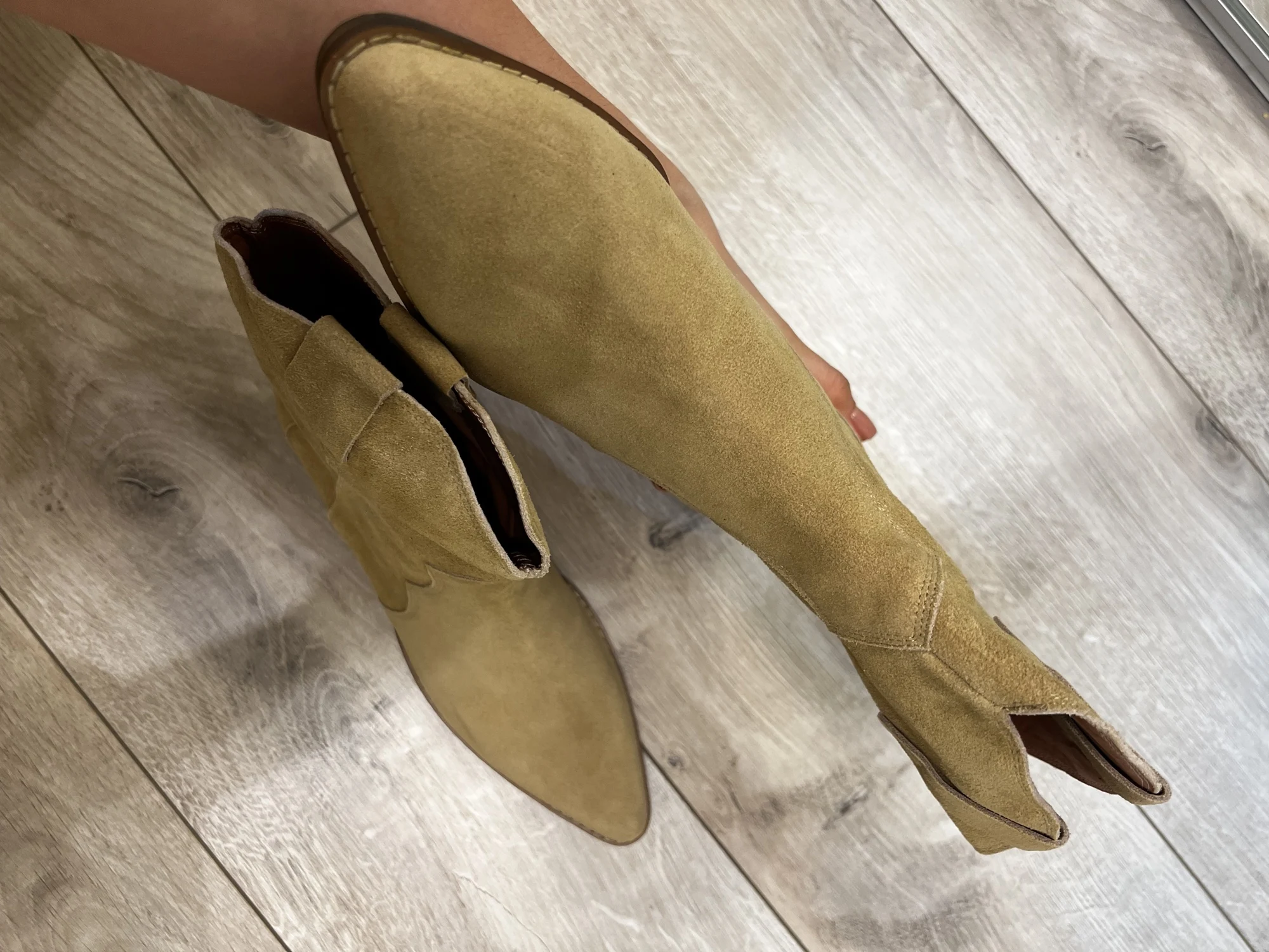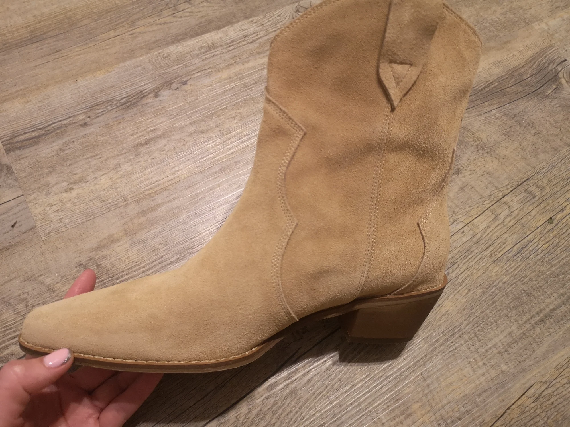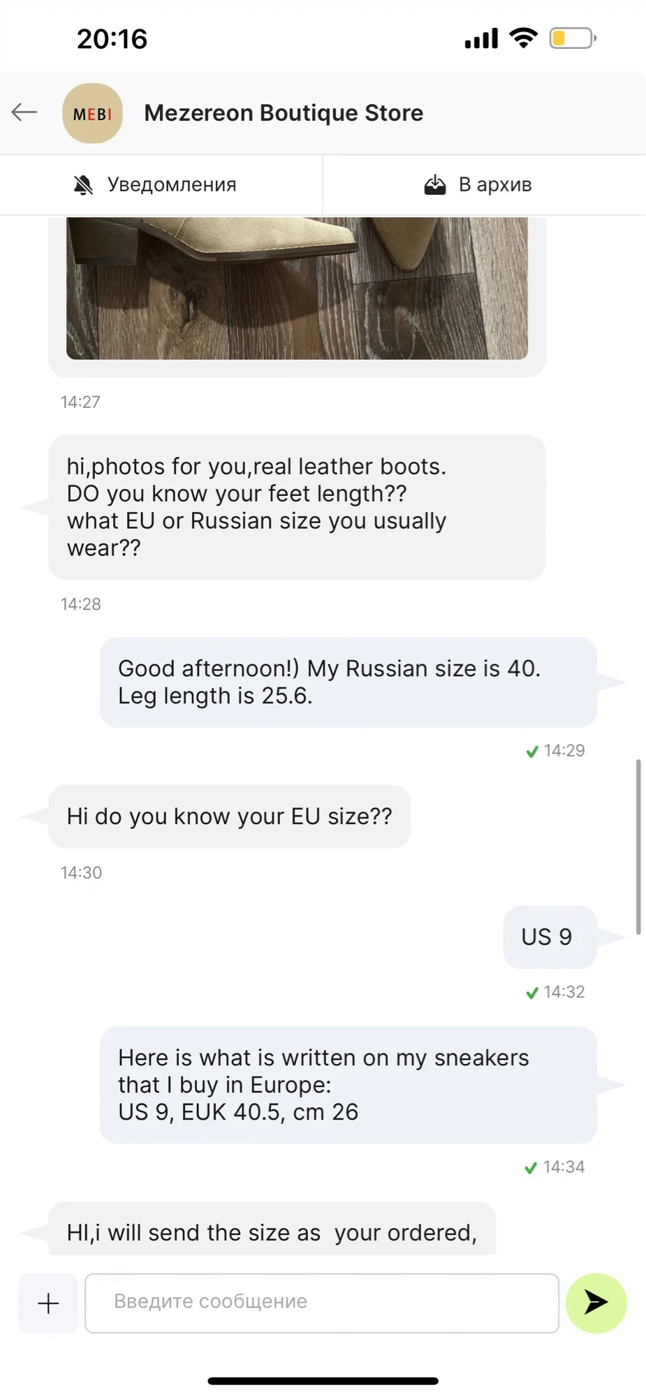 Девочки я плачу от счастья!!😭❤️ Сапожки - это что-то просто на идеальном!!! Натуральная замша, цвет, фасон, качество, удобство!! Какие они мягкие,а какая мягкая стелька, словно ортопедическая! пальчики внутри не давит, пятка не шлепает!! Как же я долго искала такую модель!! Я в восторге! А какие крутые с ними образы😍 под платье, джинсы, шорты, леггинсы. Просто восторг!! ❤️ Доставка быстрая, до Мск 2 недели, продавец дольше отправлял заказ) Нога моя по полноте узкая, на длину стопы 24 см(37 росс) , заказала размер 6.5 (23.5 см в сетке продавца ) - ИДЕАЛЬНО!! не нужно ни больше, ни меньше! Благодарю продавца за такую крутую обувь. Единственная ложка дёгтя - это запах краски, но он быстро выветривается, поэтому для меня это вообще не считается