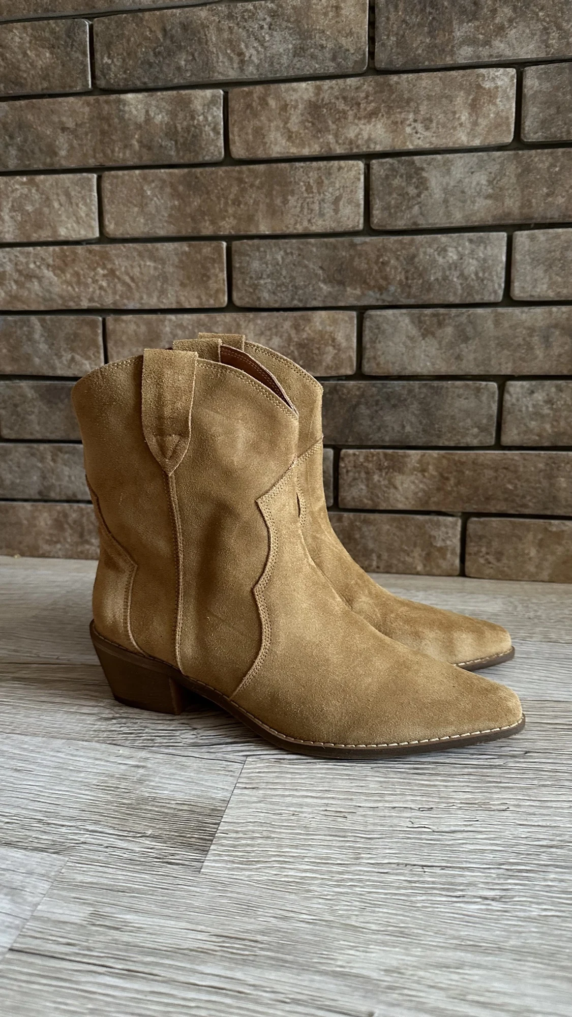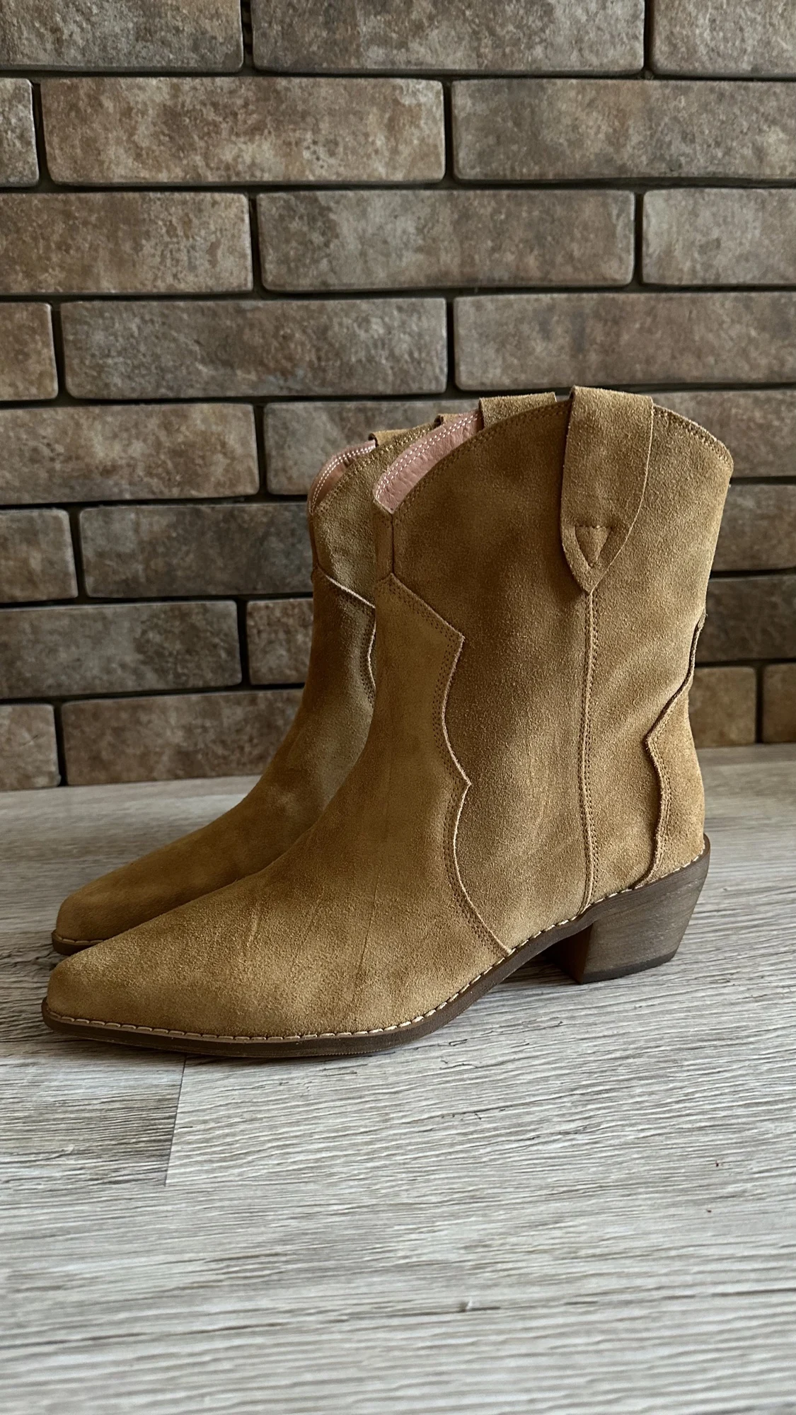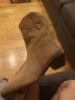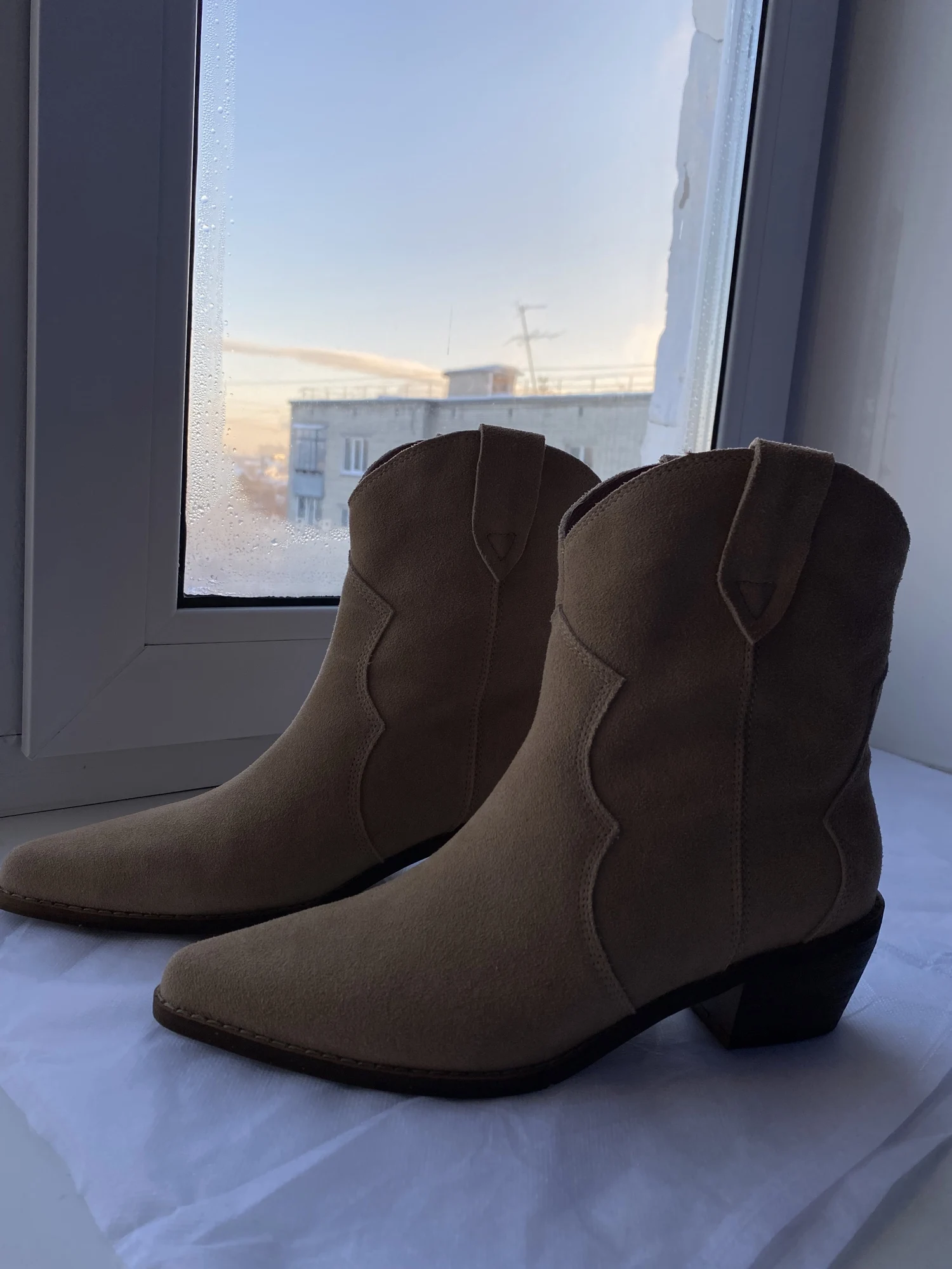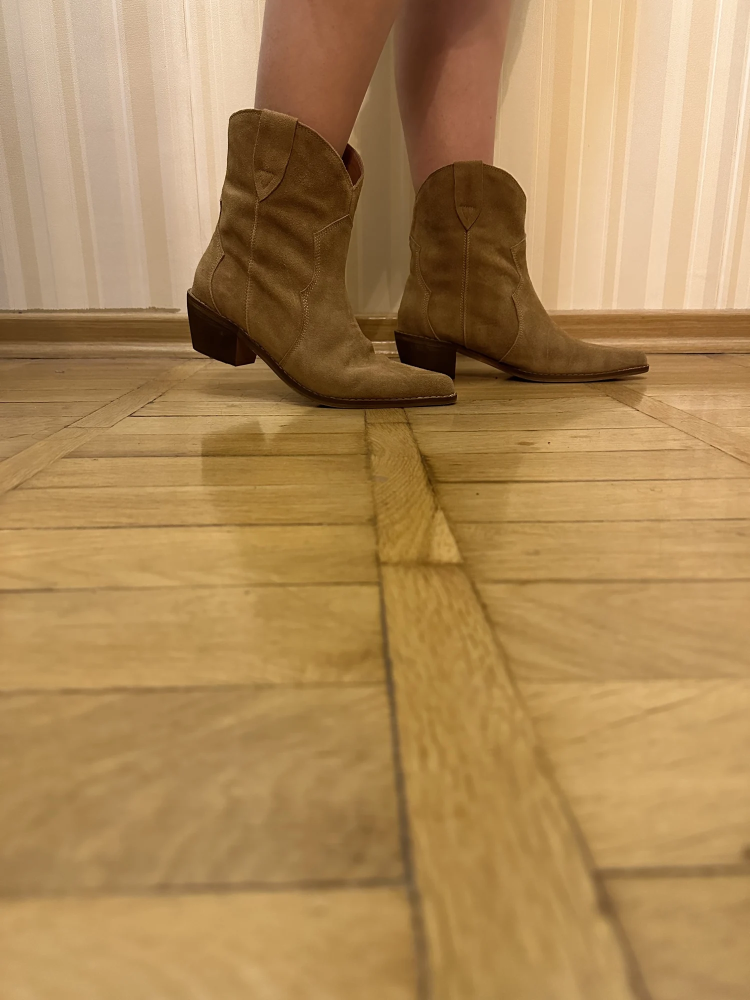 Девочки я плачу от счастья!!😭❤️ Сапожки - это что-то просто на идеальном!!! Натуральная замша, цвет, фасон, качество, удобство!! Какие они мягкие,а какая мягкая стелька, словно ортопедическая! пальчики внутри не давит, пятка не шлепает!! Как же я долго искала такую модель!! Я в восторге! А какие крутые с ними образы😍 под платье, джинсы, шорты, леггинсы. Просто восторг!! ❤️ Доставка быстрая, до Мск 2 недели, продавец дольше отправлял заказ) Нога моя по полноте узкая, на длину стопы 24 см(37 росс) , заказала размер 6.5 (23.5 см в сетке продавца ) - ИДЕАЛЬНО!! не нужно ни больше, ни меньше! Благодарю продавца за такую крутую обувь. Единственная ложка дёгтя - это запах краски, но он быстро выветривается, поэтому для меня это вообще не считается