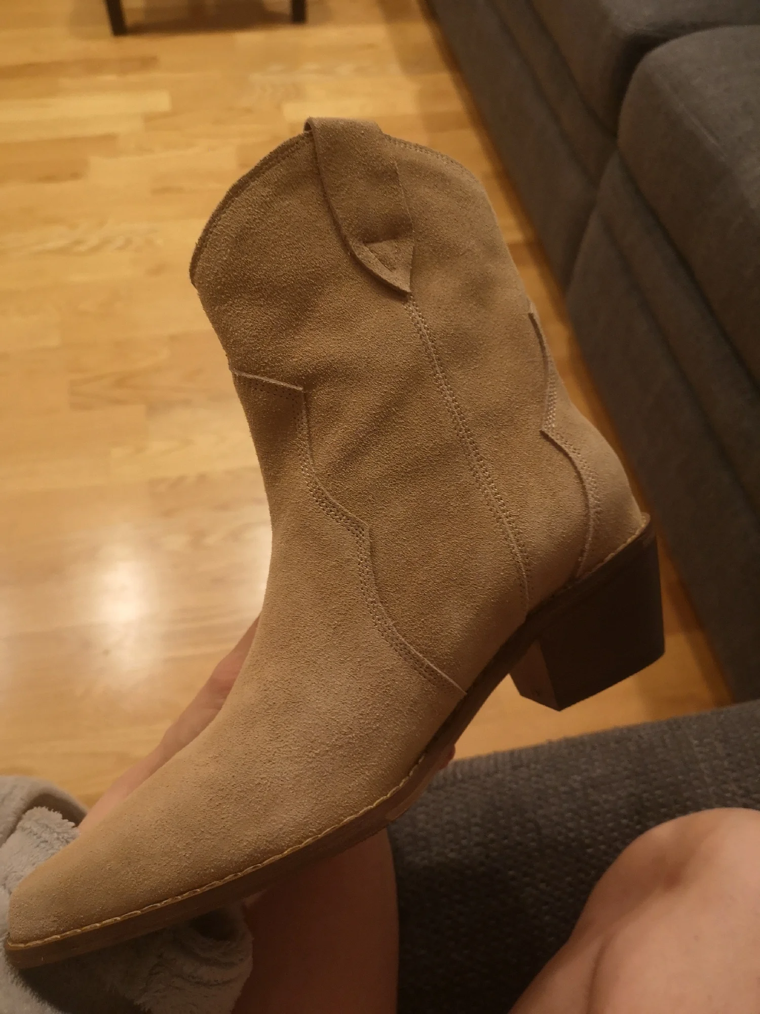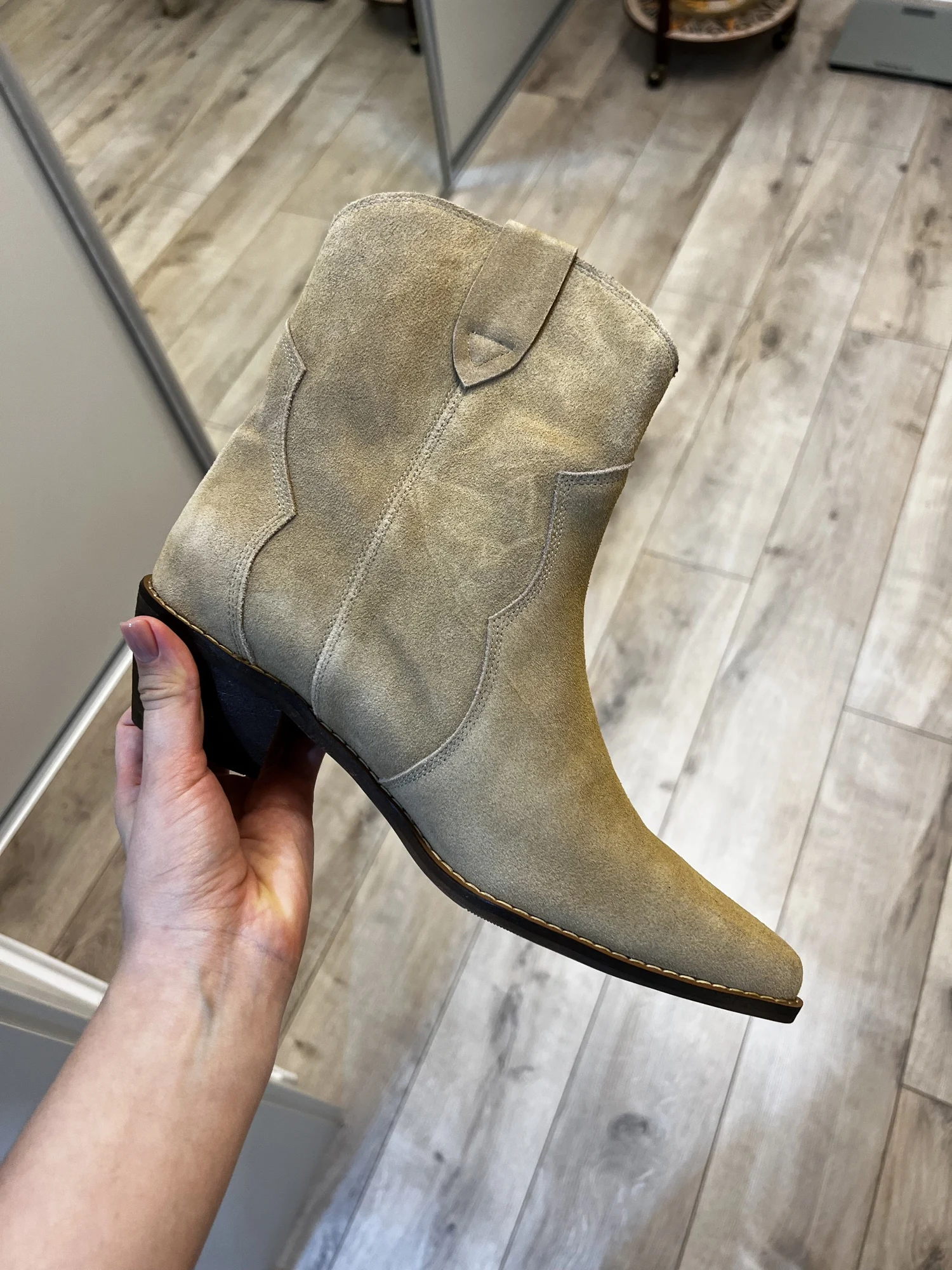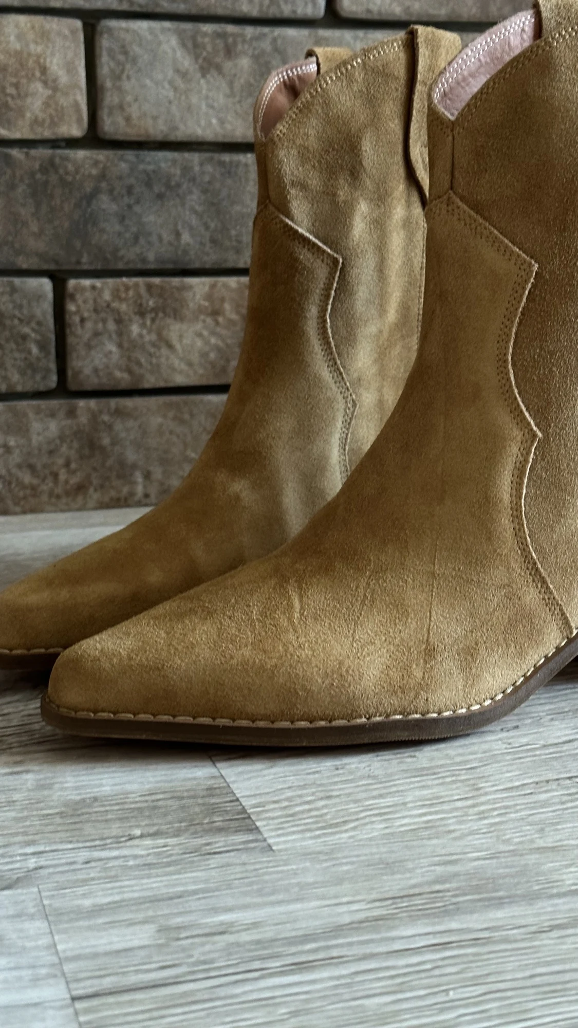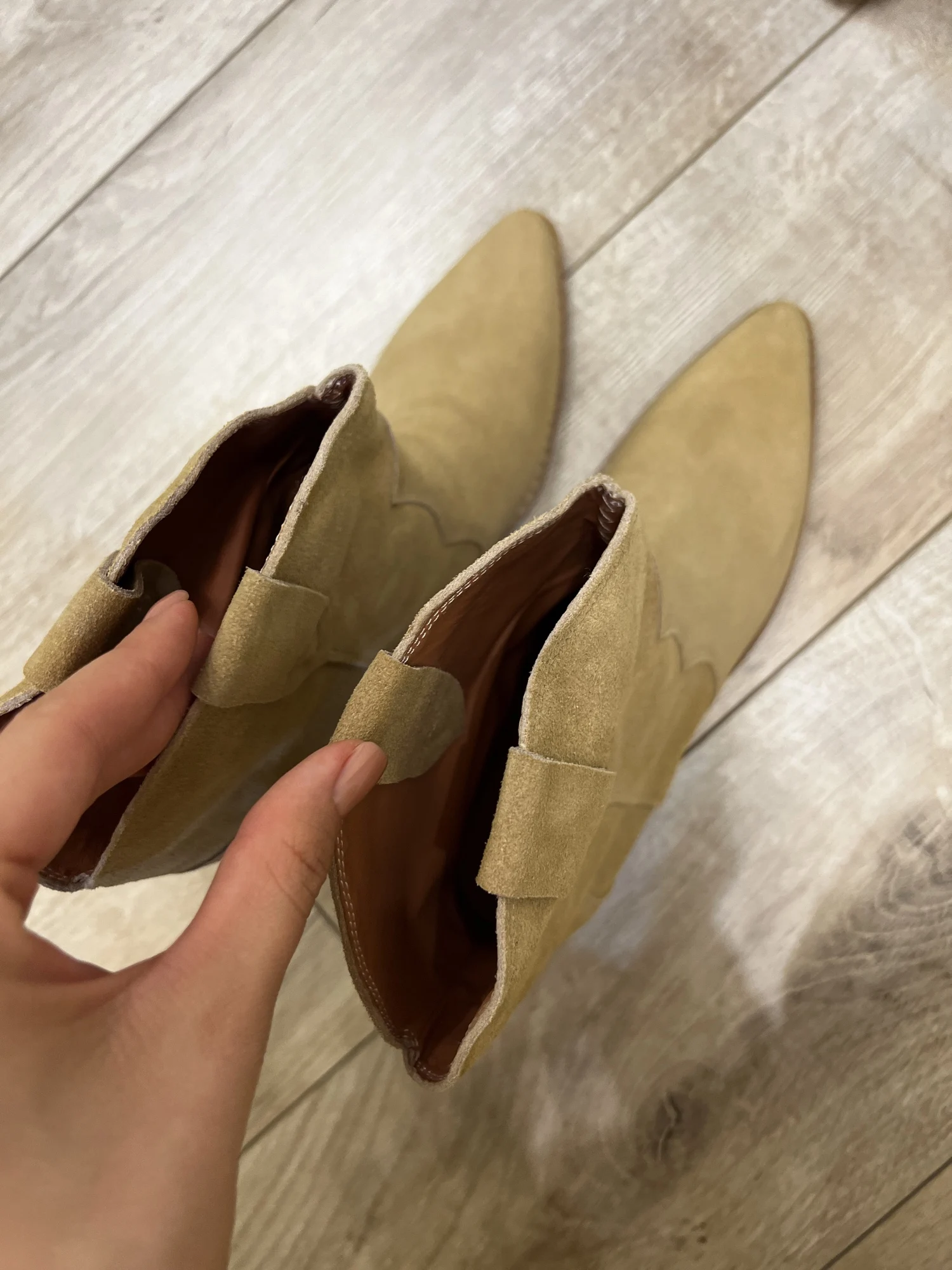 Девочки я плачу от счастья!!😭❤️ Сапожки - это что-то просто на идеальном!!! Натуральная замша, цвет, фасон, качество, удобство!! Какие они мягкие,а какая мягкая стелька, словно ортопедическая! пальчики внутри не давит, пятка не шлепает!! Как же я долго искала такую модель!! Я в восторге! А какие крутые с ними образы😍 под платье, джинсы, шорты, леггинсы. Просто восторг!! ❤️ Доставка быстрая, до Мск 2 недели, продавец дольше отправлял заказ) Нога моя по полноте узкая, на длину стопы 24 см(37 росс) , заказала размер 6.5 (23.5 см в сетке продавца ) - ИДЕАЛЬНО!! не нужно ни больше, ни меньше! Благодарю продавца за такую крутую обувь. Единственная ложка дёгтя - это запах краски, но он быстро выветривается, поэтому для меня это вообще не считается