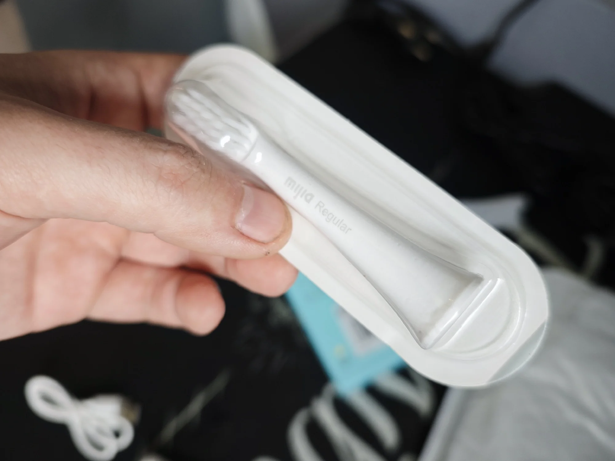 Щётка дошла за пять дней. Все соответствует описанию. В комплекте три запасных оригинальных насадки в отдельной коробке. В коробке с щеткой сама щётка, одна насадка, юсб шнурок для зарядки и мануал на китайском языке с картинками. По весу очень лёгкая, даже не ожидала что настолько. Но на ощупь приятная, никаких люфтов и дешёвого пластика. Есть два режима, переключаются одинарным нажатием. Есть зелёный индикатор, показывающий, что батарея заряжена. Чистка занимает две минуты, четыре отрезка по 30 секунд, между которыми щётка сигнализирует о смене места чистки. По истечении двух минут щётка сама отключается. В целом осталась очень довольна