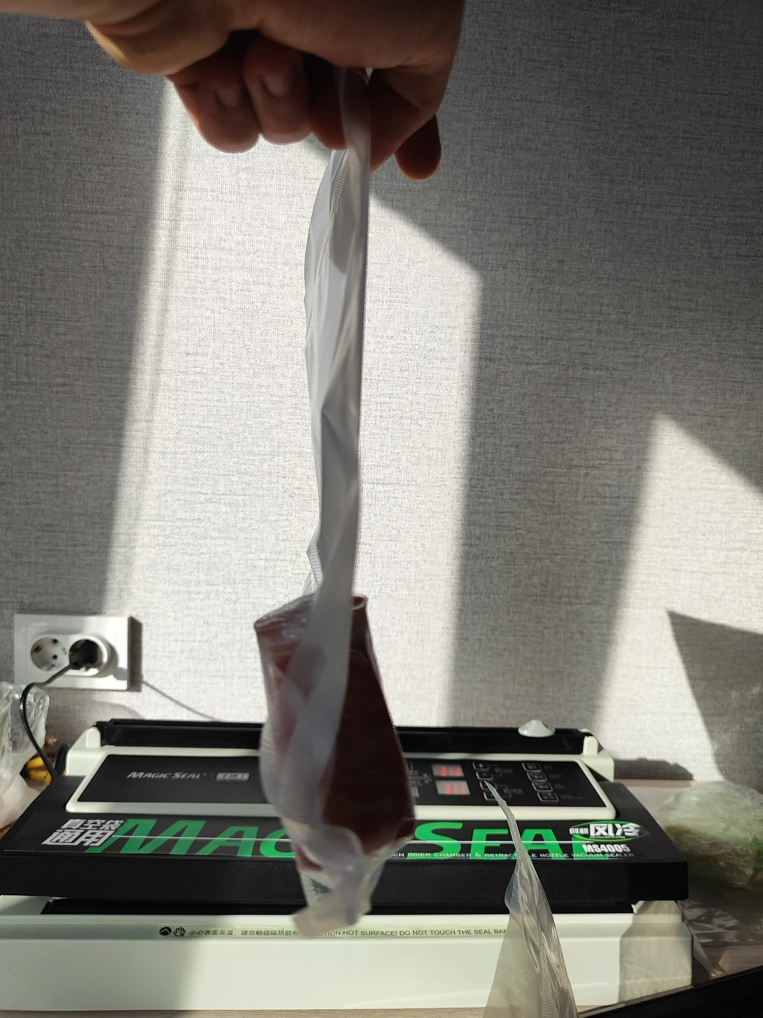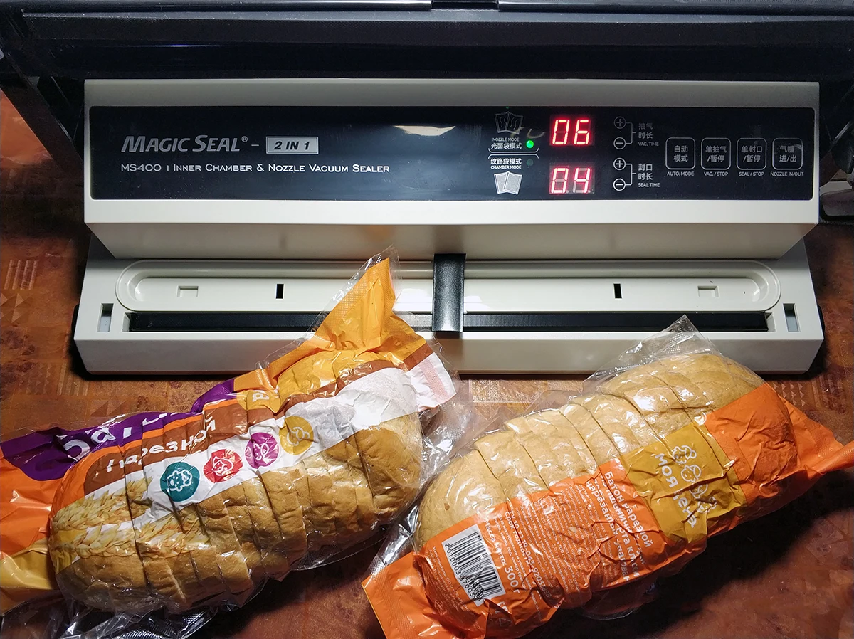 Ширина запечатанного пакета не превышает 40 см, поэтому вам не нужно беспокоиться о широких и толстых ингредиентах, таких как отбивные из баранины.