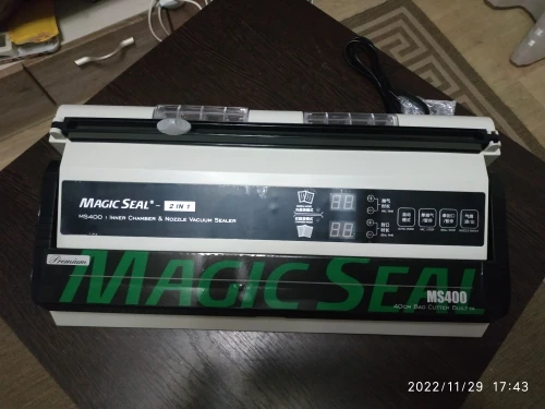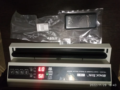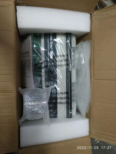 В СПб прибыло за три недели. Заказывал ещё из Китая, но сейчас они есть уже на складе в Москве. Всё пришло в целости и сохранности. Упаковано хорошо. Инструкция на английском языке, рекомендую сразу перевести и ознакомиться, так как есть нюансы, которые методом тыка не освоить. Теперь о работе с пакетами: Отлично вакуумирует стандартные плотные пакеты, типа таких как идут в комплекте. Гораздо хуже вакуумирует разные полиэтиленовые пакеты, типа как из под хлеба, и даже обычные тонкие. Вакуумирует их слабее, и по каким-то причинам они постепенно развакуумируются. Совсем не вакуумирует пропиленовые пакеты – это, типа таких как из под макарон, но такая ситуация и с другими моделями вакууматоров. Вывод: - это всё-таки достойный и единственный аппарат, который работает одновременно и с гладкими и с рифлеными пакетами. Двигатель приличный – откачивает сильно. Запаячный шов широкий, с возможностью регулировки по времени запайки. Поэтому с чистой совестью рекомендую и аппарат и продавца.kst001 u. 21 августа 2022