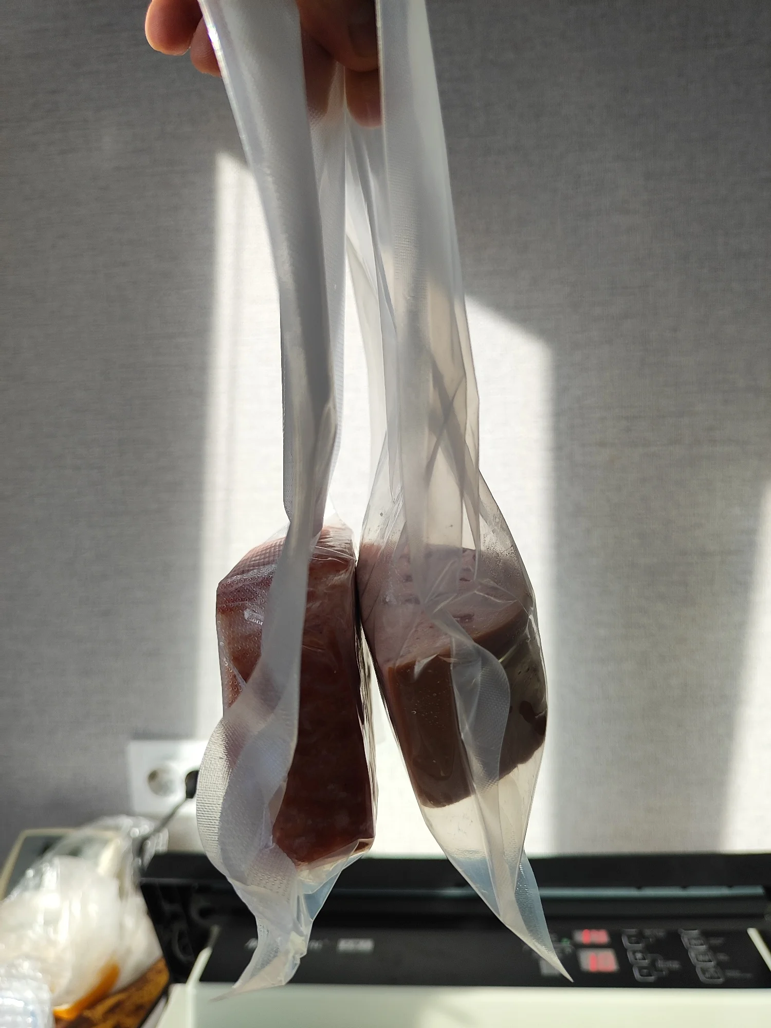Большой, качественный агрегат. Вакуумировала реторт пакеты с тушёнкой под автоклав. Прикольно вышло. Есть косиячки: морщинки в месте выдвижнойго ниппеля, для надёжности делала доп.шов, удобнее/быстрее запайщиком. Также закрывала гладкие и рифлёные пакеты с мясом под маринование. Жидкость уходит по трубочке в ёмкость. По окончанию, надо промывать. Но оно того стоит. С 25 реторт пакетами и 10 пакетами под маринование справился без проблем. Redmond подтупливает уже через 15 швов.При вакуумации колбасы с redmond перешла на MS. Приятный бонус: встроенный резак и несколько гладких и рифлёных пакетов в комплекте. Спасибо!Marina Y. 27 сентября 2022