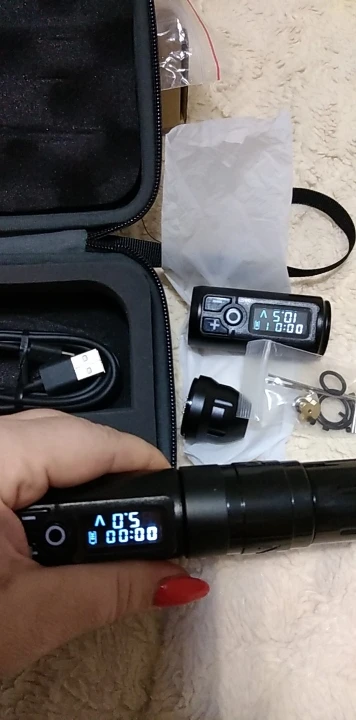 Пришла очередная машинка. Рабочая на первый взгляд. Взяла по просьбе дочери - она мастер тату. В прошлом году купили у этого же продавца розовую тату-машинку - работает отлично, дочь довольна. И ей очень понравилось (и удобно) работать без проводной машинкой, поэтому купили дополнительную, чтоб хватало на любой размер татухи. В ближайшее время передам машинку и позже дополню отзыв, как она работает. А пока отзыв только по доставке и наличию. Выглядит все качественно. Продавец отправил сразу, до Перми дошло за 11 дней (отслеживалось). Забирала в магазине Пятёрочка. Упаковано отлично.