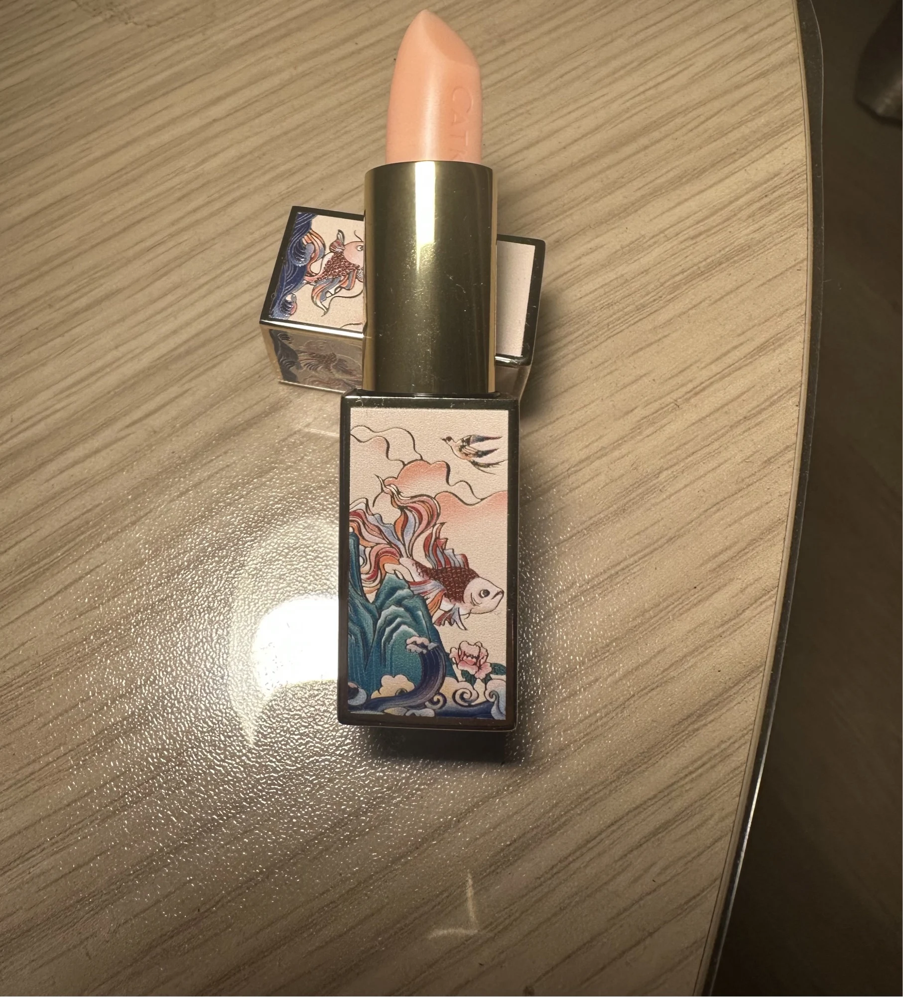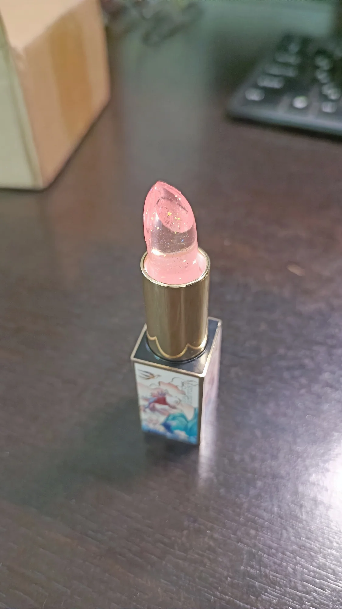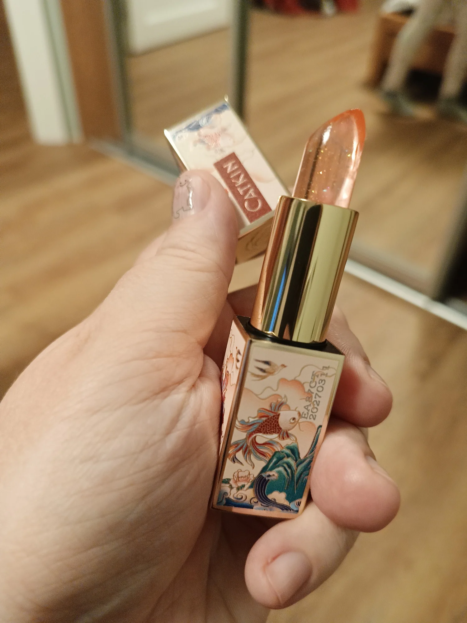 Это моя первая попытка купить китайский макияж. Я искренне впечатлен качеством этого бальзама для губ. Если бы мне подарили его только глядя на упаковку, я бы предположил, что он находится в ценовом диапазоне Dior и Givenchy. Сама помада без запаха, кремовая с очень красивым золотым мерцанием. Не могу комментировать долголетие еще, как я попробовал его сейчас в первый раз, но он чувствует себя действительно приятно на губах.