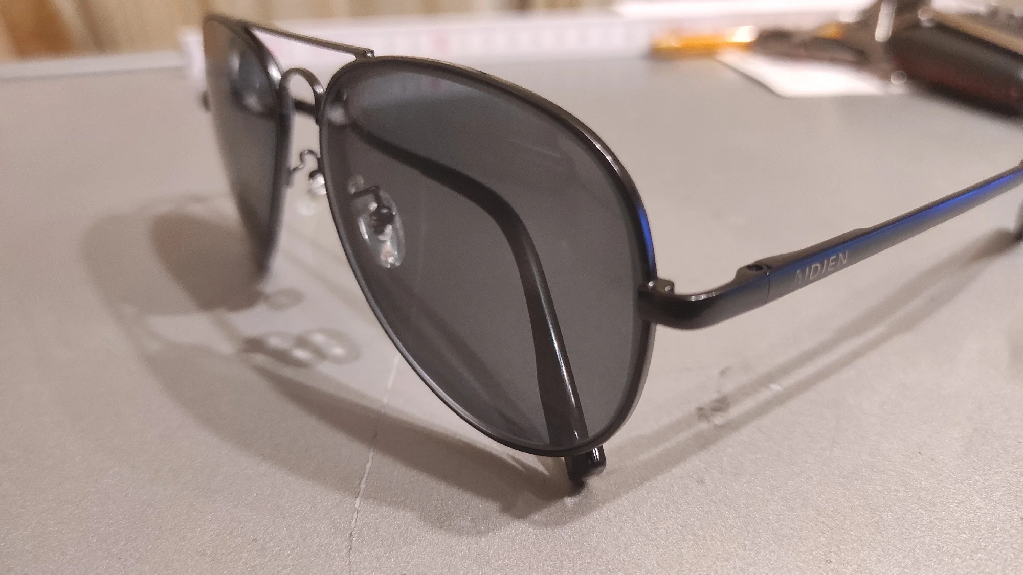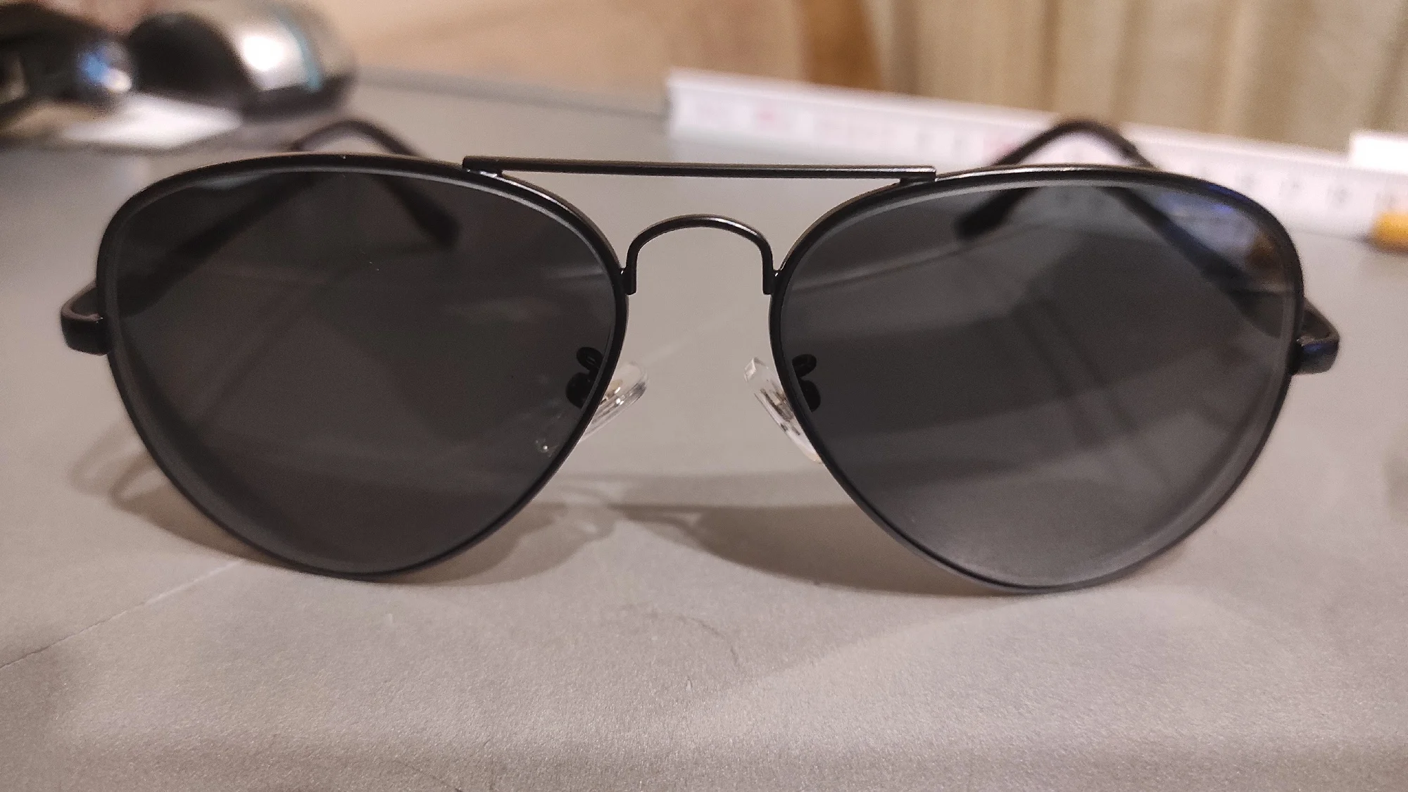 Отличные очки! Оправа по качеству исполнения намного выше чем стоит, а еще и стекла в комплекте. Стёкла, кстати, сделали великолепно - всё четко по рецепту (даже с астигматизмом), который отправил продавцу. Попросил продавца сделать оправу серую (gun metal), а стекла с синим переливом - всё сделал. Кстати, сами стекла коричневые, цвета почти не искажают (насколько это возможно для солнечных очков) Можно еще попросить сделать очки бо́льшего размера, для широкого (или как наш китайский друг считает жирного "fat") лица. У меня не жирное, но я попросил. В комплекте положили твердый кейс для очков, тканевый мешочек и салфетку для протирки. Короче, это мои первые солнечные очки с диоптриями которые максимально подошли по всем параметрам.