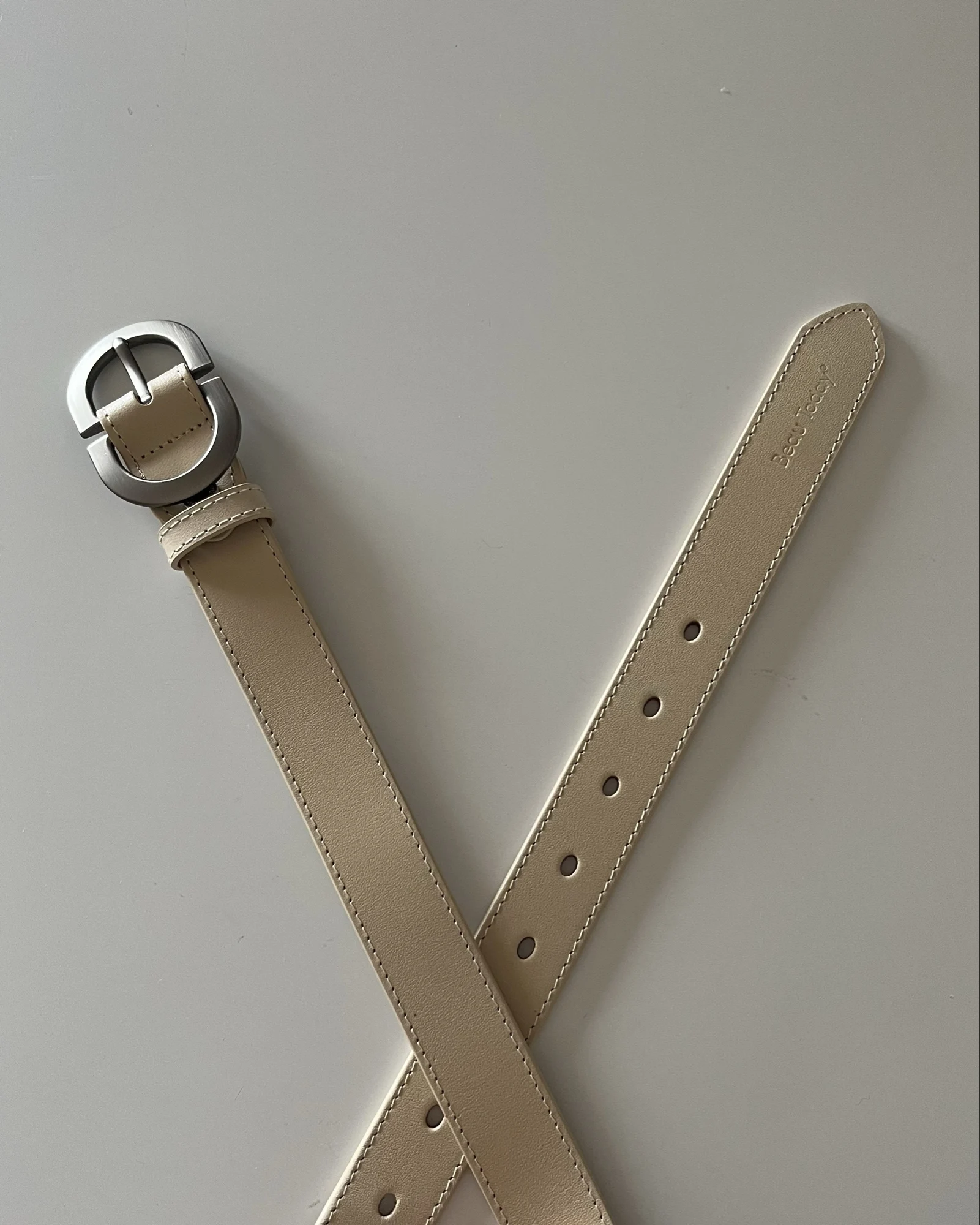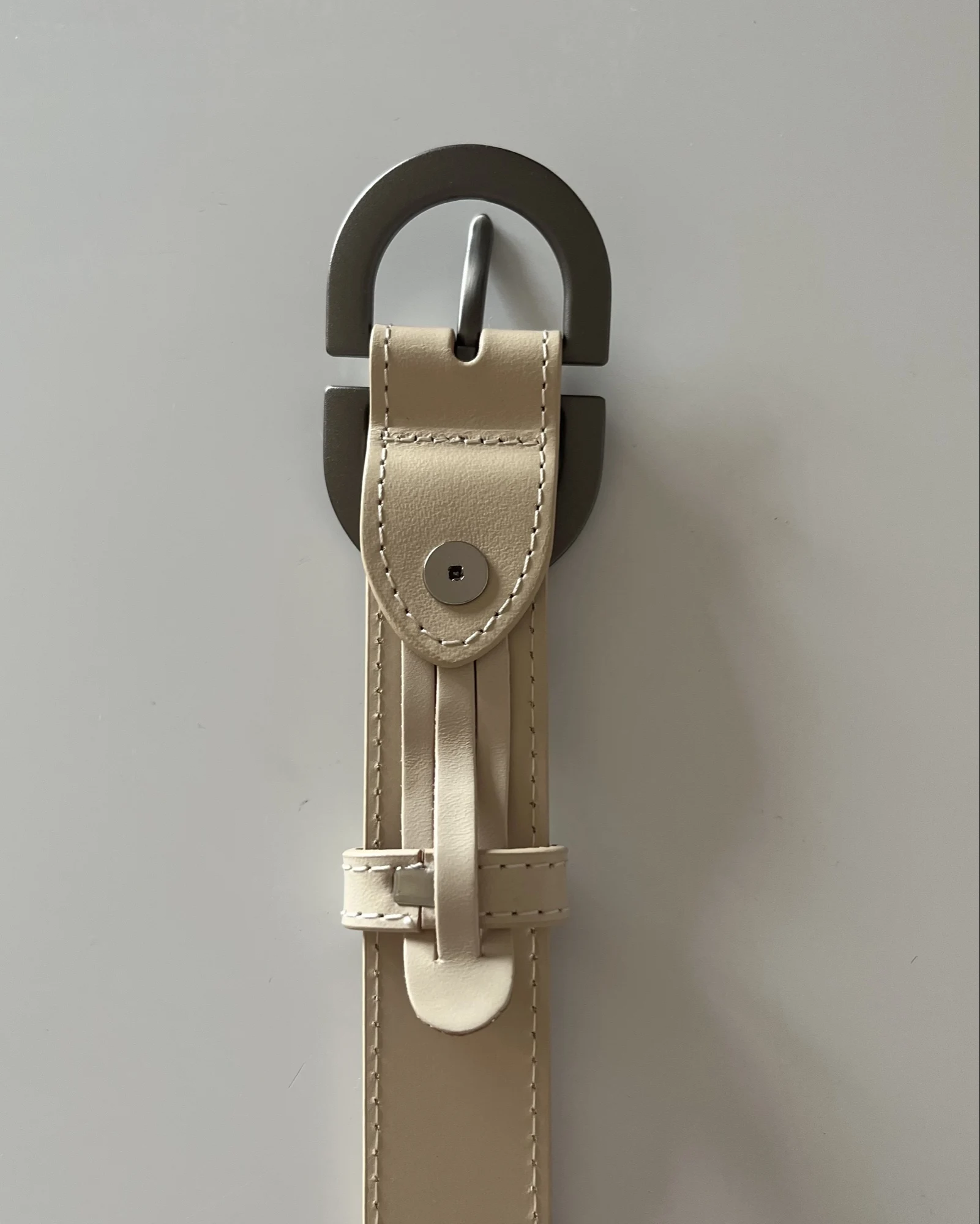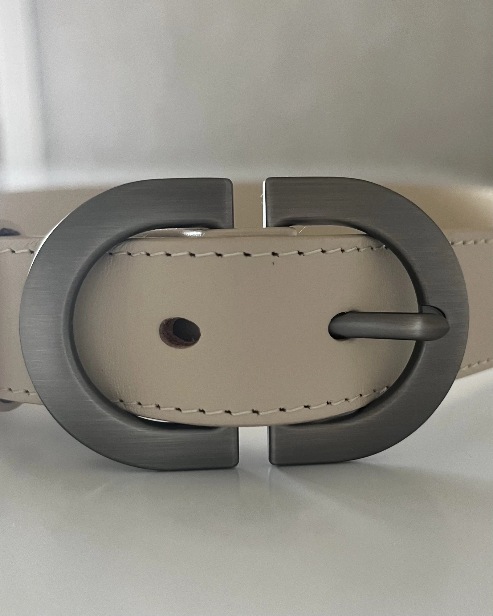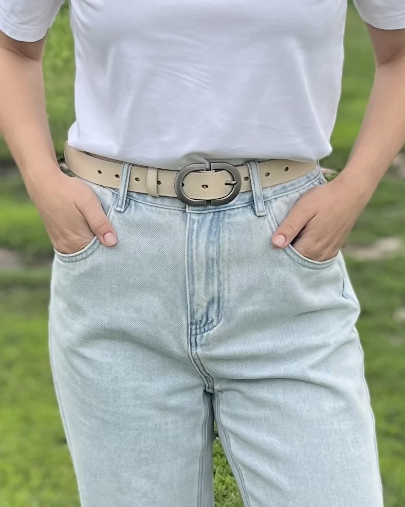 Больше обзоров в телеграм канале)) Модель выполнена из мягкого, приятного на ощупь спилка. Цвет — светло-бежевый: универсальный, спокойный, без розовинки и желтизны. Хорошо держит форму, но при этом остаётся пластичным — не жёсткий, не дубовый. Пряжка — матовая, объёмная, с красивым бронзовым оттенком (почти графит, но с тёплой ноткой). Смотрится благородно и небанально: именно та деталь, которая делает образ законченным даже с простыми джинсами и белой футболкой. Ширина ремня — 2,5 см. На объём 62 см идеально подошла длина 95 см. Отличный вариант и по качеству, и по внешнему виду. 👍