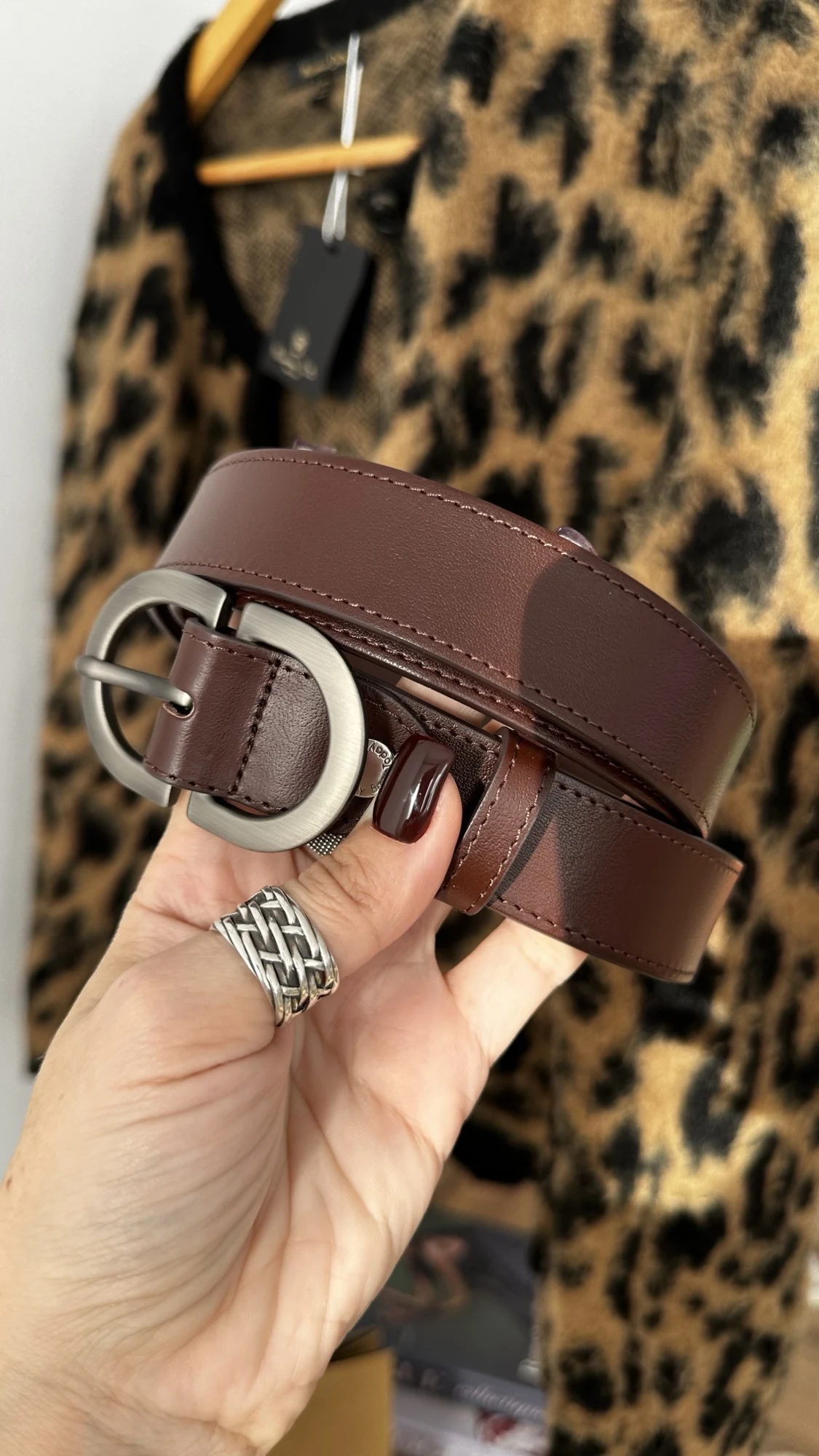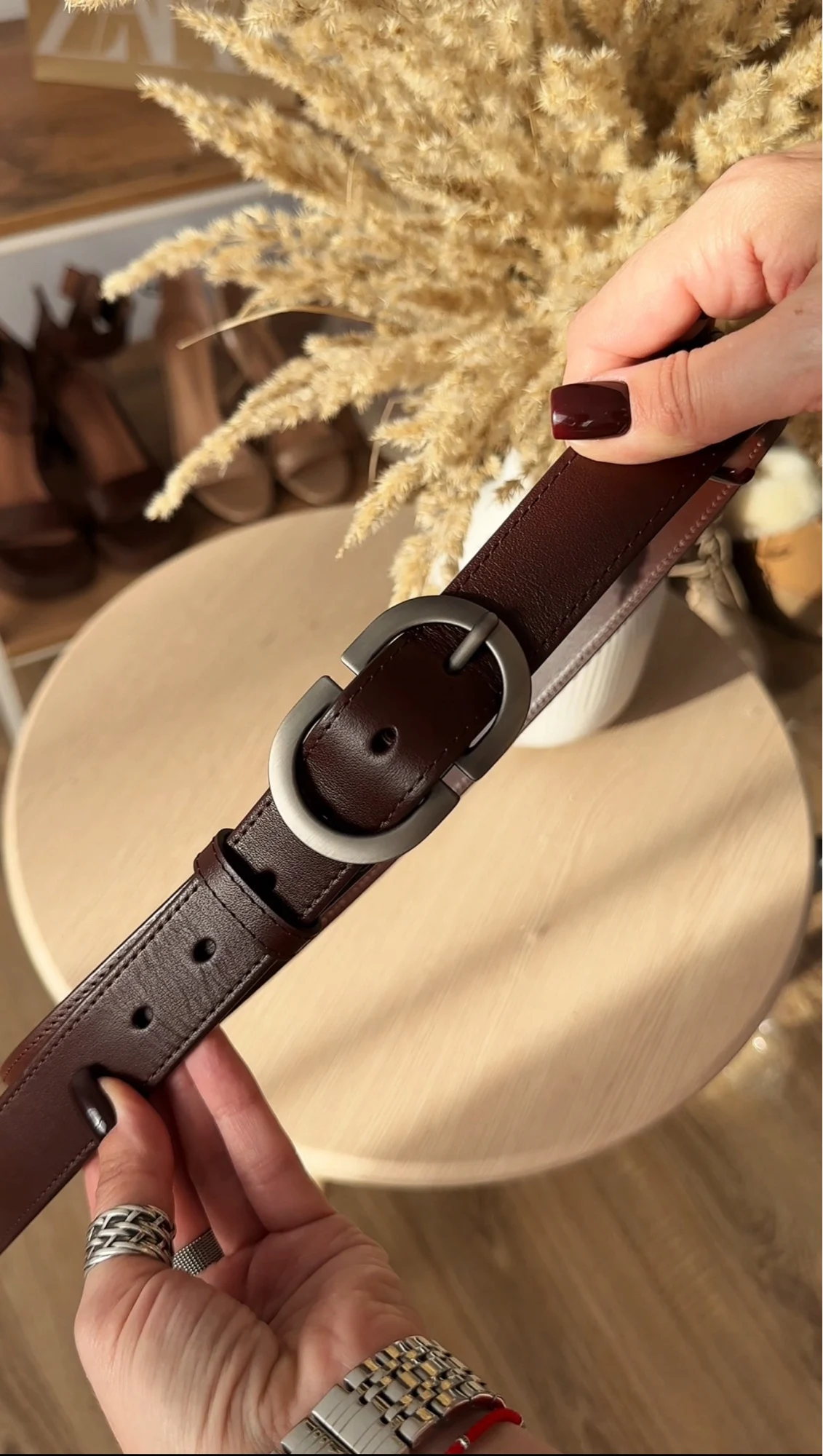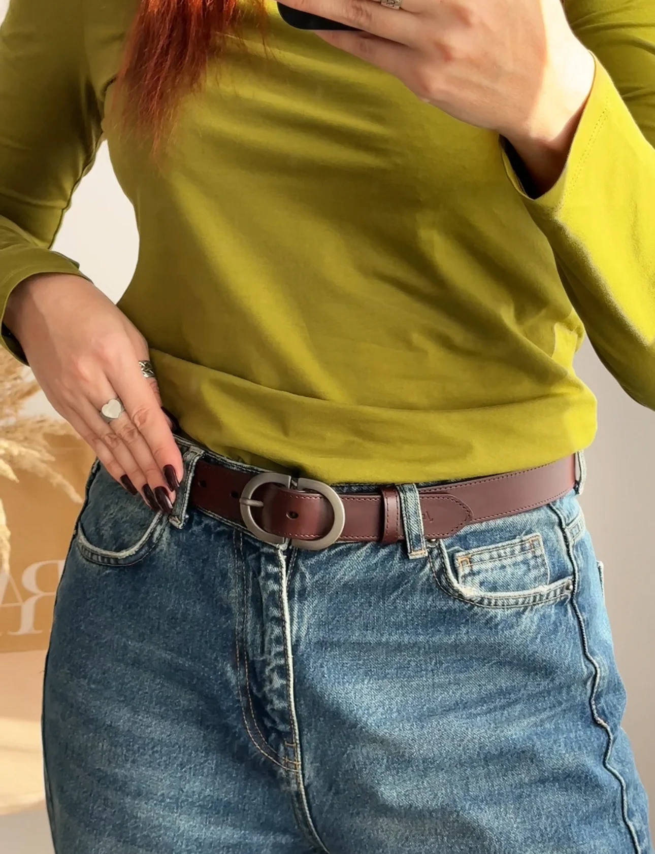 Больше обзоров в телеграм канале)) Модель выполнена из мягкого, приятного на ощупь спилка. Цвет — светло-бежевый: универсальный, спокойный, без розовинки и желтизны. Хорошо держит форму, но при этом остаётся пластичным — не жёсткий, не дубовый. Пряжка — матовая, объёмная, с красивым бронзовым оттенком (почти графит, но с тёплой ноткой). Смотрится благородно и небанально: именно та деталь, которая делает образ законченным даже с простыми джинсами и белой футболкой. Ширина ремня — 2,5 см. На объём 62 см идеально подошла длина 95 см. Отличный вариант и по качеству, и по внешнему виду. 👍
