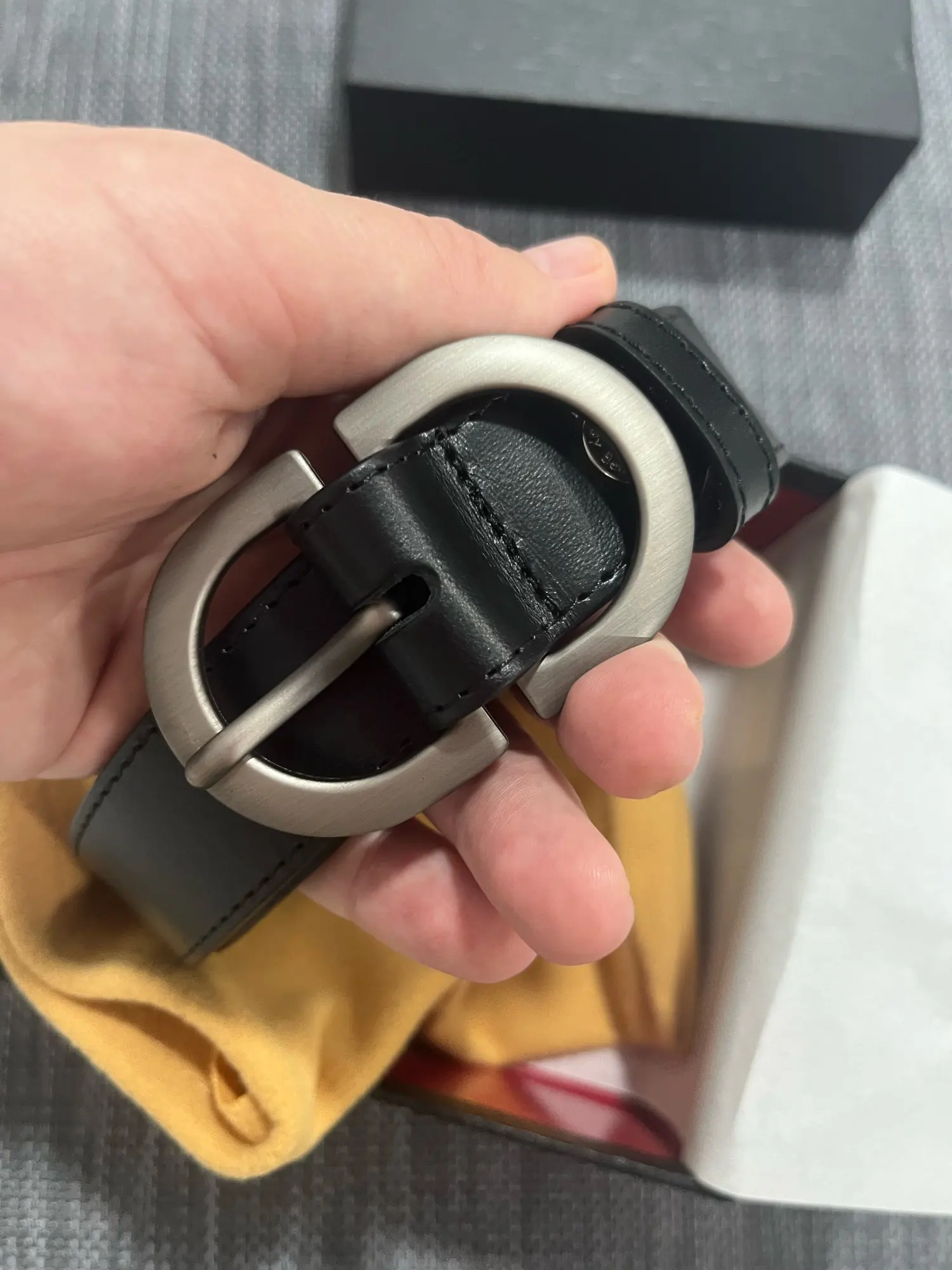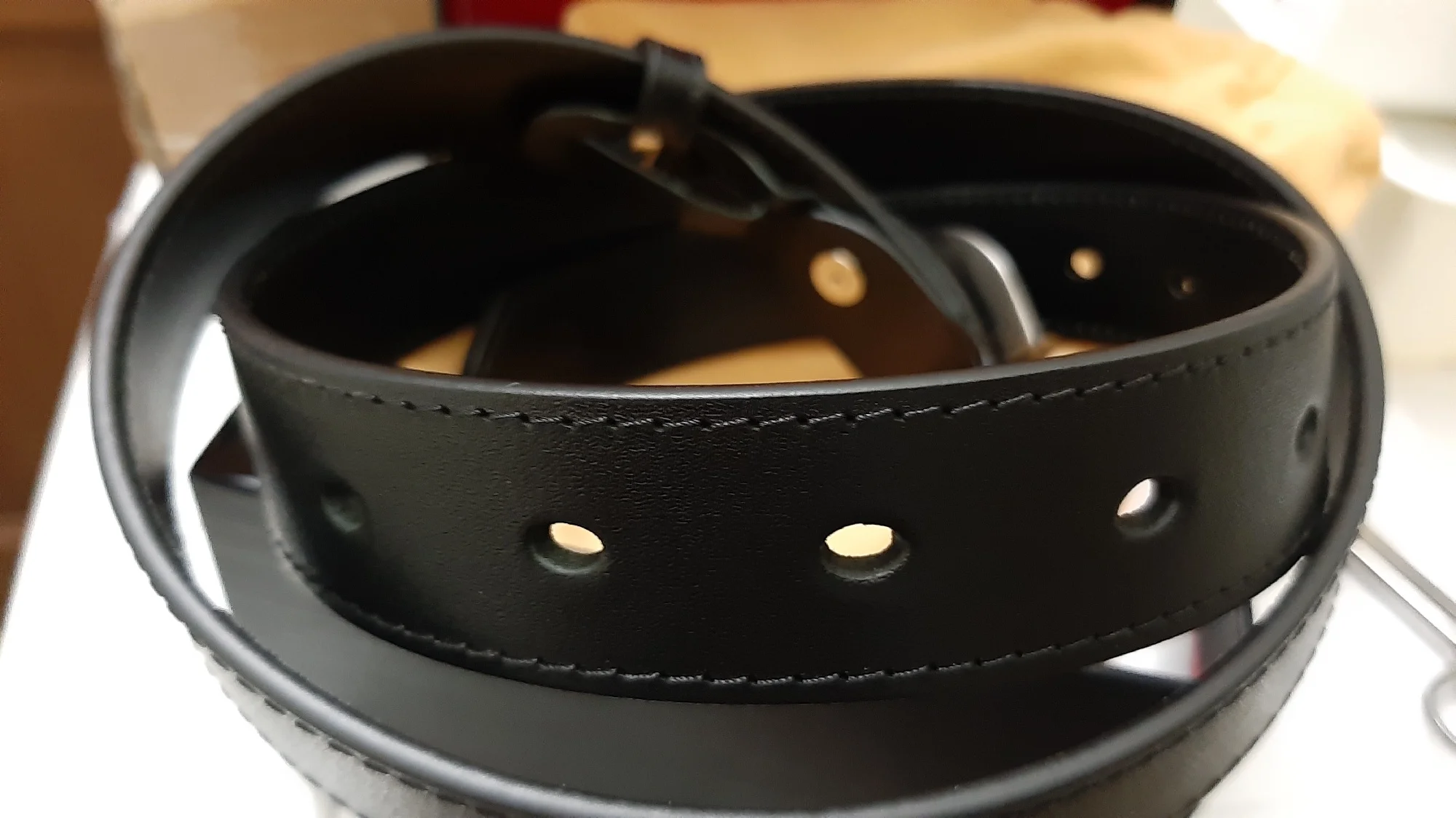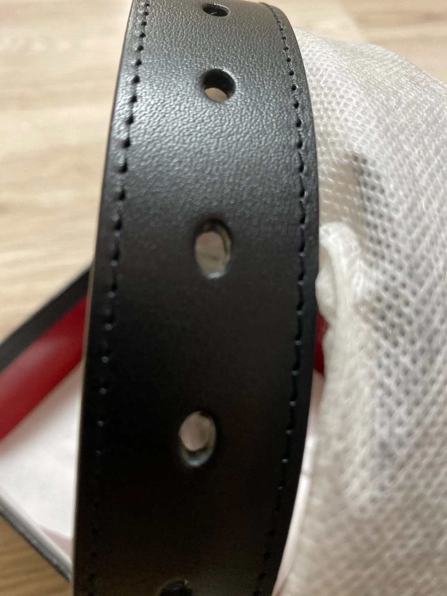 Ремень прийшов дуже гарно упакований. Дефектів не помітила. Посилка прийшла дуже швидко. На ремені присутній брендінг.