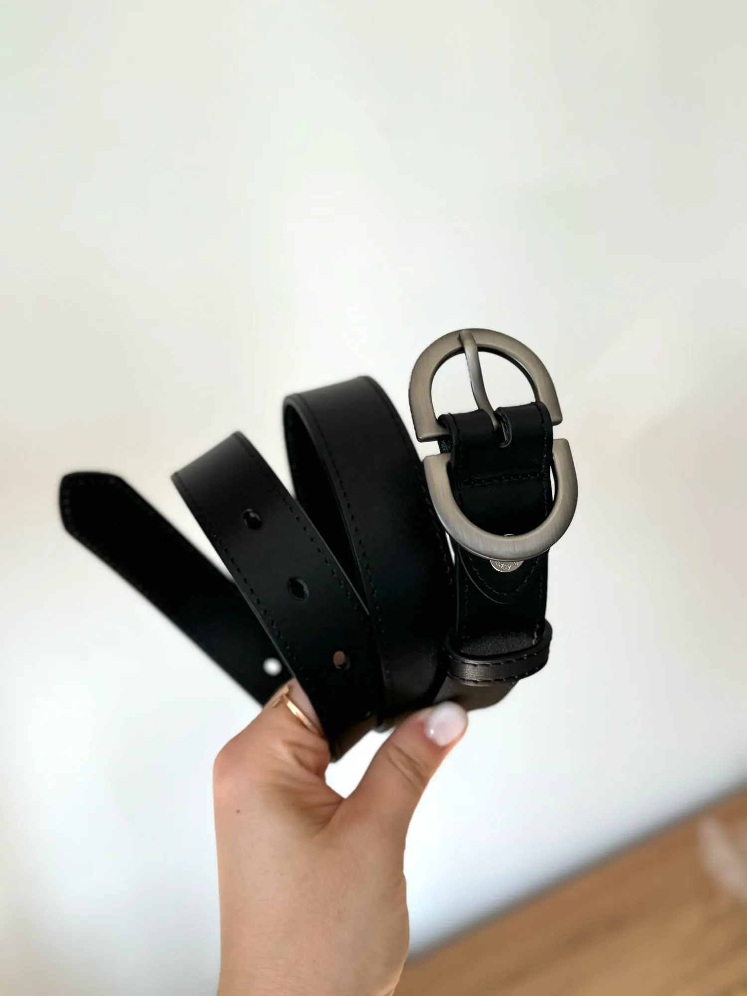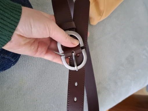 ШКІРЯНИЙ РЕМІНЬ є ще білий, коричневий і рудий ідеально прошитий, чудове пакування (я їх часто беру на подарунки), носиться добре, не помічала ні в одному ще потертостей по краях, фурнітура срібного кольору.