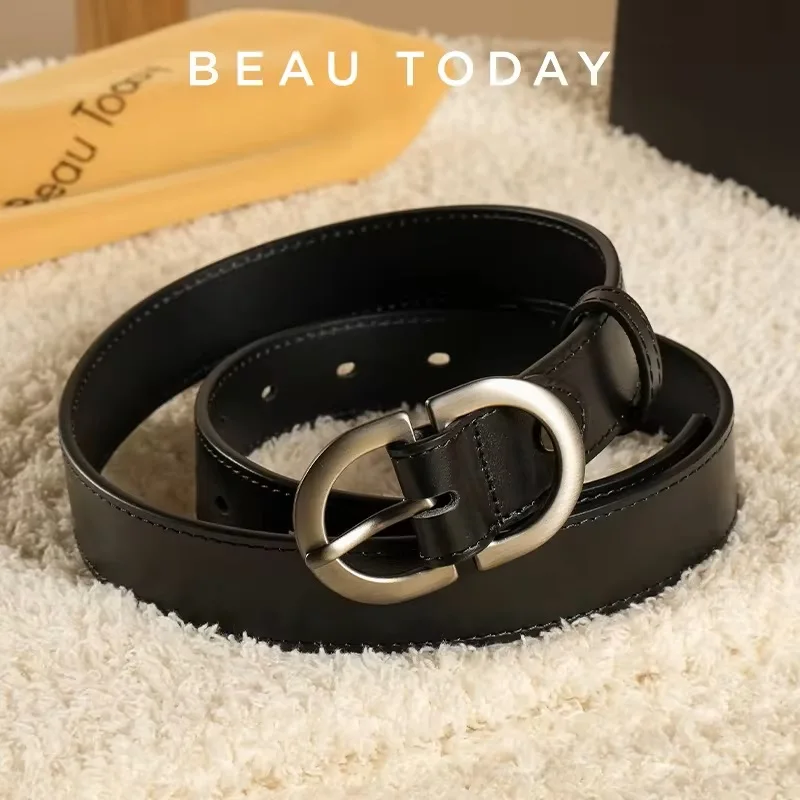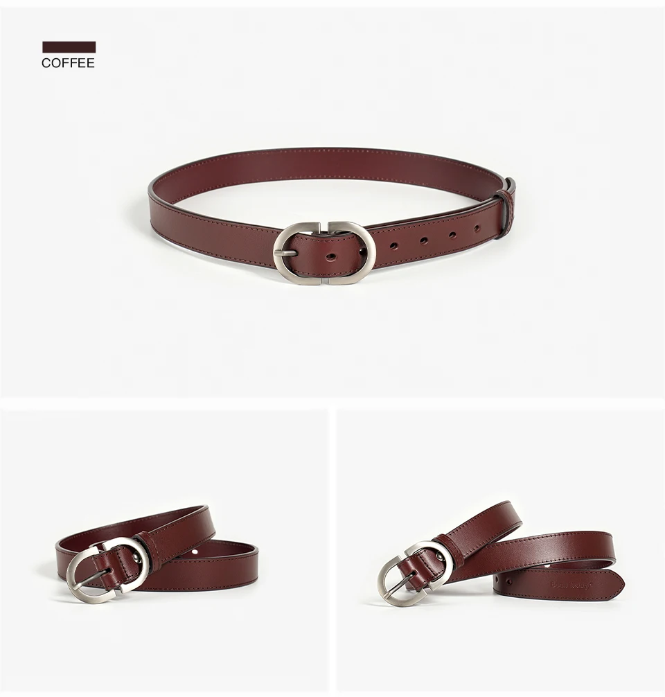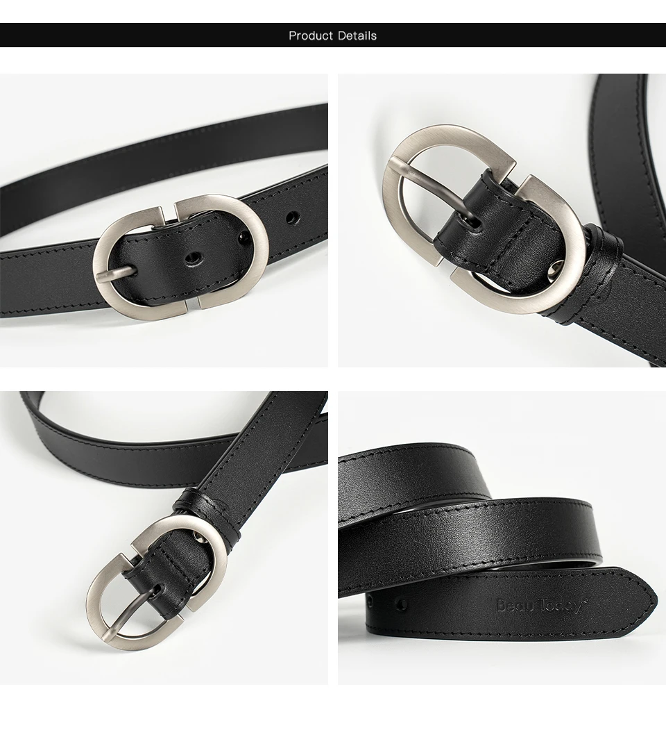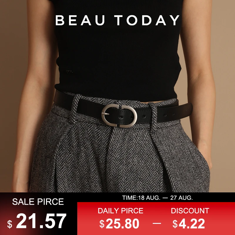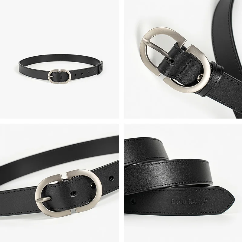 BEAUTODAY Belts Women Cow Split Solid Color Silver Buckle 2023 Ladies Modern...