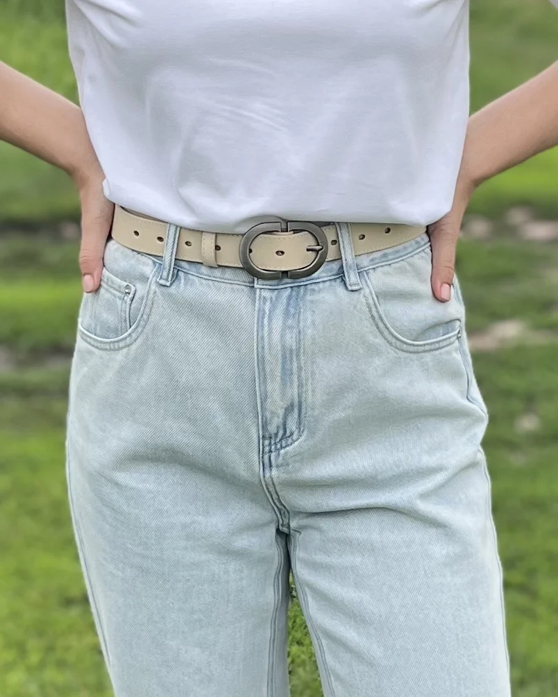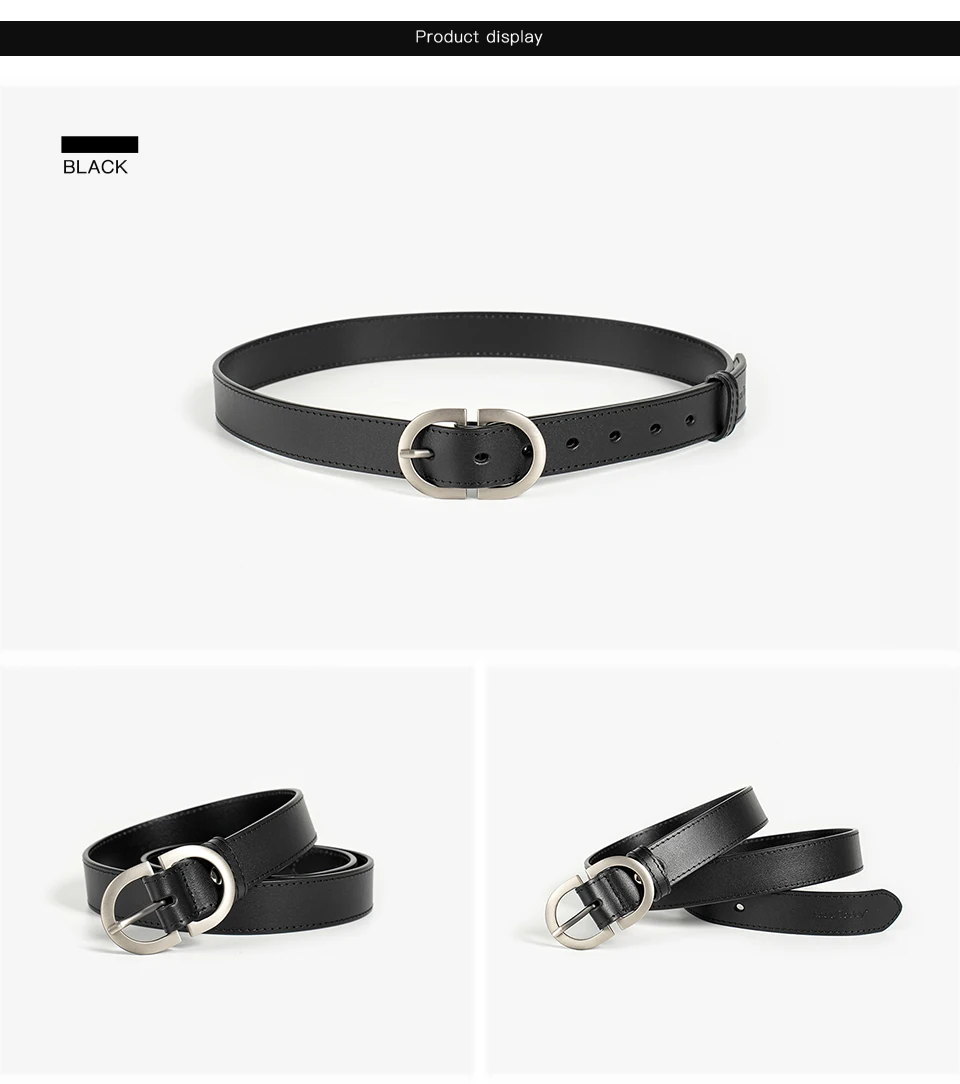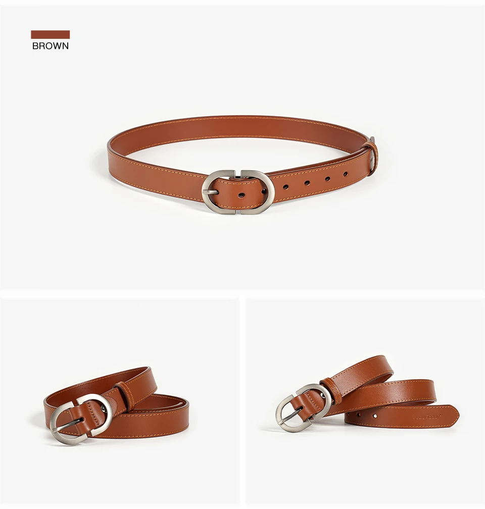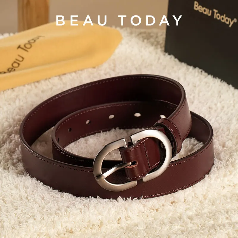 BEAUTODAY Belts Women Cow Split Solid Color Silver Buckle 2023 Ladies Modern...