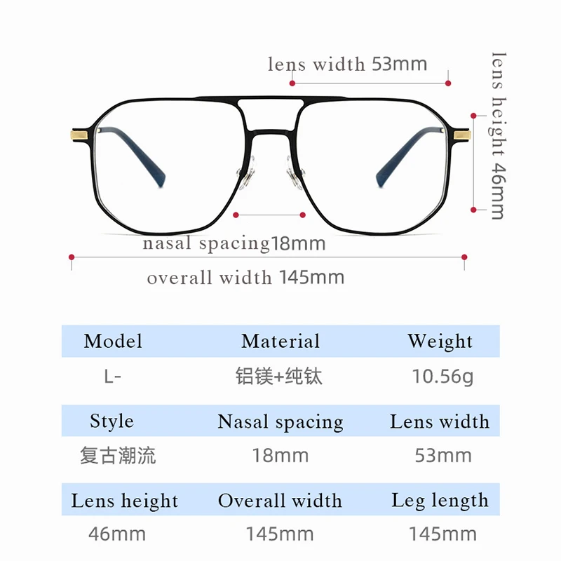 - Номер модели:L5060 Pure Titanium Glasses Frame