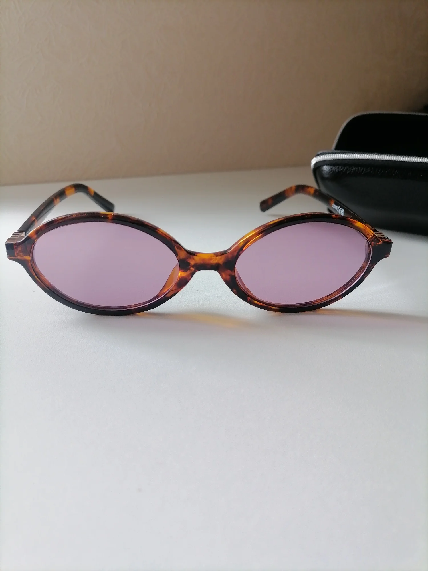 Смотрятся очень стильно, сомневалась в форме, но зря, на мой взгляд они идеальны) Глазам в них комфортно. Защита от ультрафиолета UV400. Материал оправы: пластик в анималистичный принт Выполнение качественное, оправа литая, легкая, сидят на переносице отлично, не давят, не съезжают, дужки прочные, носоупоры неподвижные. В комплекте к очкам идёт чехол для хранения и мягкая салфетка для протирания. Срок доставки 11 дней.