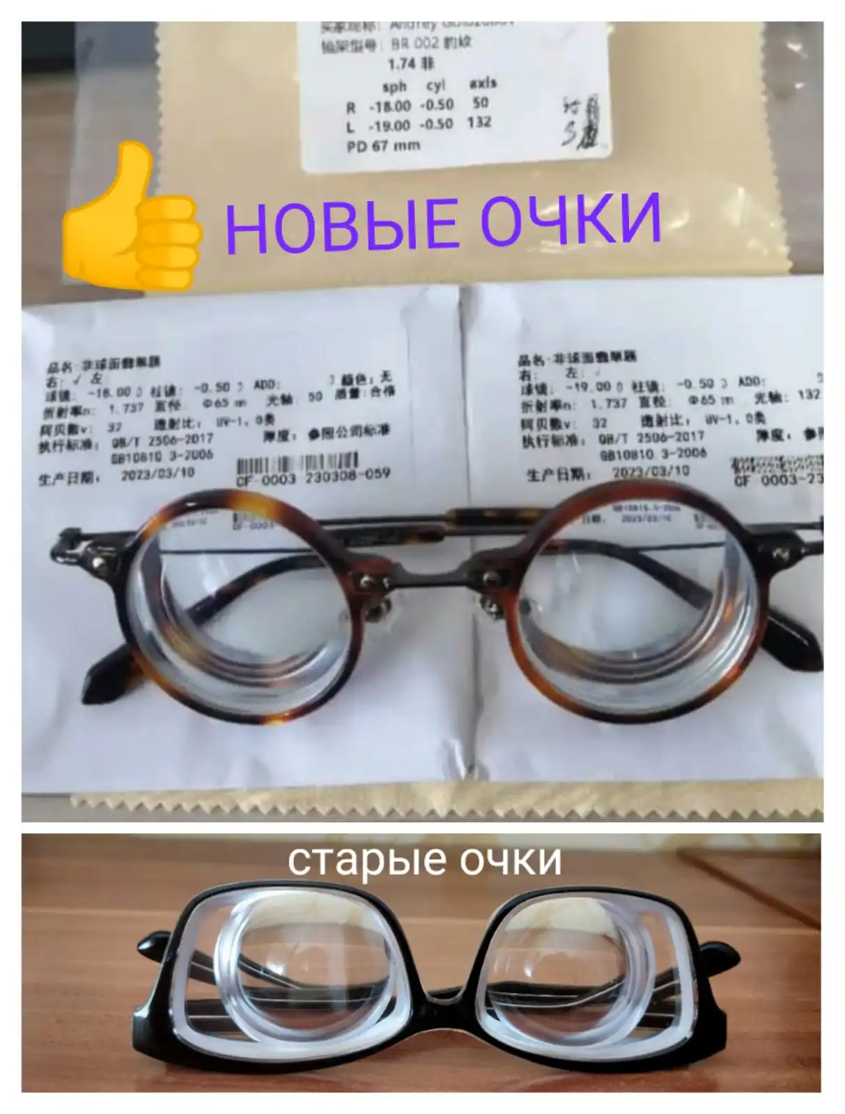 Я заказал линзы асферические (-19dp и -18dp), индекс преломления 1.74, с антибликовые покрытием, линзы полностью соответствуют описанию. Качество линз отличное. В сравнении с обычными линзами намного тоньше и легче. Моя жена носила старые очки с индексом 1.5, и очень комплексовала, а когда мы купили эти новые очки у этого продавца, она была в полном восторге. Когда я заказывал готовые очки, продавец очень помог мне в выборе оправы и изготовил мой заказ идеально точно. До этого я заказывал очки в своём городе и качество очков было не на высоте, а этот продавец изготовил мой заказ качественно. Очень хорошая работа. За это отдельное спасибо продавцу. Доставка CDEK из Китая до Приморского края 18 дней. Упаковано хорошо. Буду заказывать ещё. Продавца однозначно рекомендую!Andrey G. 23 апреля 2023